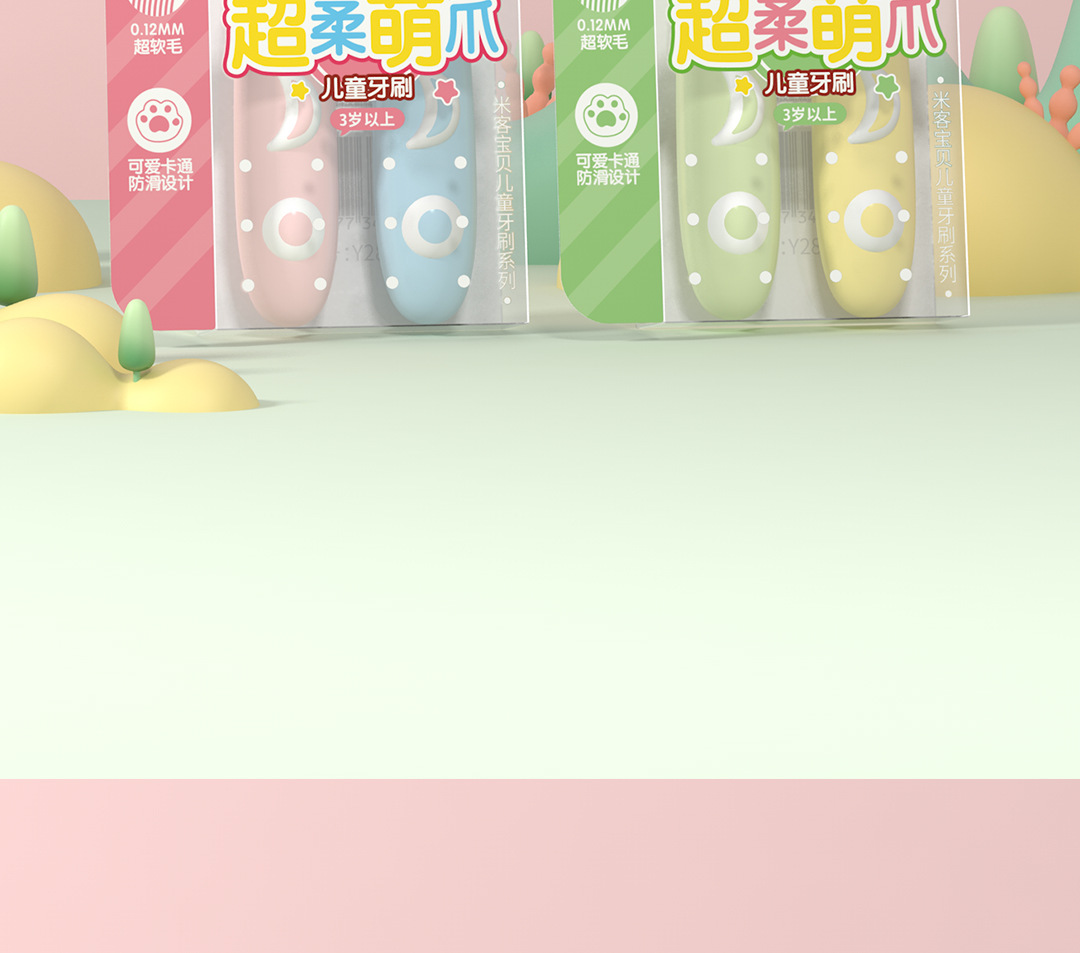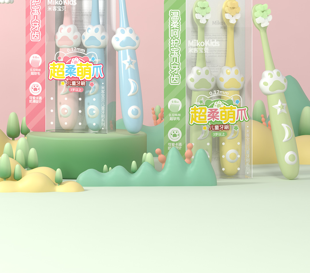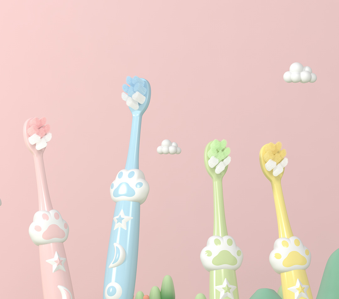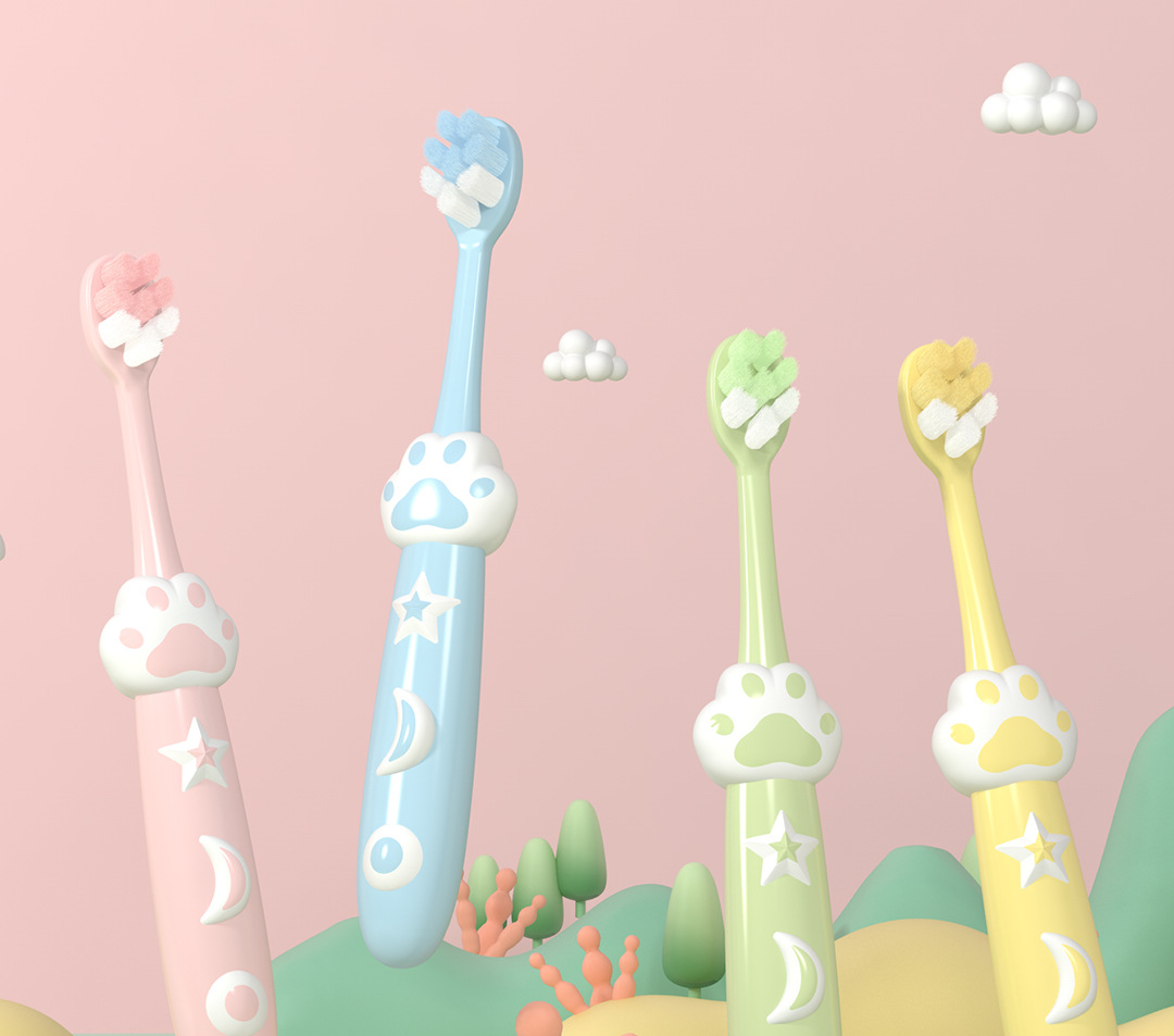어린 이용 부드러운 강모 칫솔 치아 보호 귀여운 고양이 발톱 모양 치아 청소 치은 보호 이중 팩 제조 업체에 따라 도매