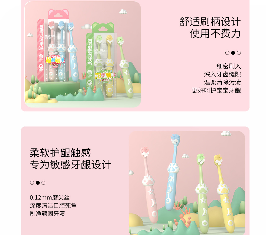 어린 이용 부드러운 강모 칫솔 치아 보호 귀여운 고양이 발톱 모양 치아 청소 치은 보호 이중 팩 제조 업체에 따라 도매스토어 가기