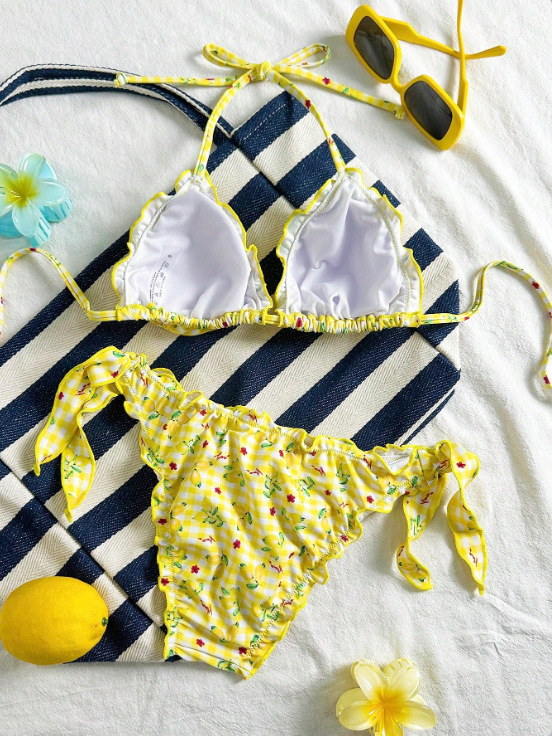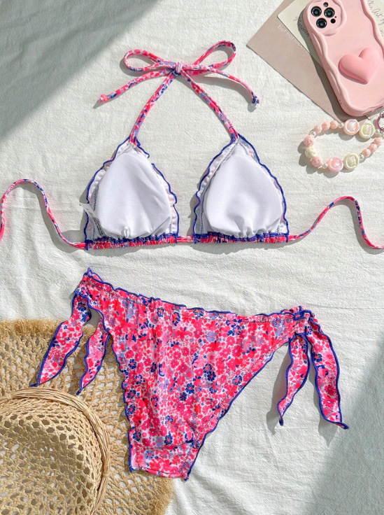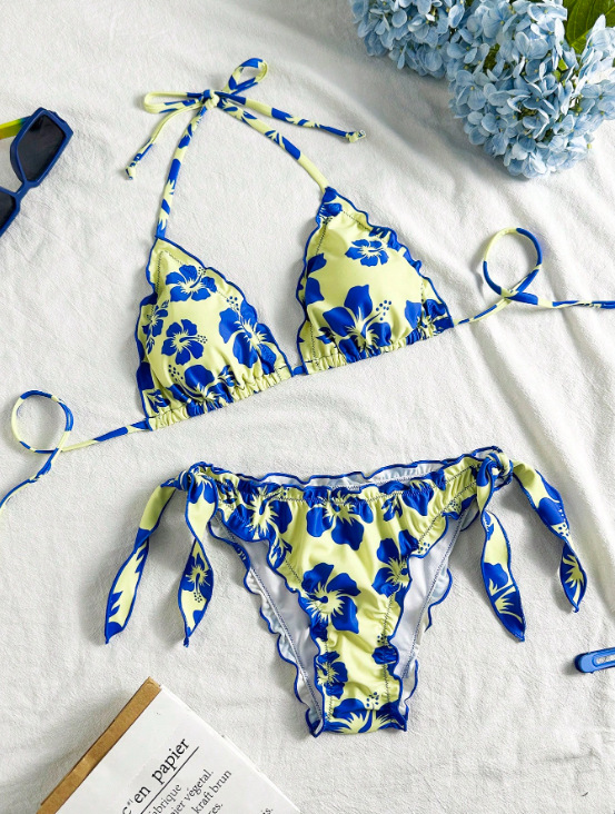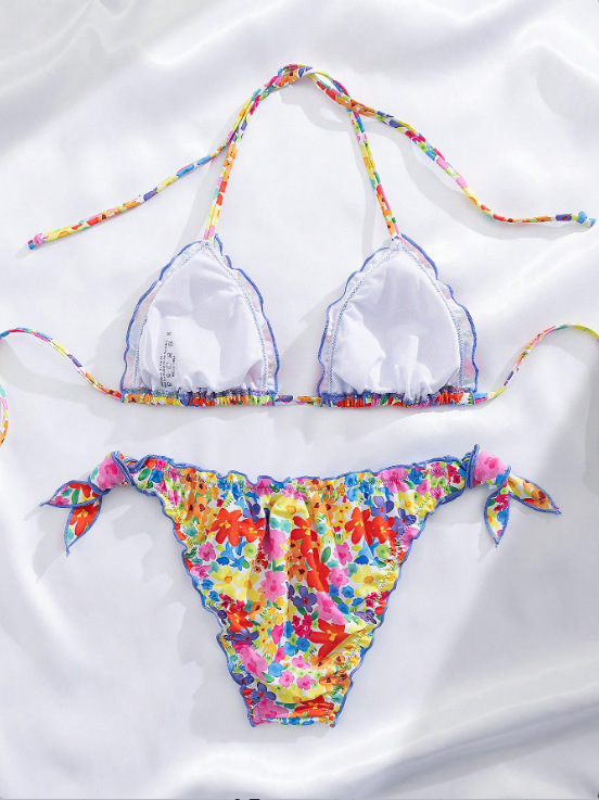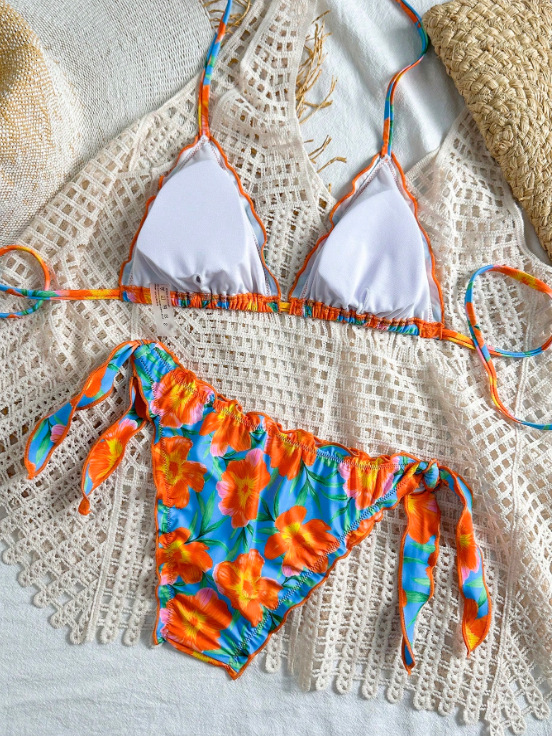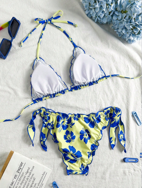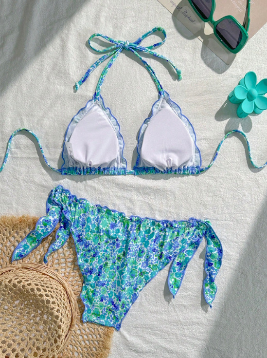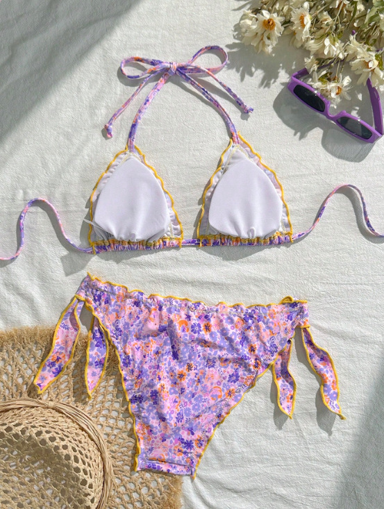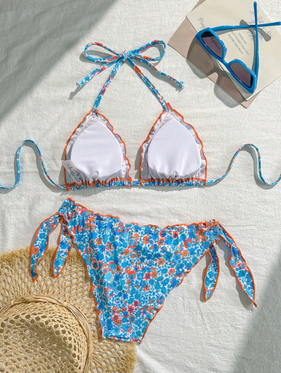 새로운 폭발 귀여운 소녀 꽃 섹시한 뜨거운 소녀 3 점 테더 비키니 스플릿 온천 수영복스토어 가기