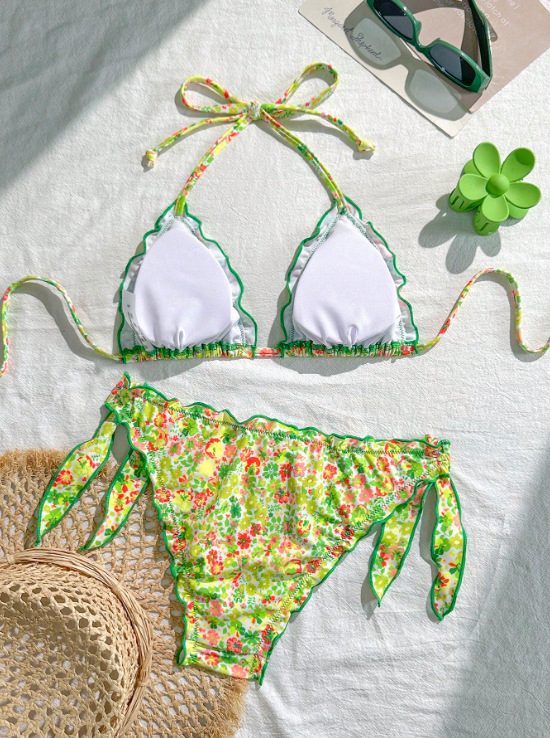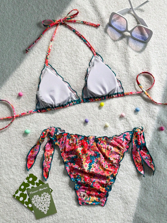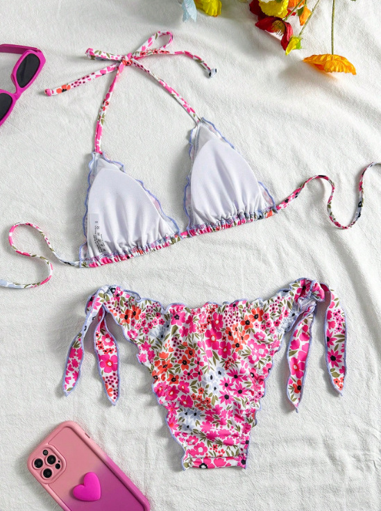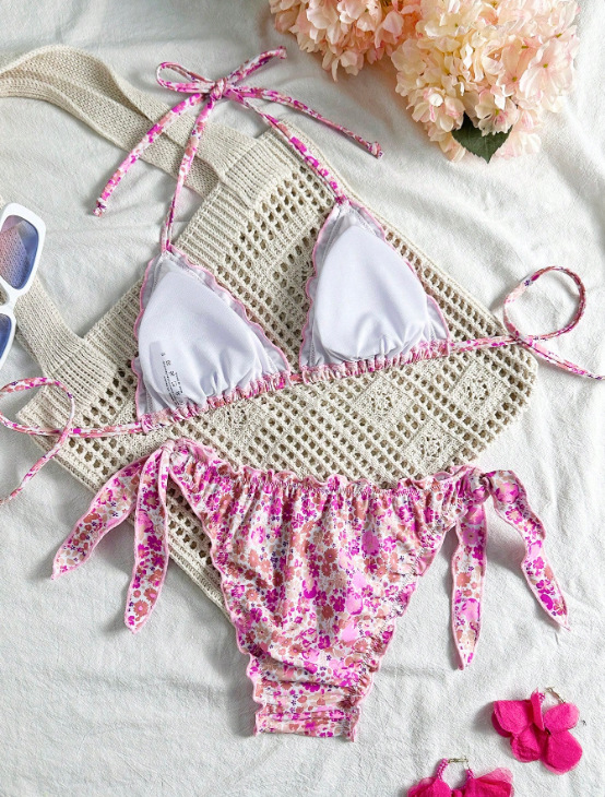 새로운 폭발 귀여운 소녀 꽃 섹시한 뜨거운 소녀 3 점 테더 비키니 스플릿 온천 수영복