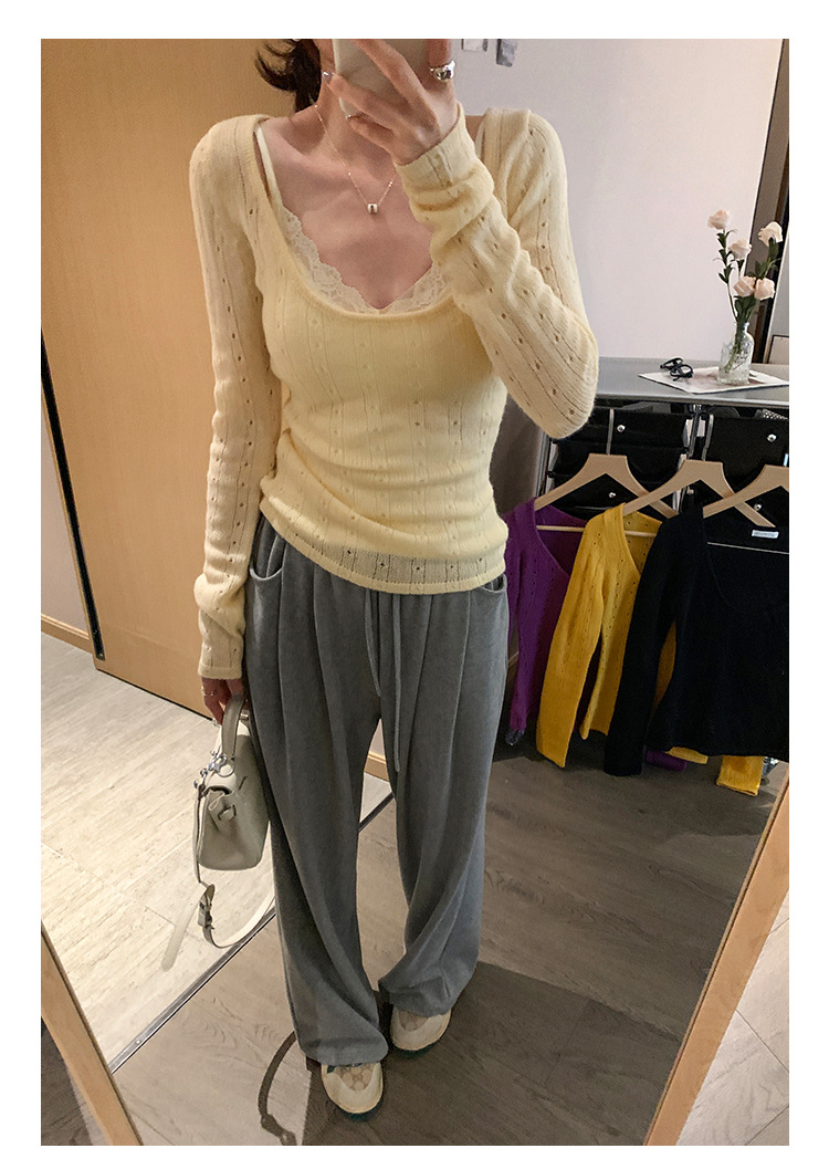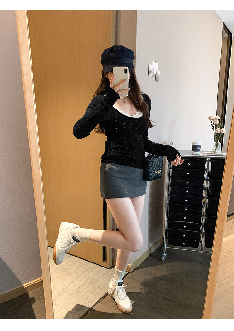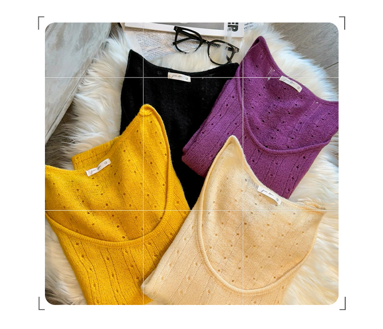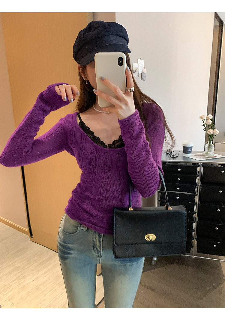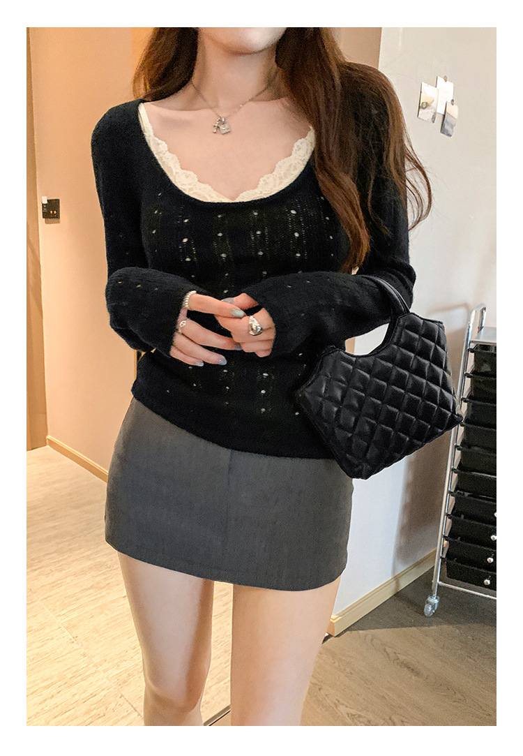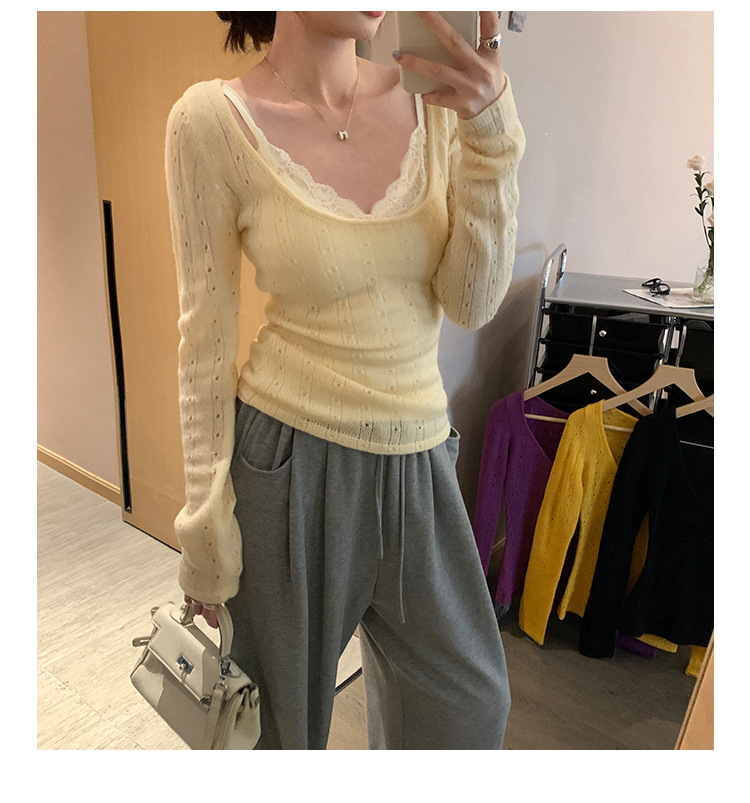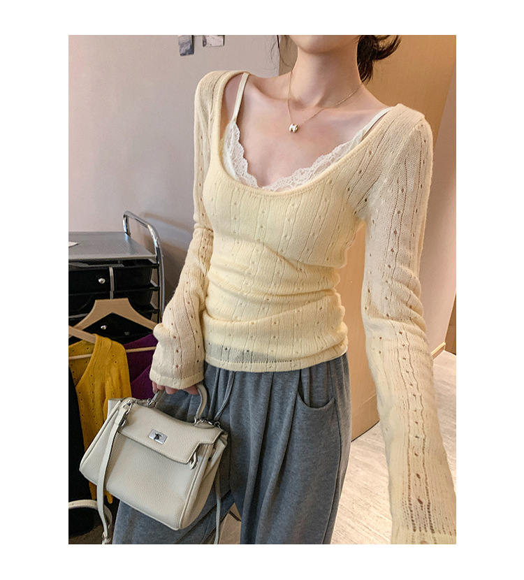2025 봄 새로운 낮은 칼라 중공 긴 소매 양모 스웨터 여성의 순수한 섹시한 소녀 슈퍼 잘 생긴 기질 탑
