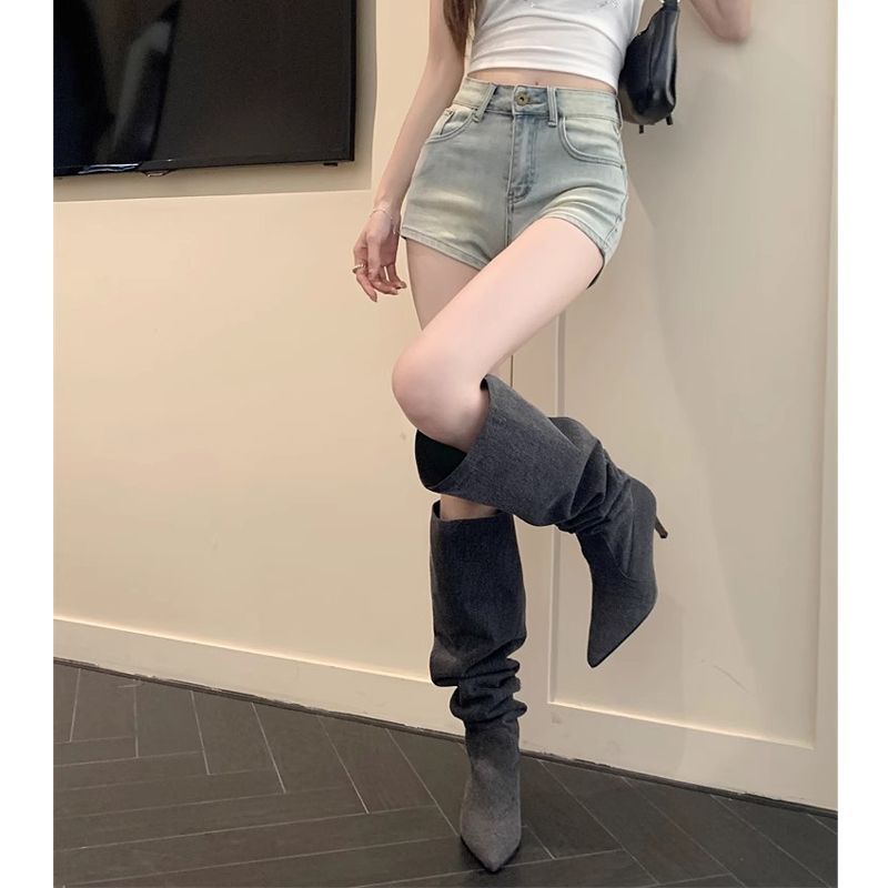 올드 라이트 컬러 데님 반바지 여성 여름 레트로 높은 허리 캐주얼 스트레이트 바지 스파이스 걸스 슈퍼 슬림 슬림 핏 핫 팬츠
