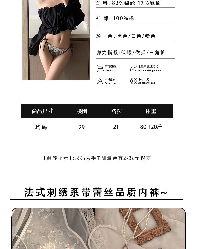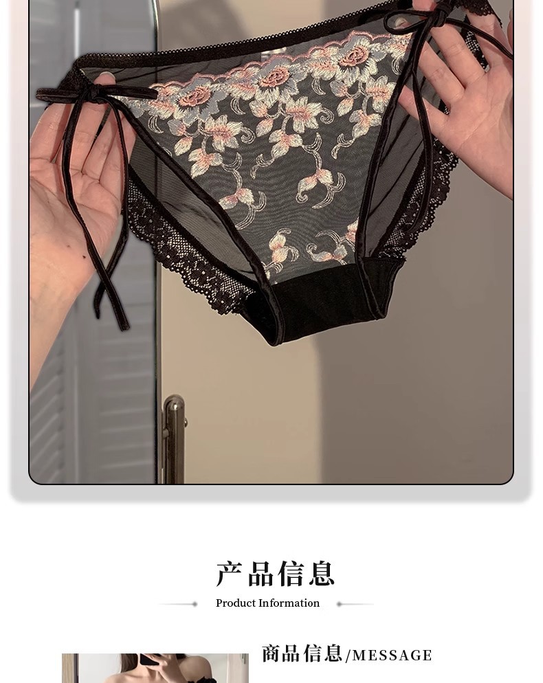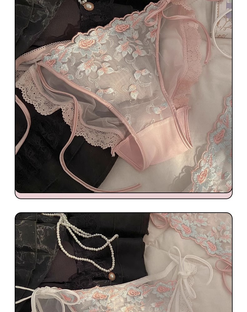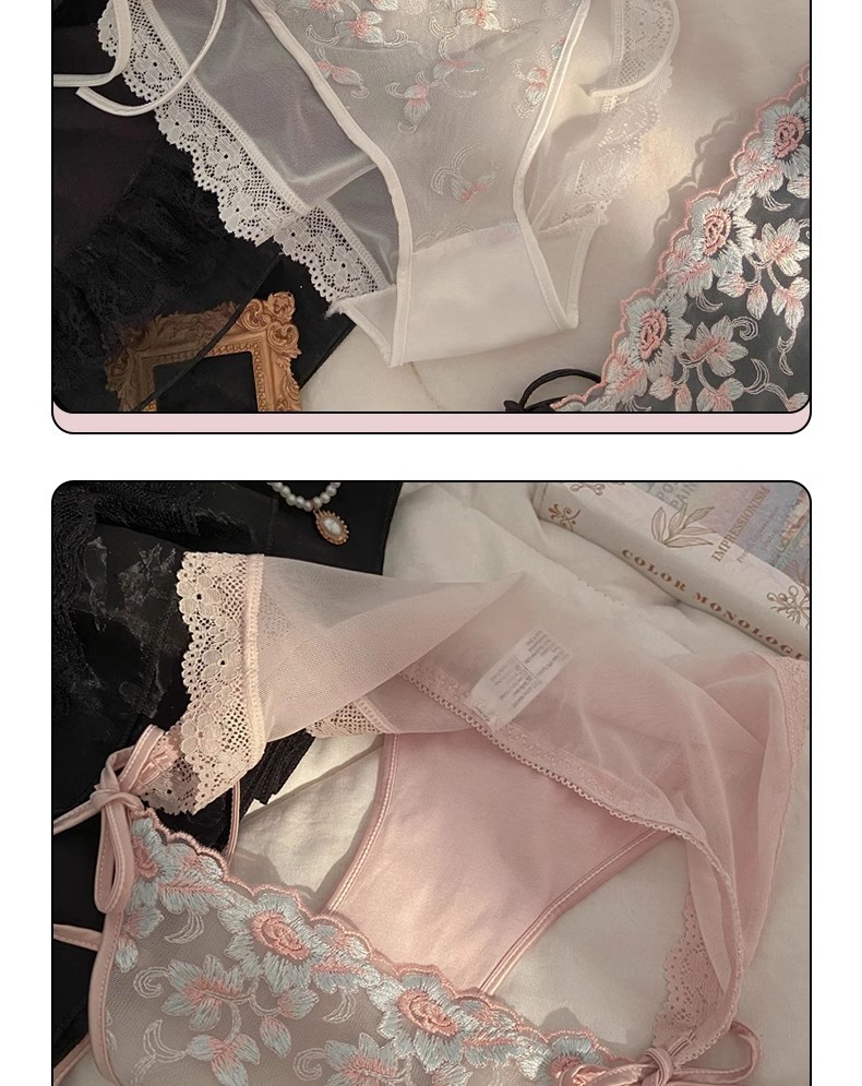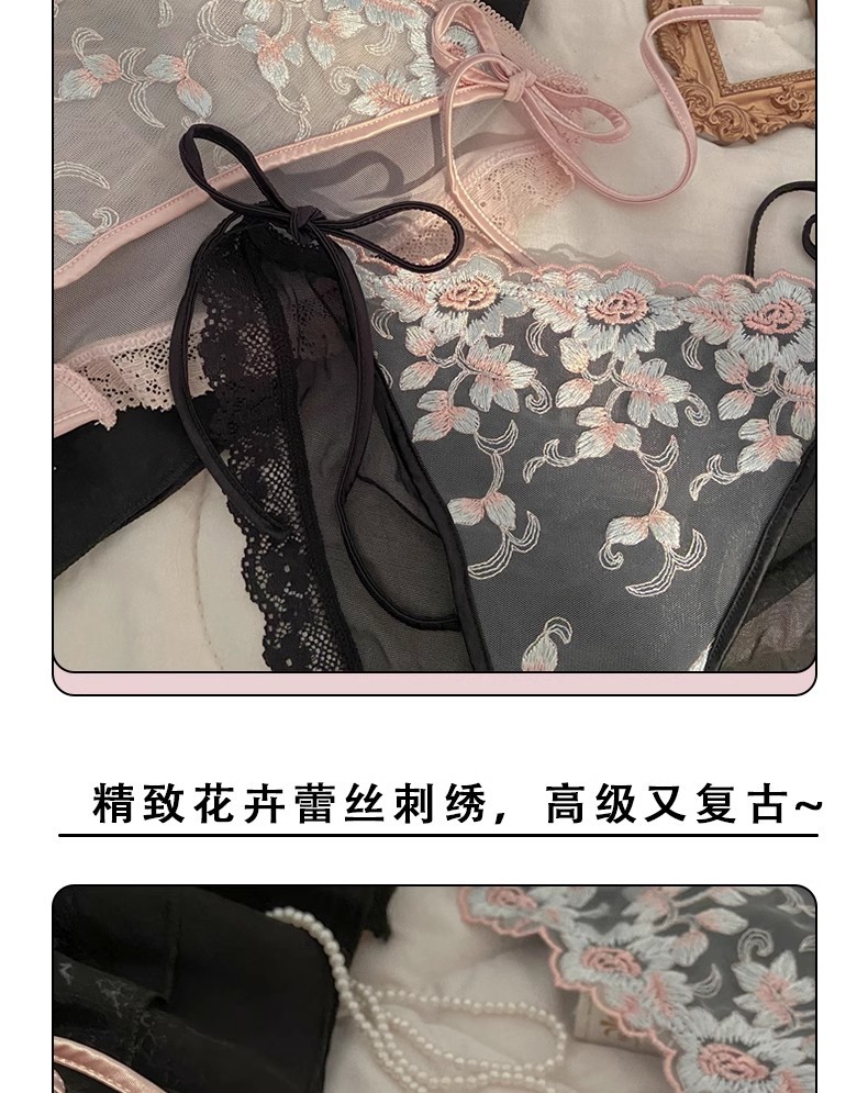 프랑스 스타일 레이스 자수 속옷 여성용 스트랩 섹시한 순수한 욕망 높은 분할 낮은 허리 레이스 업 소녀의 브리프스토어 가기