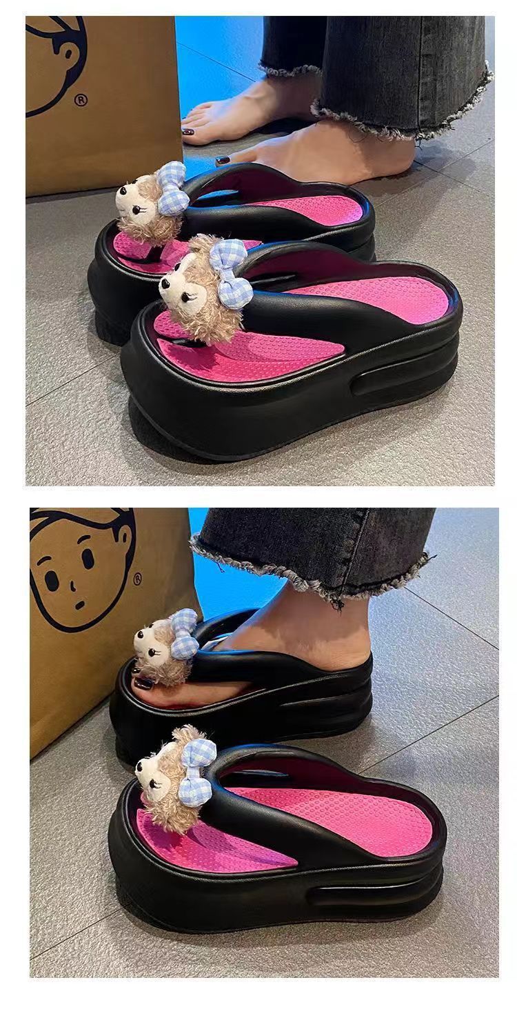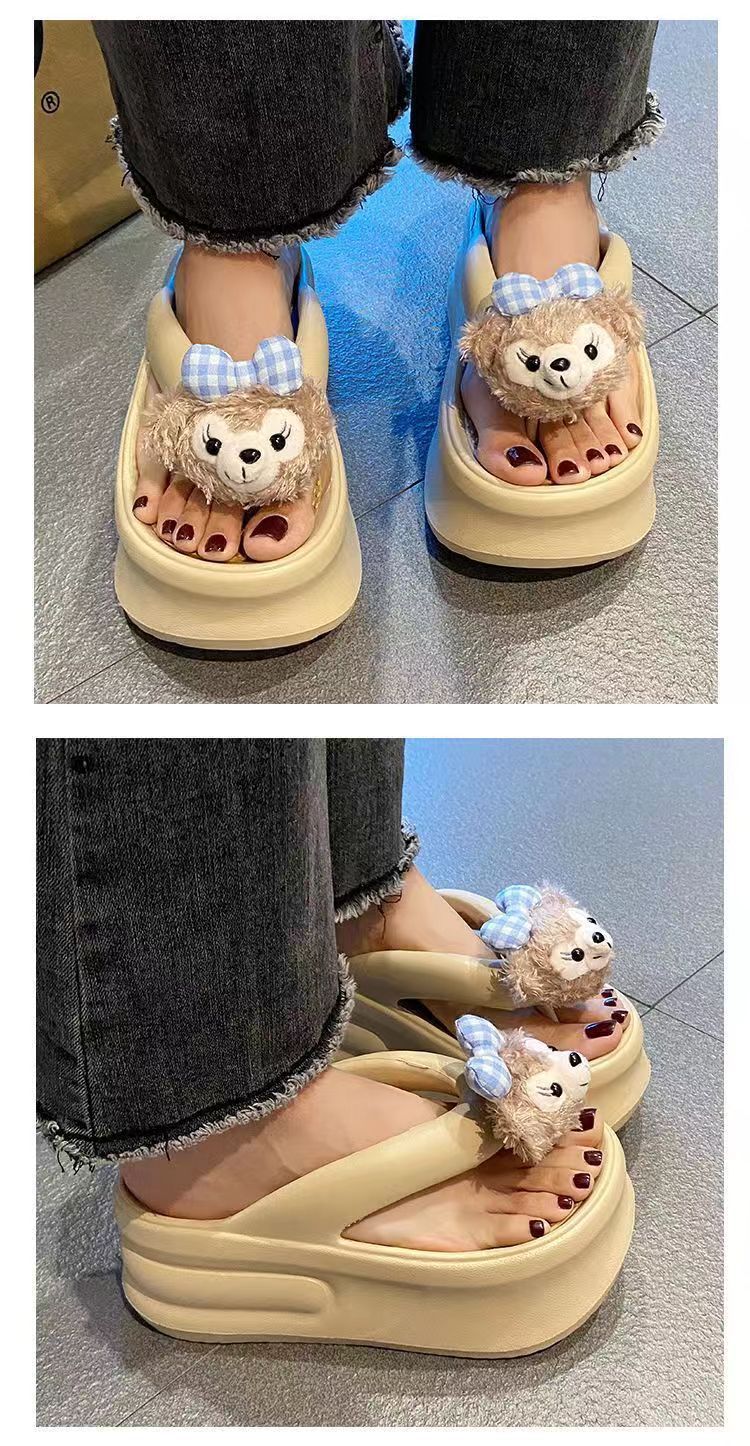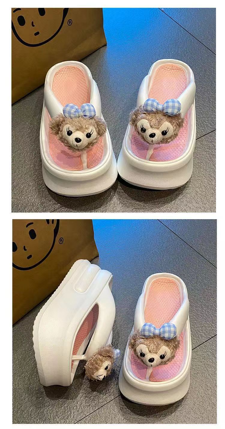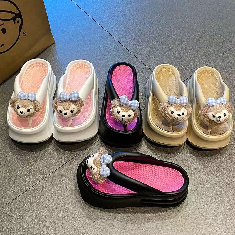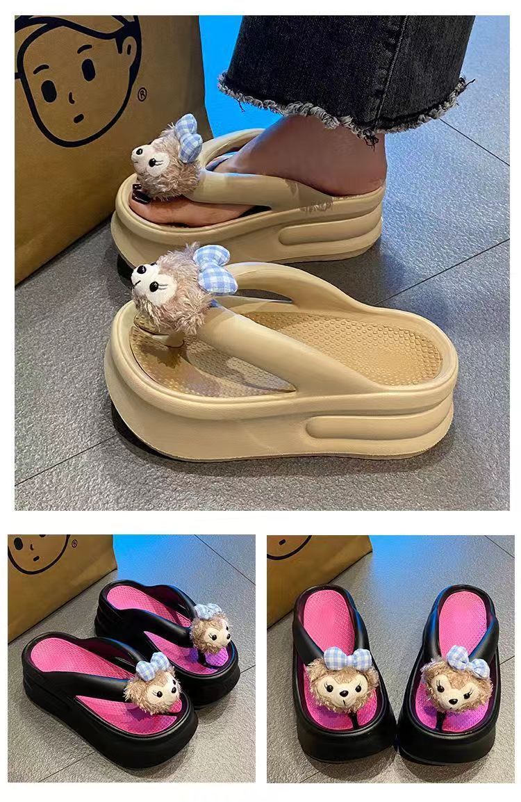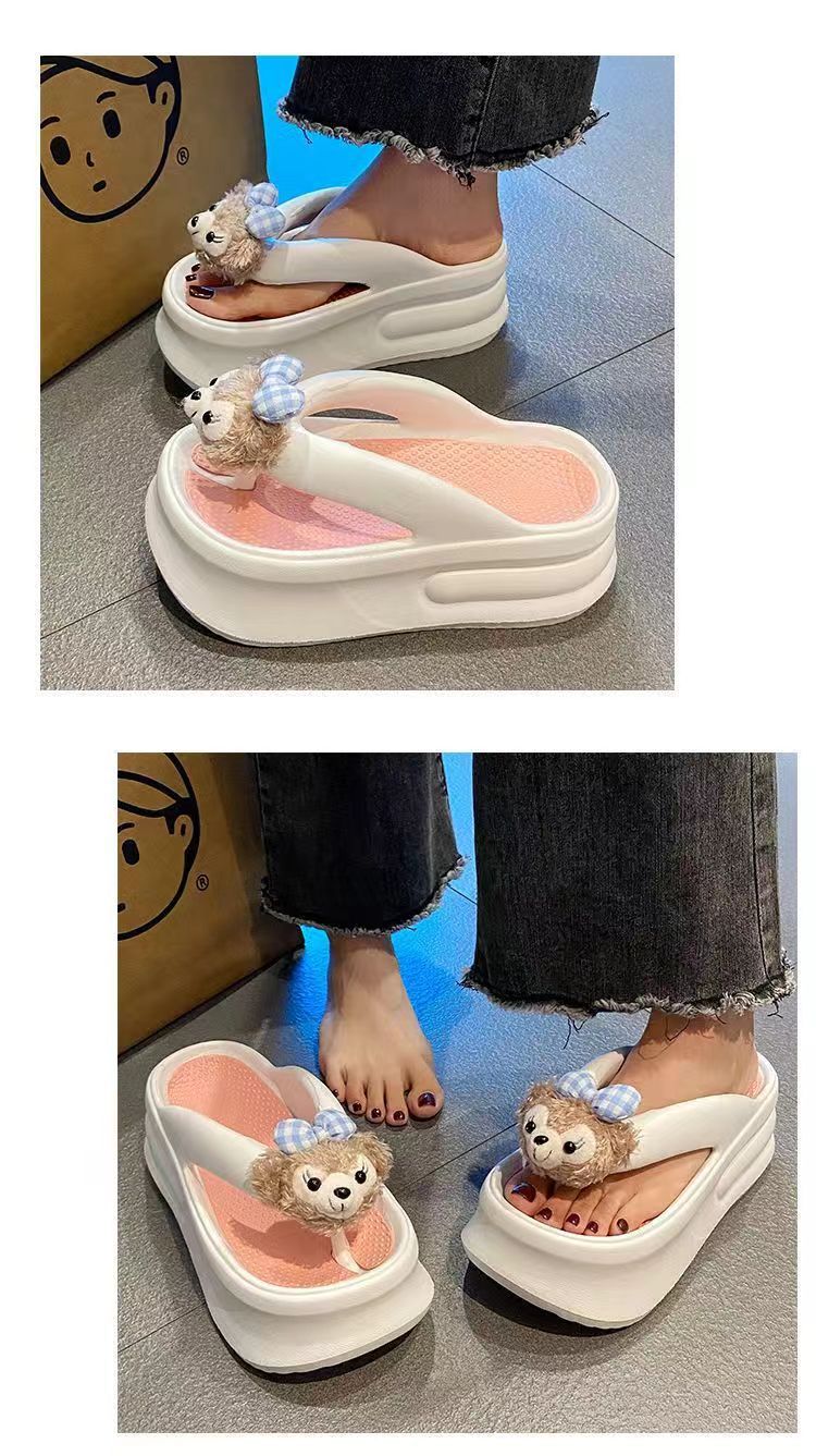 더피 베어 2024 새로운 7cm 두꺼운 바닥 슬리퍼 여성 여름 착용 EVA 탈취제 실내 미끄럼 방지 플립 플롭