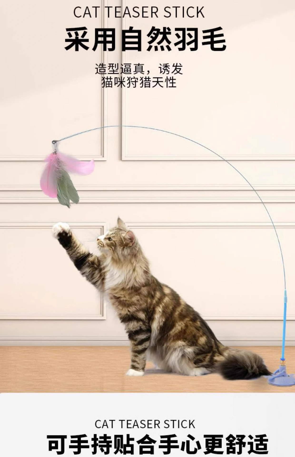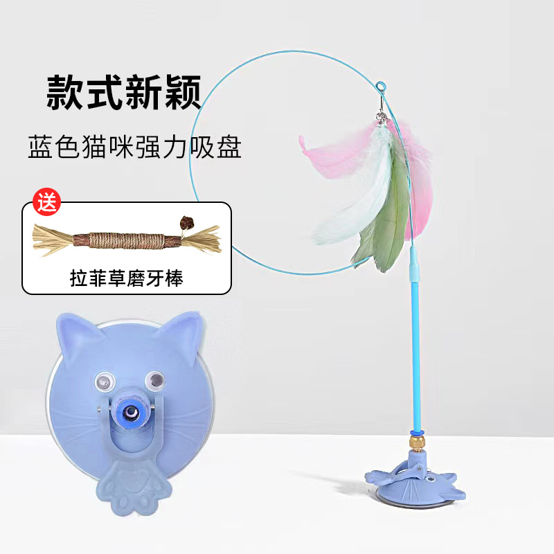 • 초강력 흡입컵 고양이 놀리는 막대기 [파란색 깃털 포함]