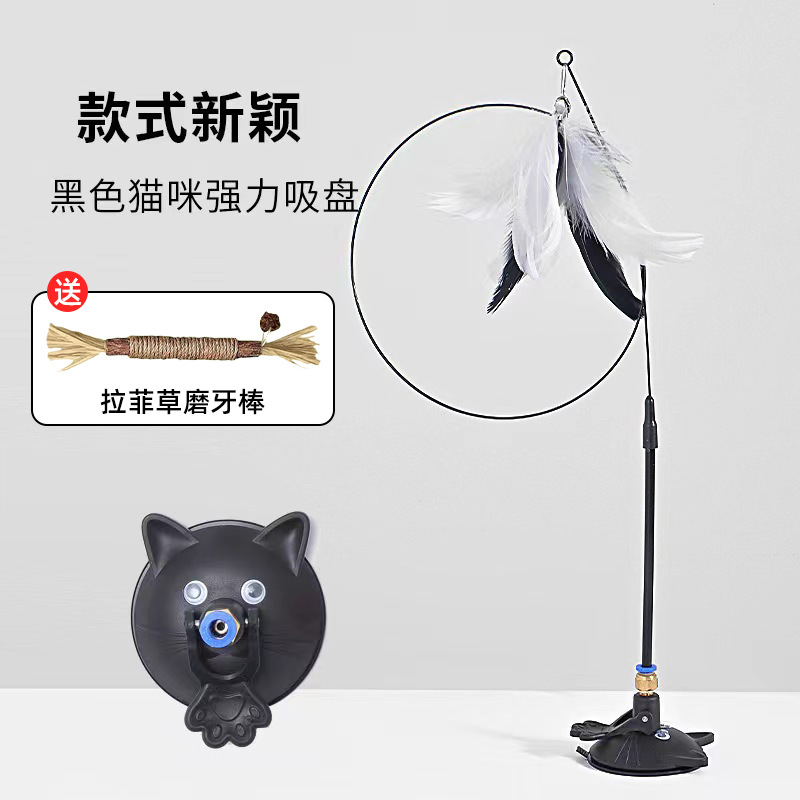 • 초강력 흡입컵 고양이 놀리는 막대 [검은색 깃털 포함]