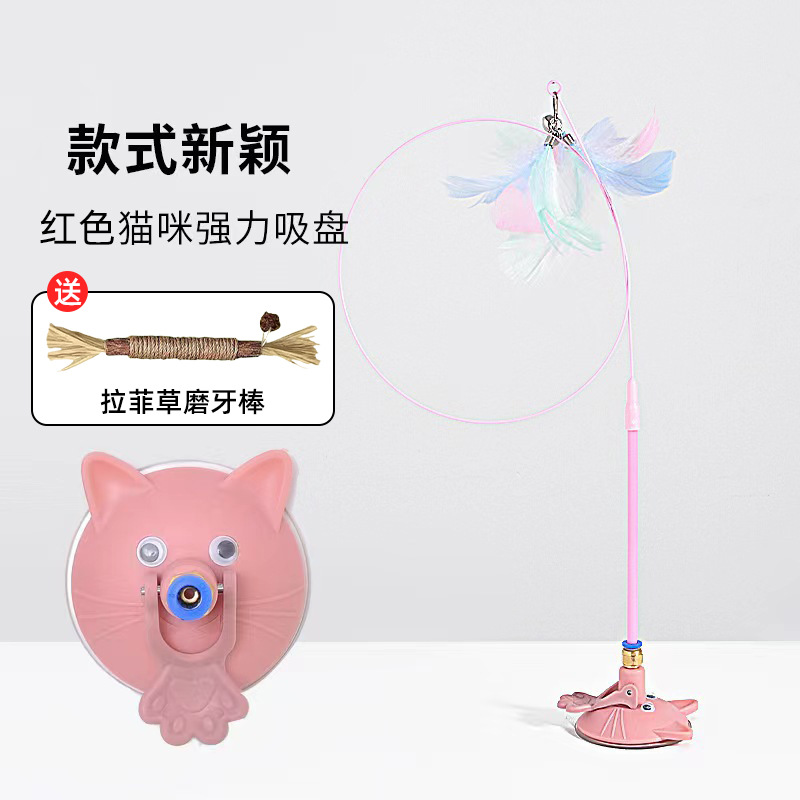 • 초강력 흡착컵 고양이 놀리는 막대 [핑크색 깃털 포함]