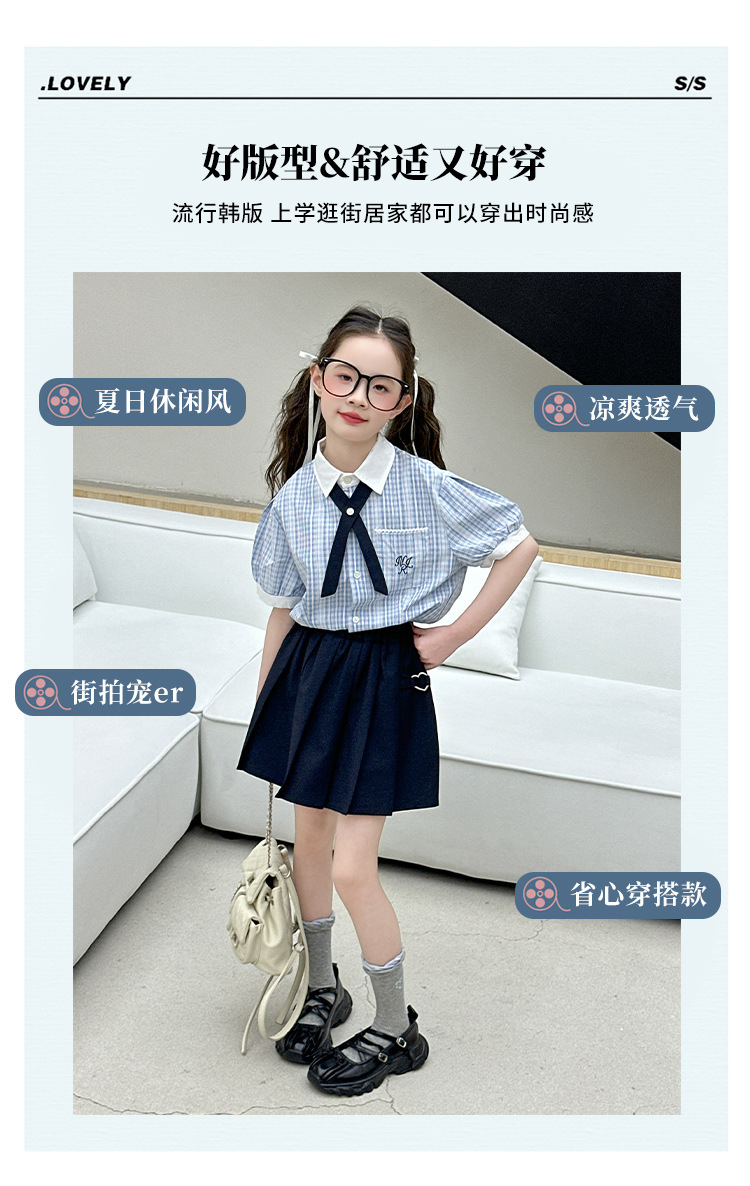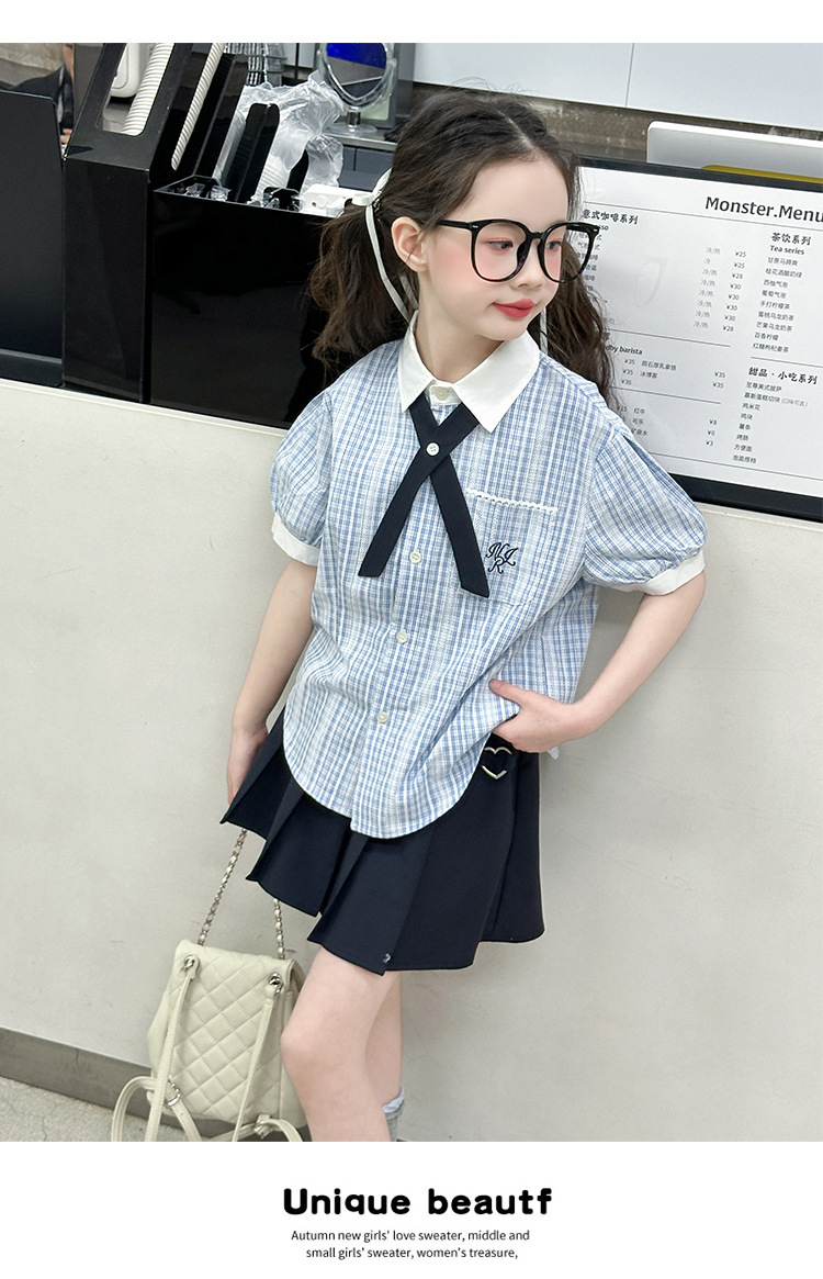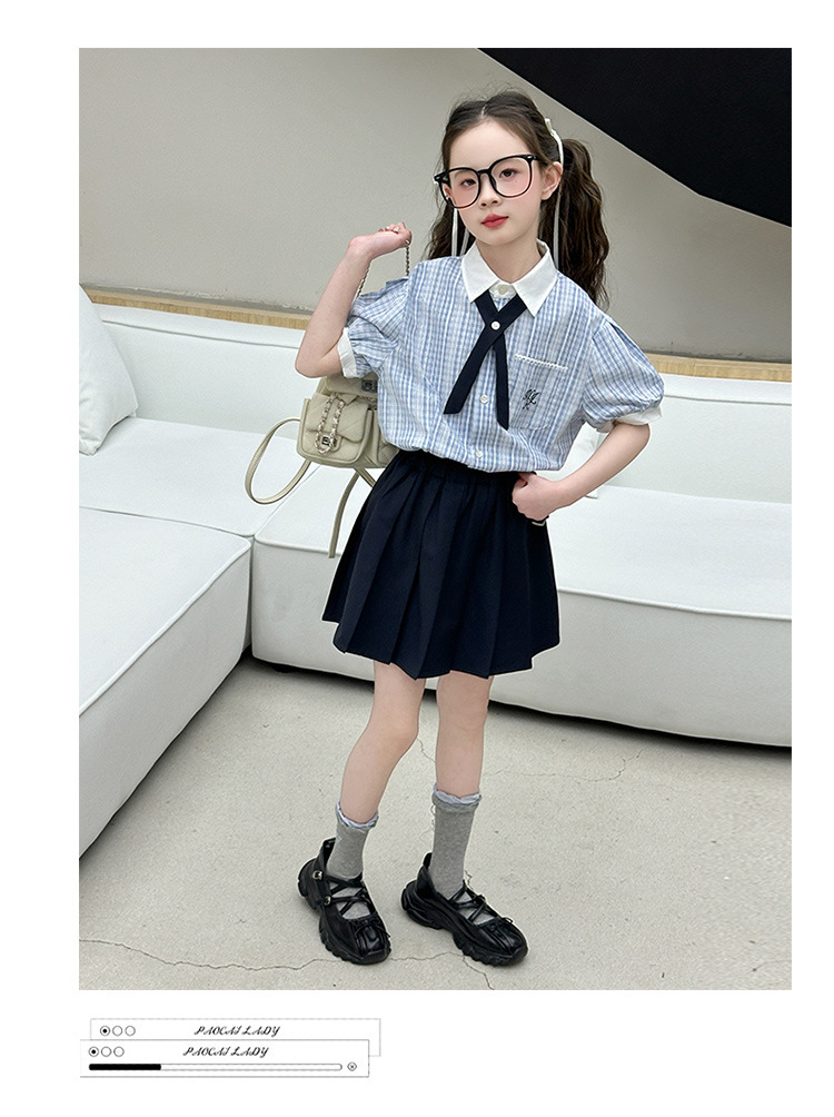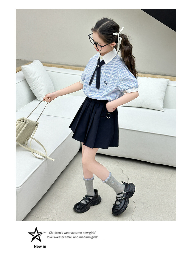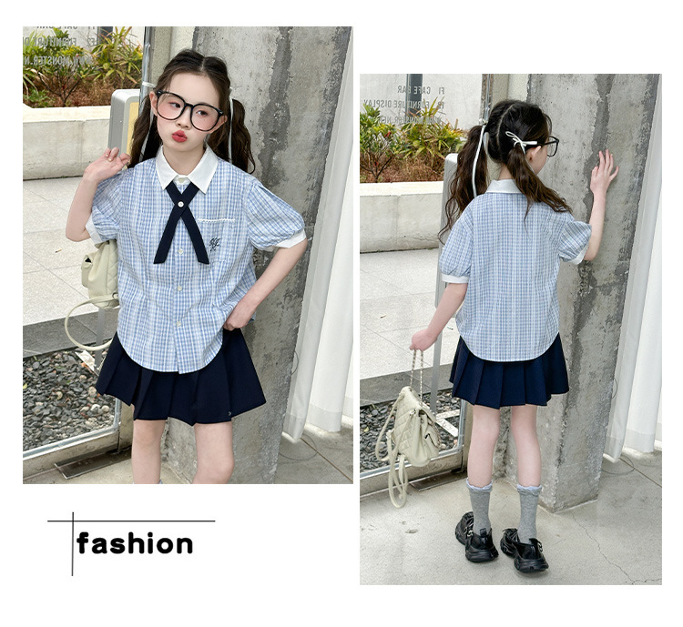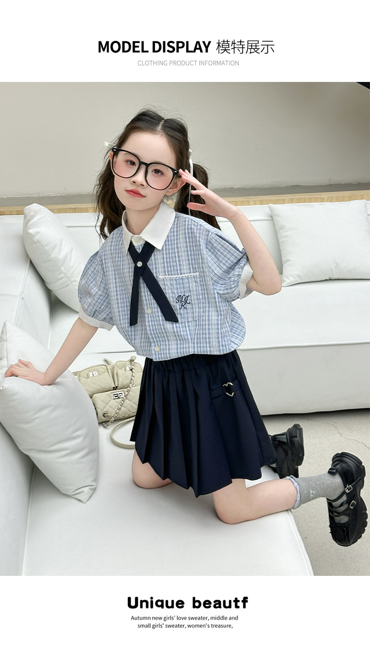 여자 여름 JK 유니폼 세트 2025 새로운 어린이 서양식 대학 스타일 셔츠 주름 치마 투피스 세트 트렌디스토어 가기