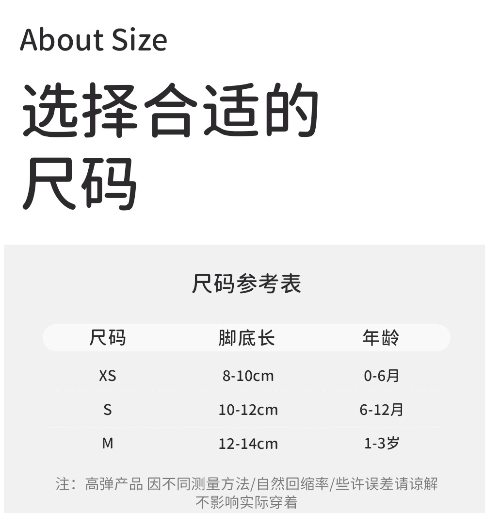• XS(발 길이 7-10cm에 적합) 0-6개월
