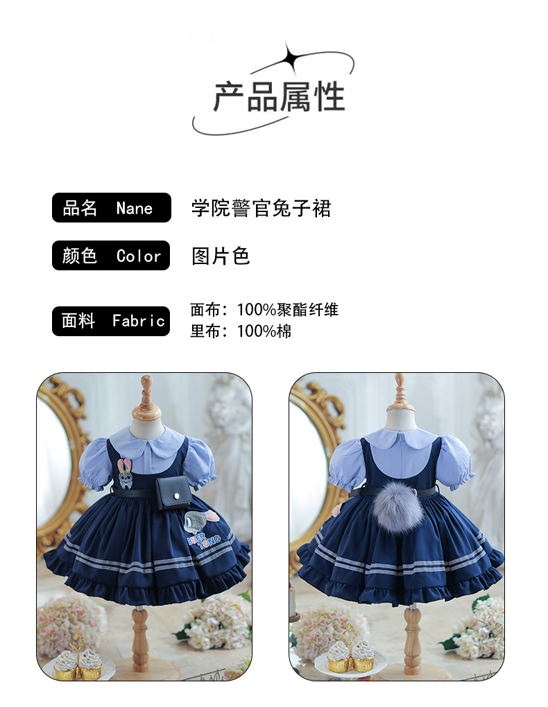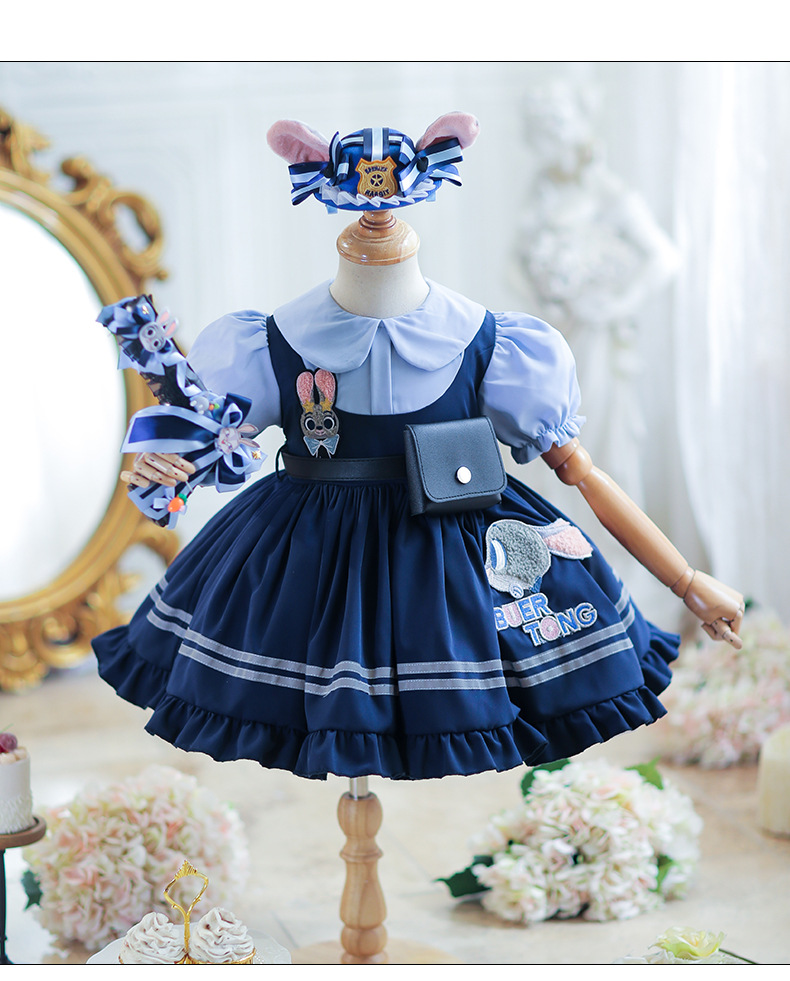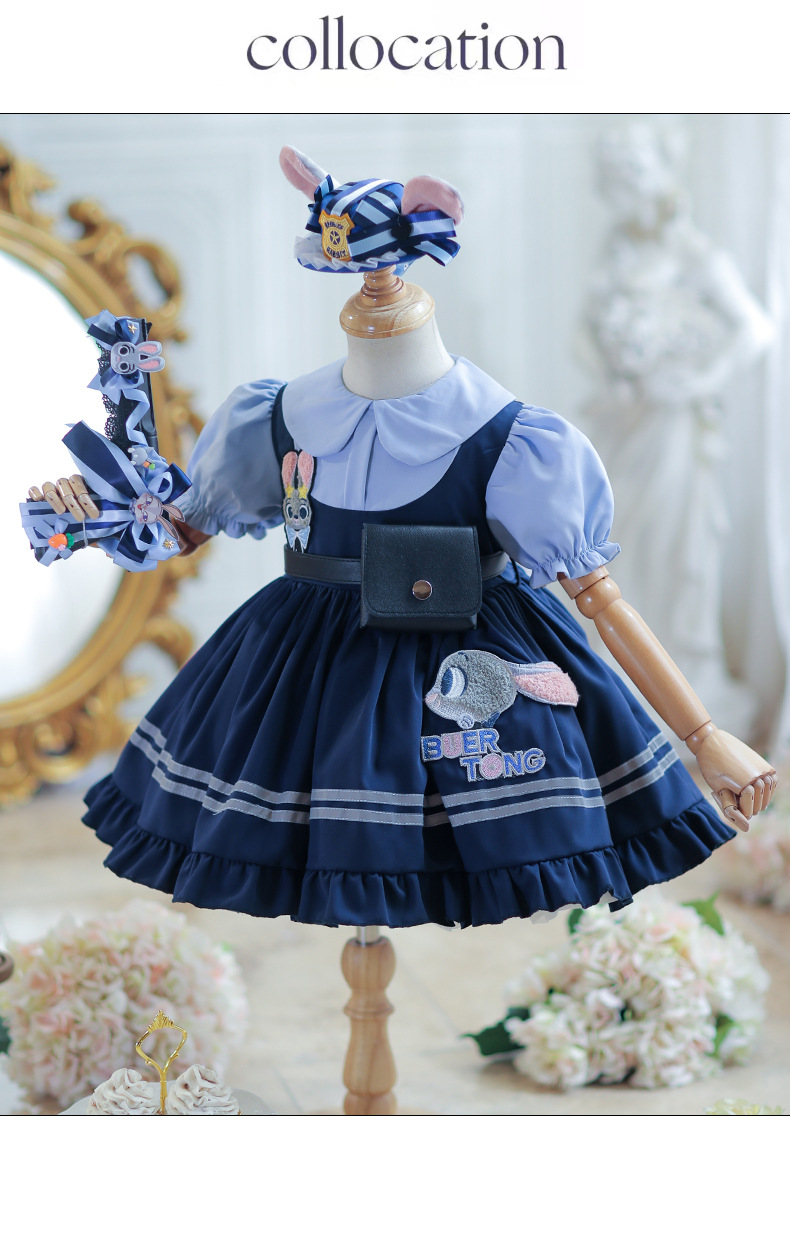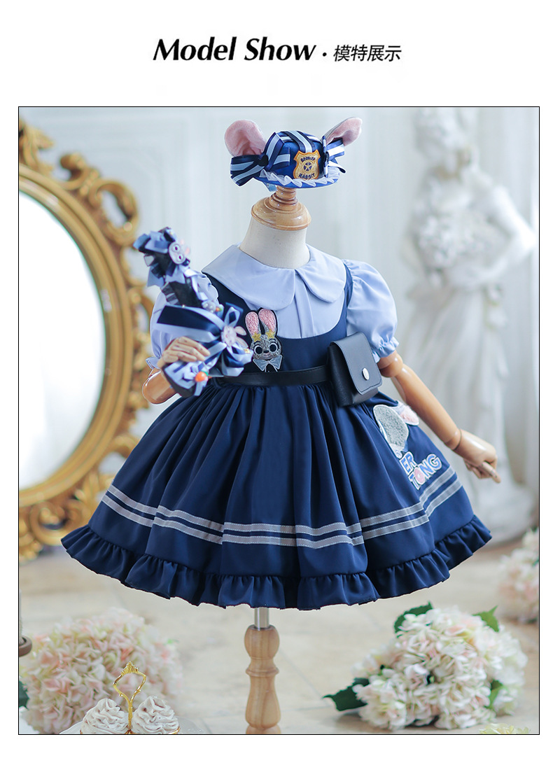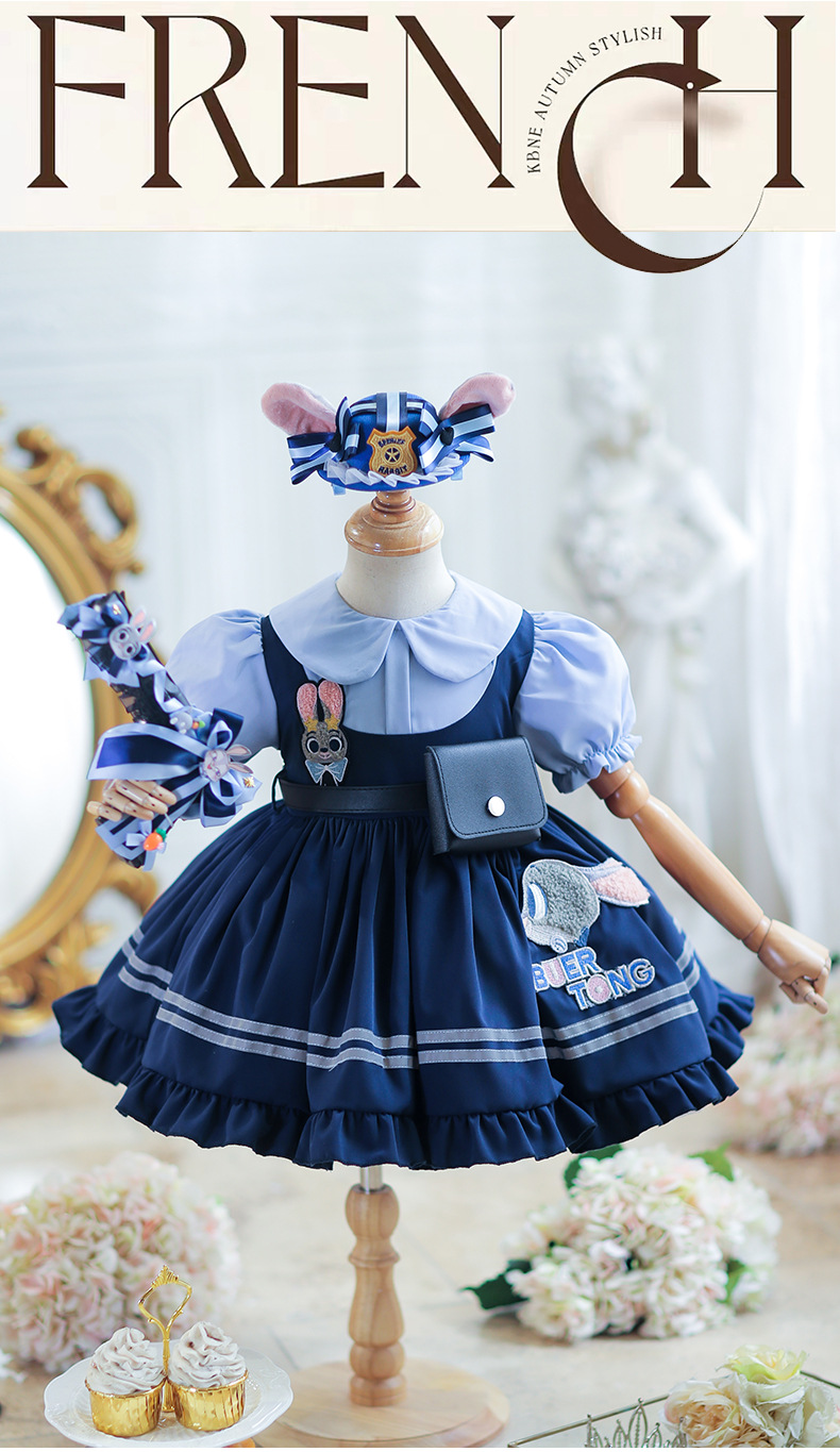 여자 2025 여름 의상 토끼 경찰관 반팔 여름 로리타 공주 스커트 생일 드레스