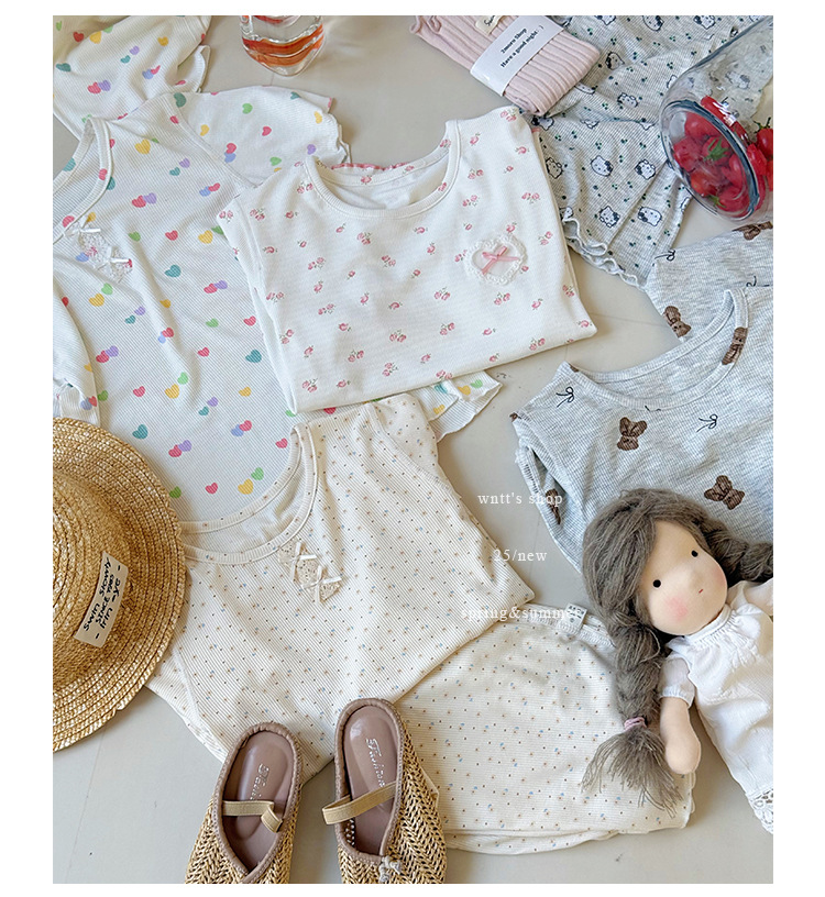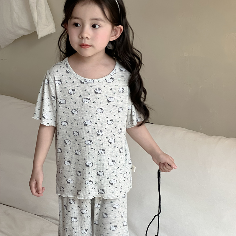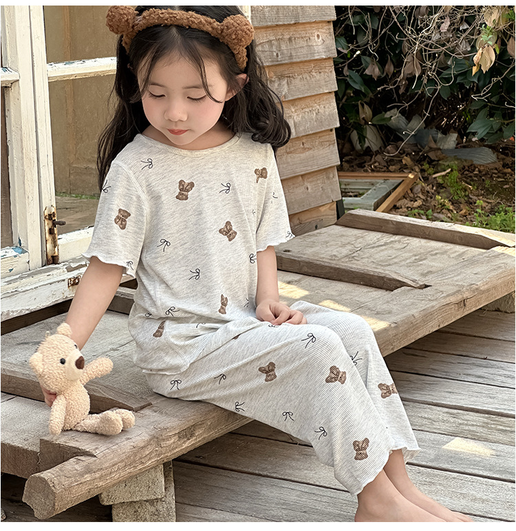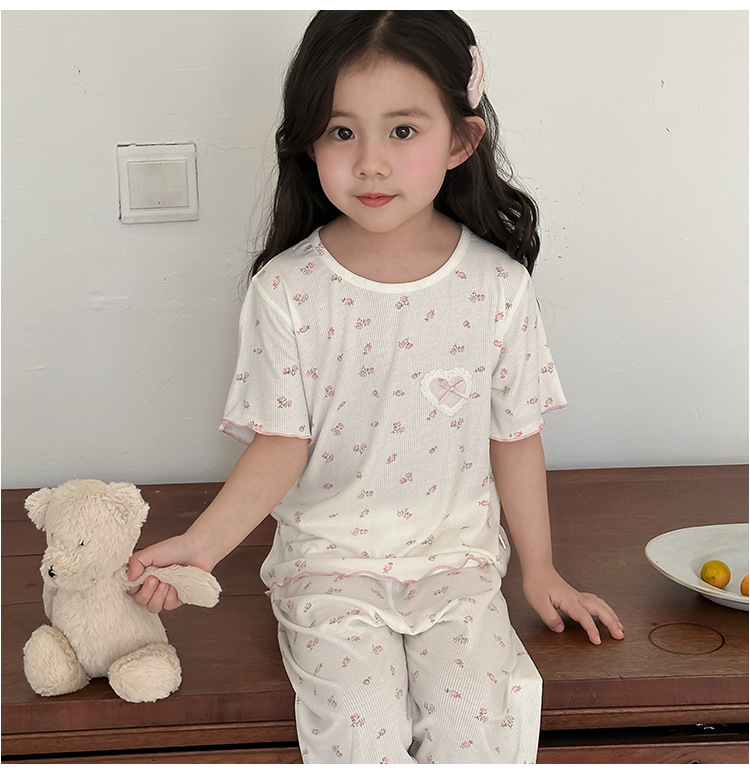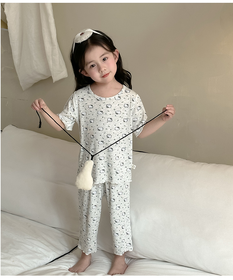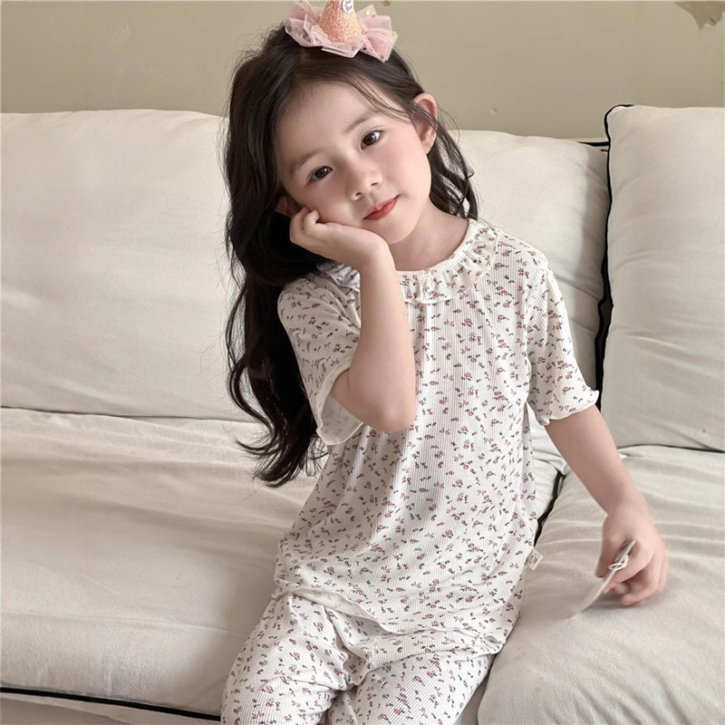 2025 프린세스 에어컨 의류 소녀 잠옷 여름 모달 트레이스리스 달콤한 귀여운 어린이 홈 세트