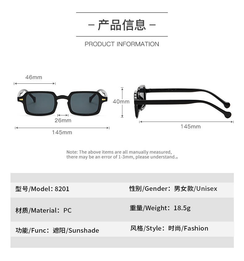 2025 새로운 광장 작은 프레임 간단한 요소 선글라스 맞춤형 패션 트렌드 선스크린 여성 일반 장식 선글라스스토어 가기