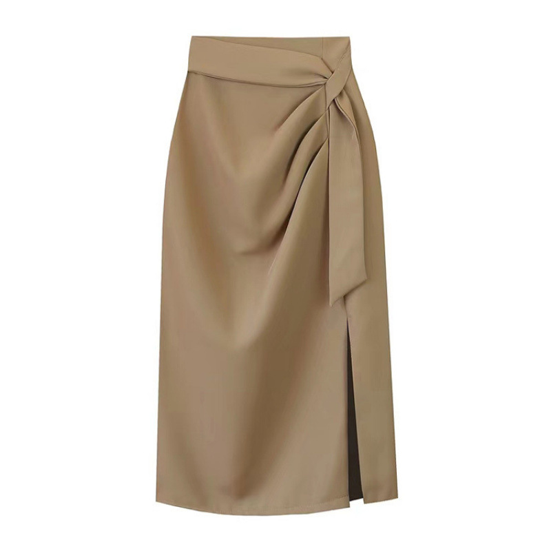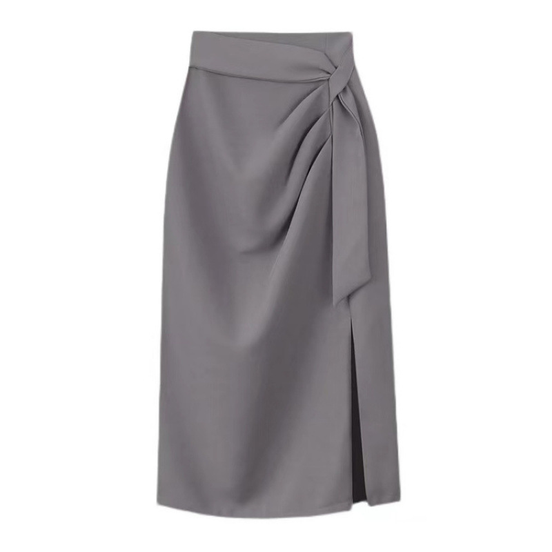 여자 중간 길이 치마 2025 봄 새로운 높은 허리 세트 스커트 우아한 불규칙한 엉덩이 분할 A 라인 스커트