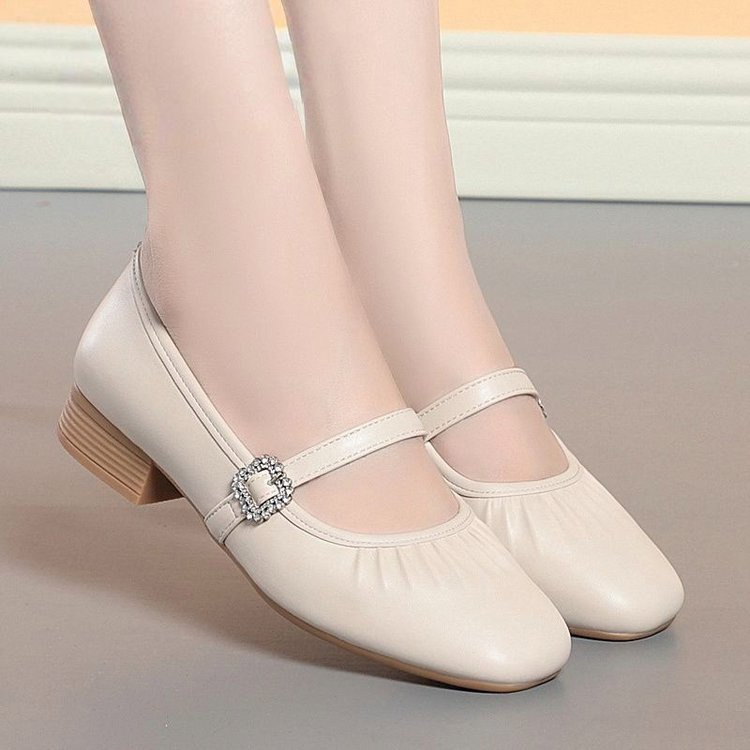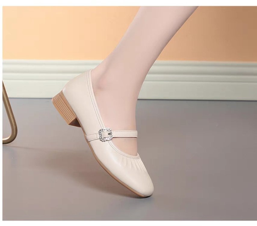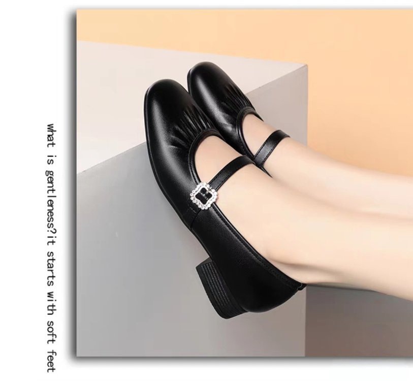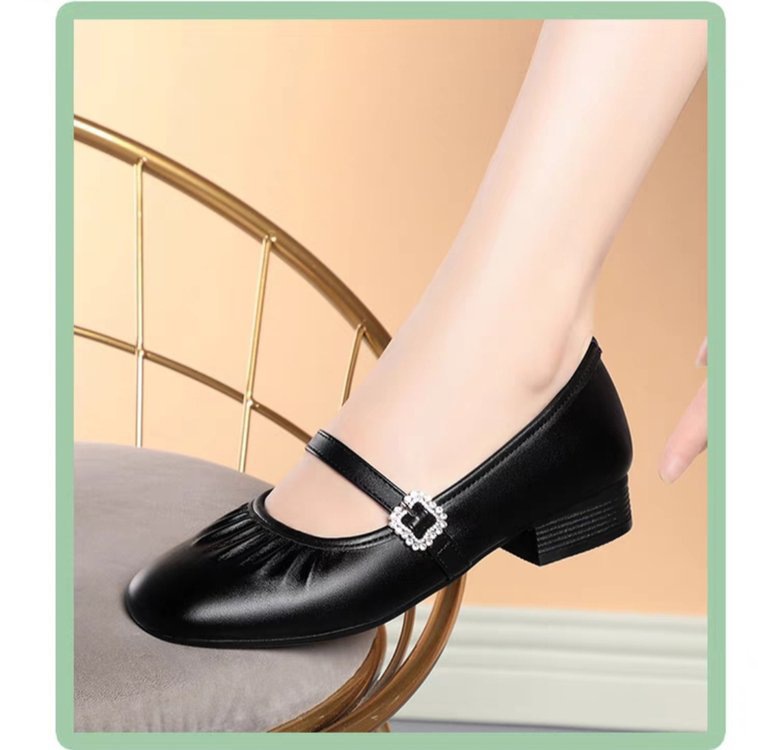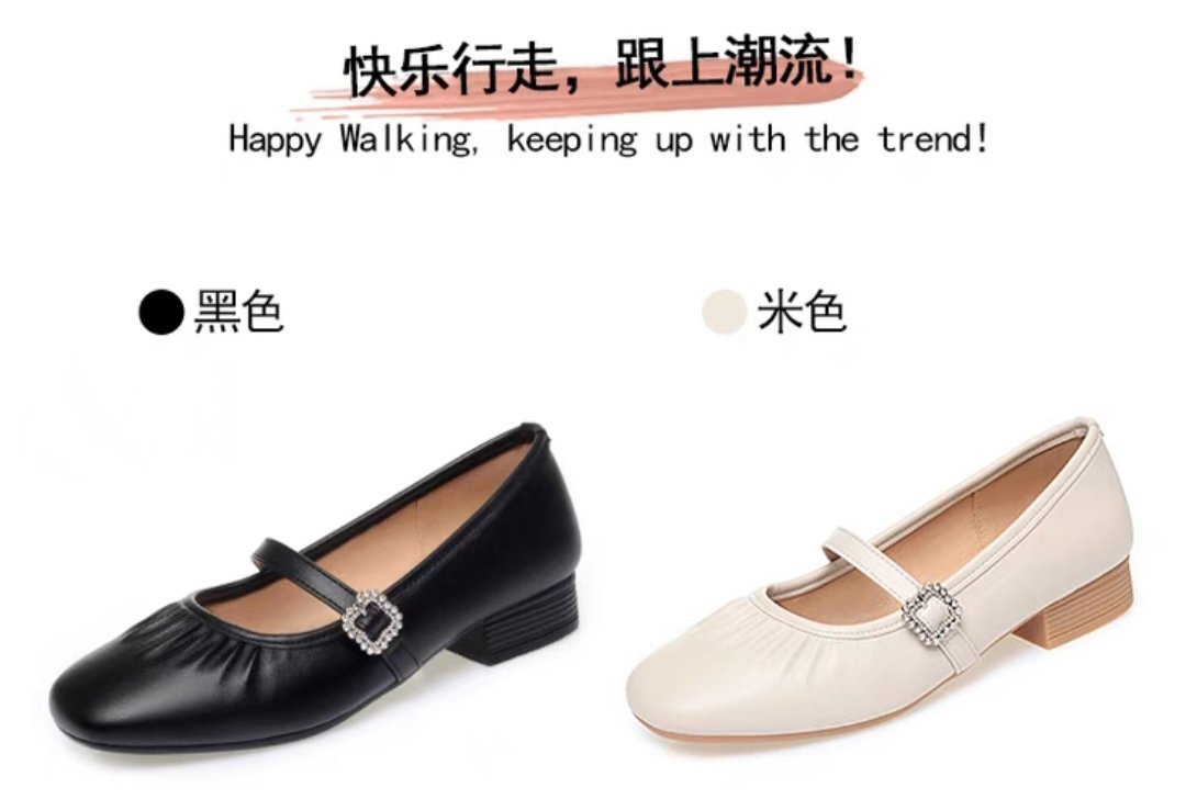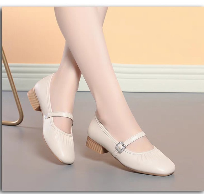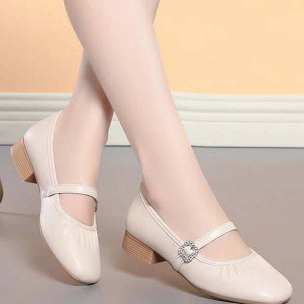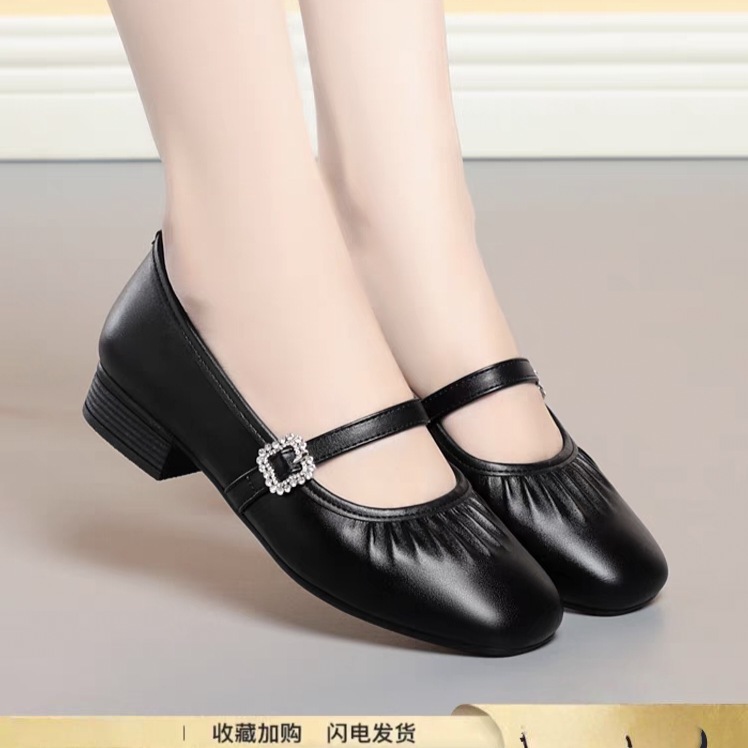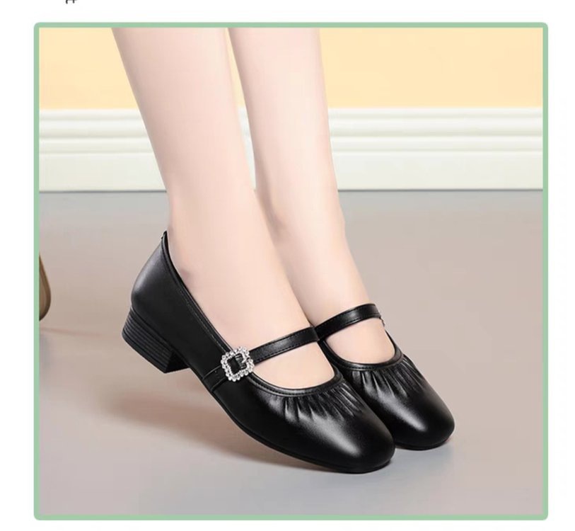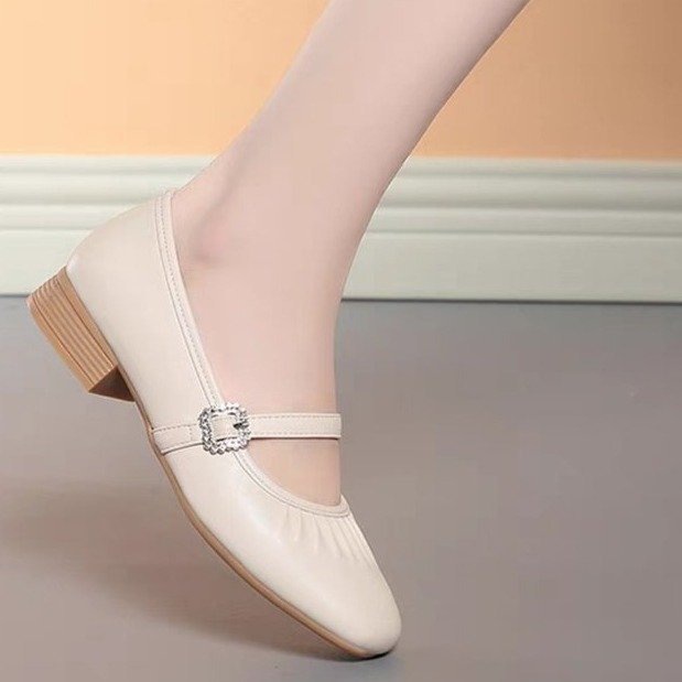 Mary Jane Shallow 입 싱글 레이어 신발 여성 프렌치 스타일 두꺼운 톱니 형 어머니 신발 2025 봄 새로운 도착 여성 가죽 신발 부드러운 표면