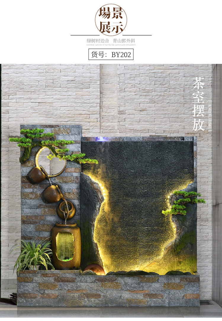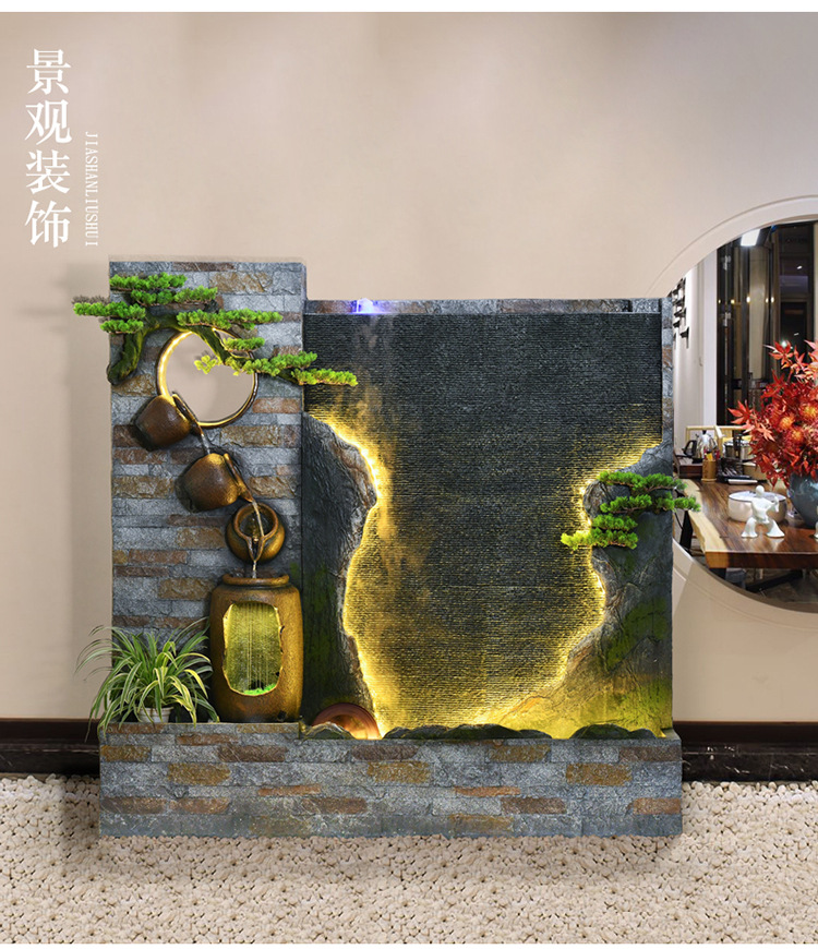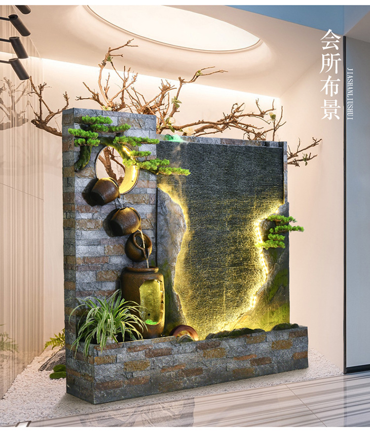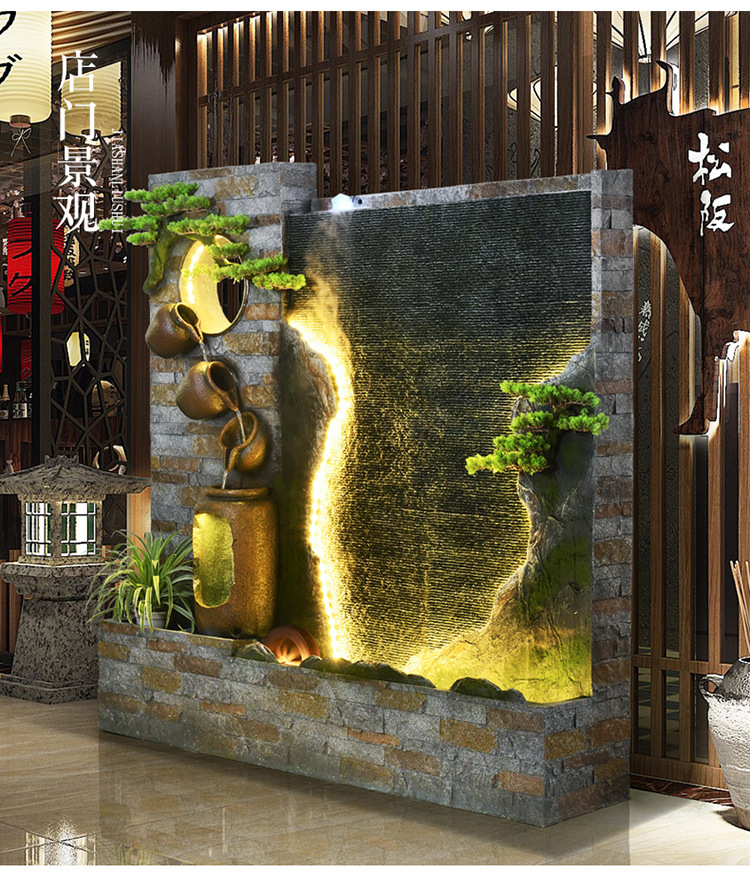물 커튼 벽 흐르는 물 스크린 파티션 바위 분수 사무실 안뜰 정원 클럽 풍경 장식 바닥 장식품스토어 가기