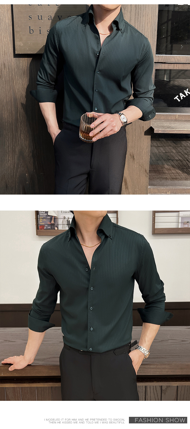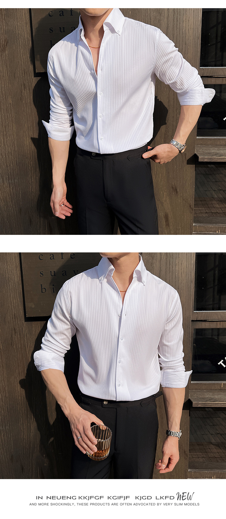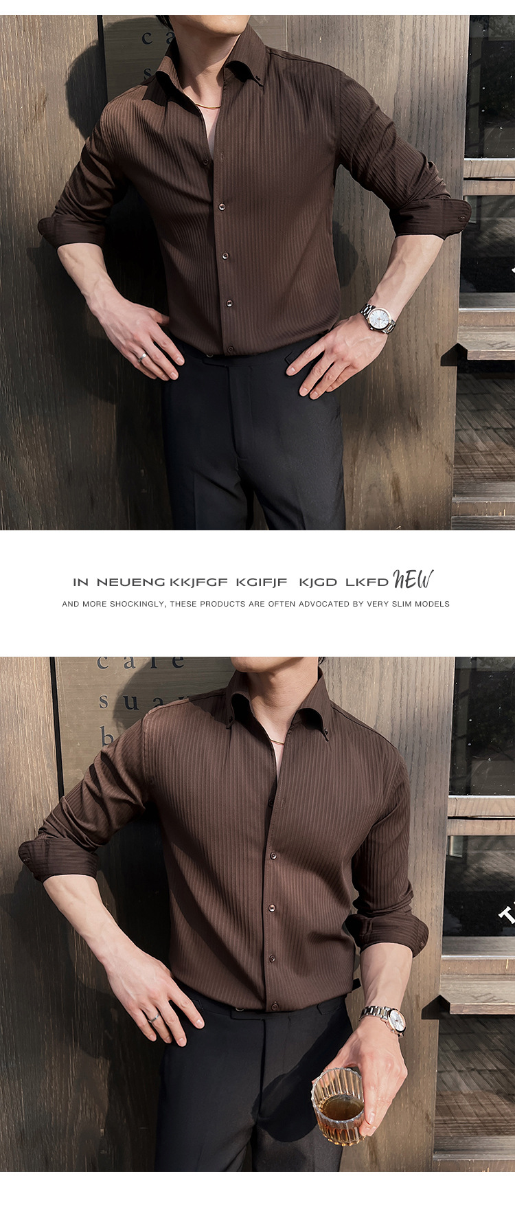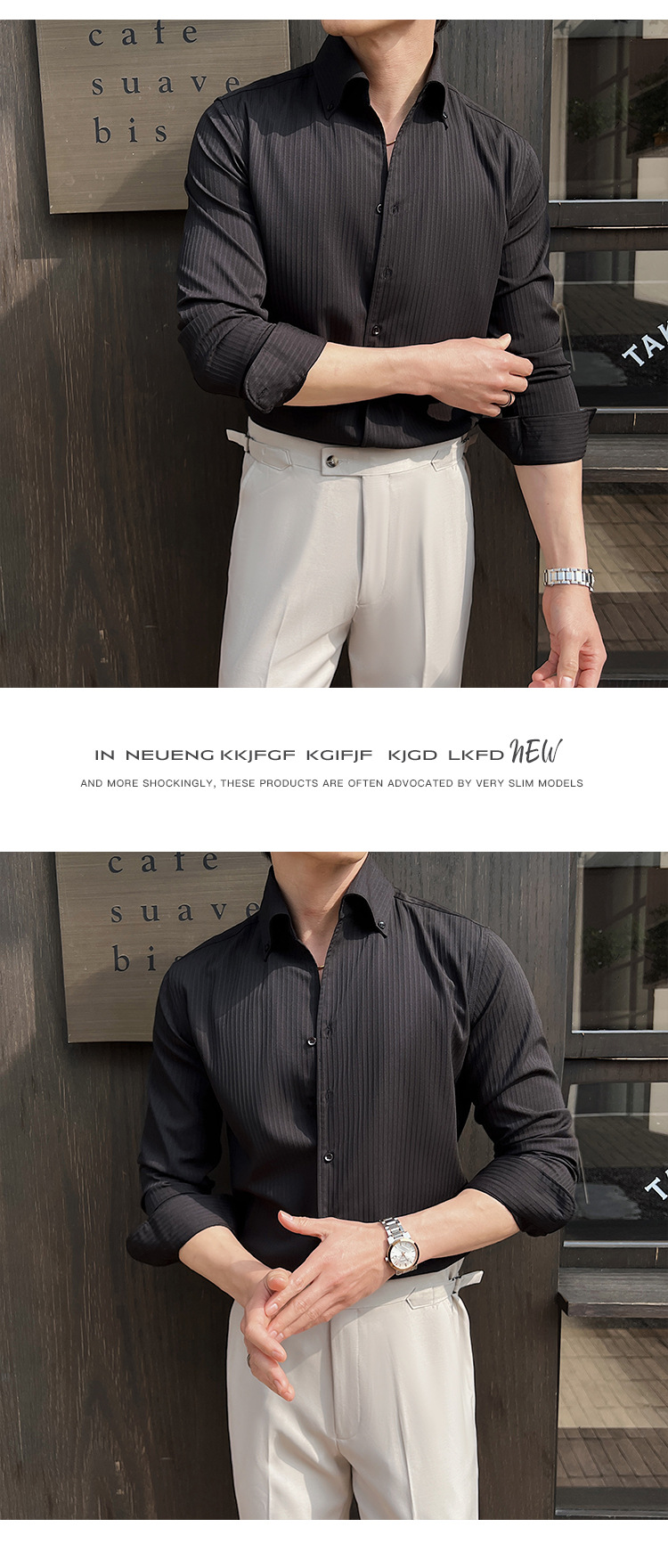 봄 새로운 하이 센스 와플 남성용 스탠드 칼라 셔츠 긴 소매 원활한 드레이프 셔츠 도매 오버웨어 남성용스토어 가기