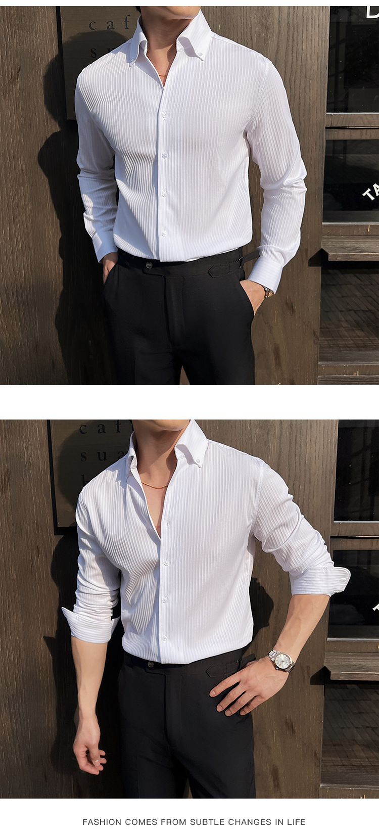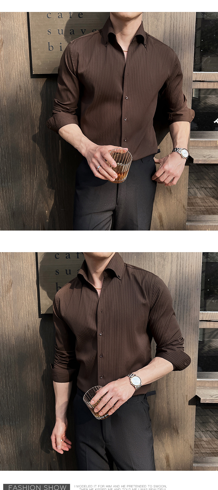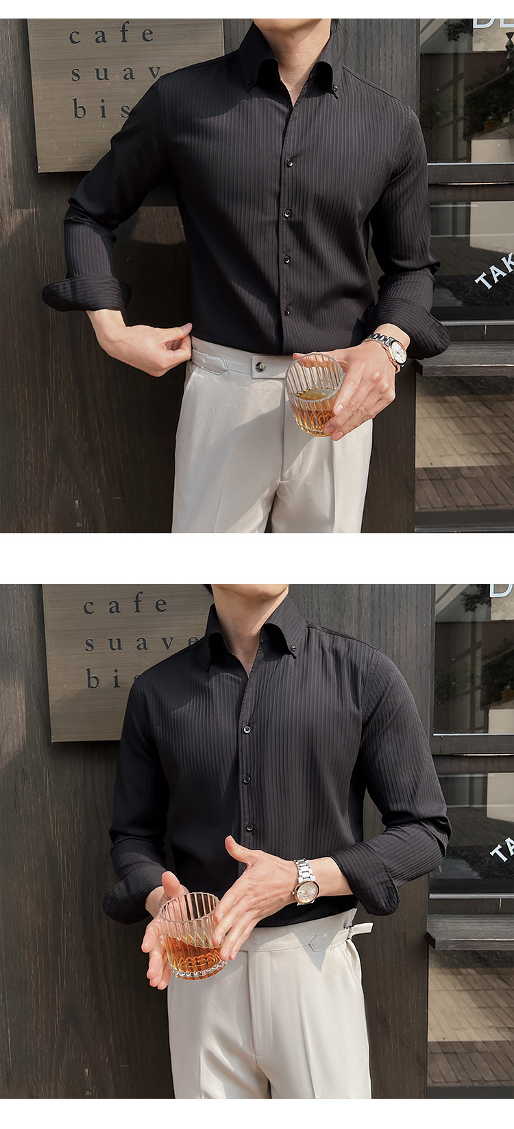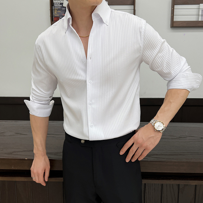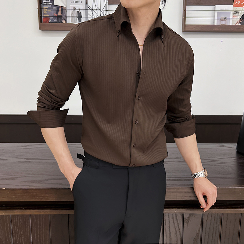 봄 새로운 하이 센스 와플 남성용 스탠드 칼라 셔츠 긴 소매 원활한 드레이프 셔츠 도매 오버웨어 남성용스토어 가기