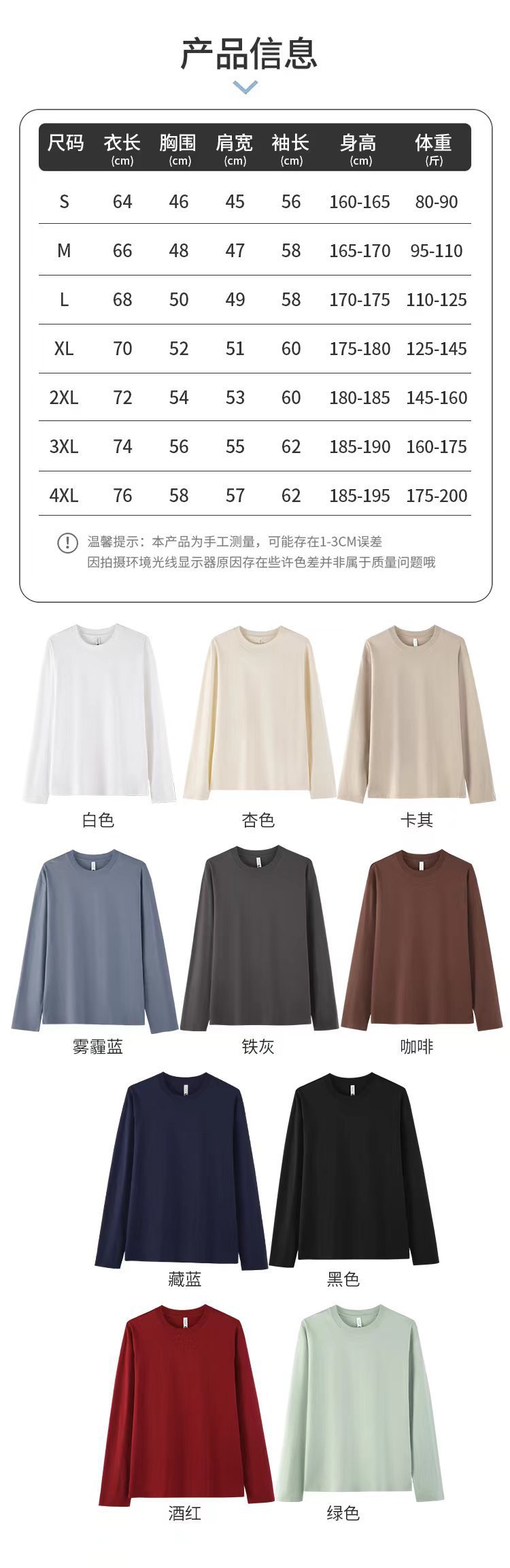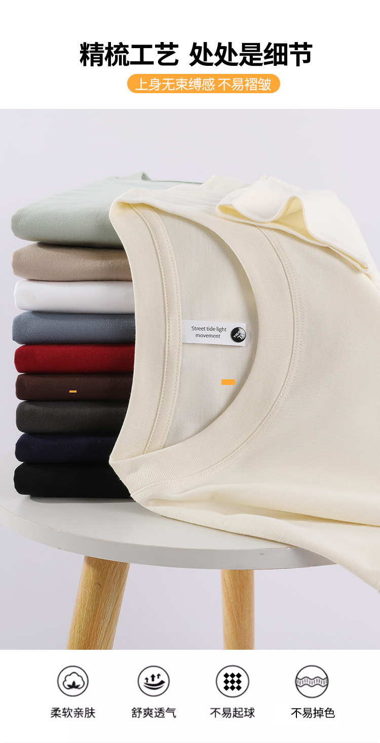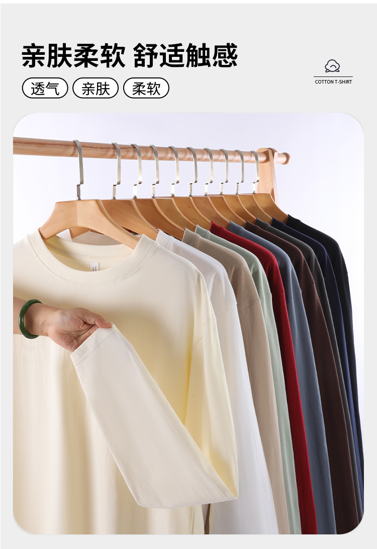 230g 꽉 Sailuo Cotton 티셔츠 남성용 느슨한 무거운베이스 셔츠 크루 넥 어깨 어깨 긴 소매 티셔츠 탑스토어 가기