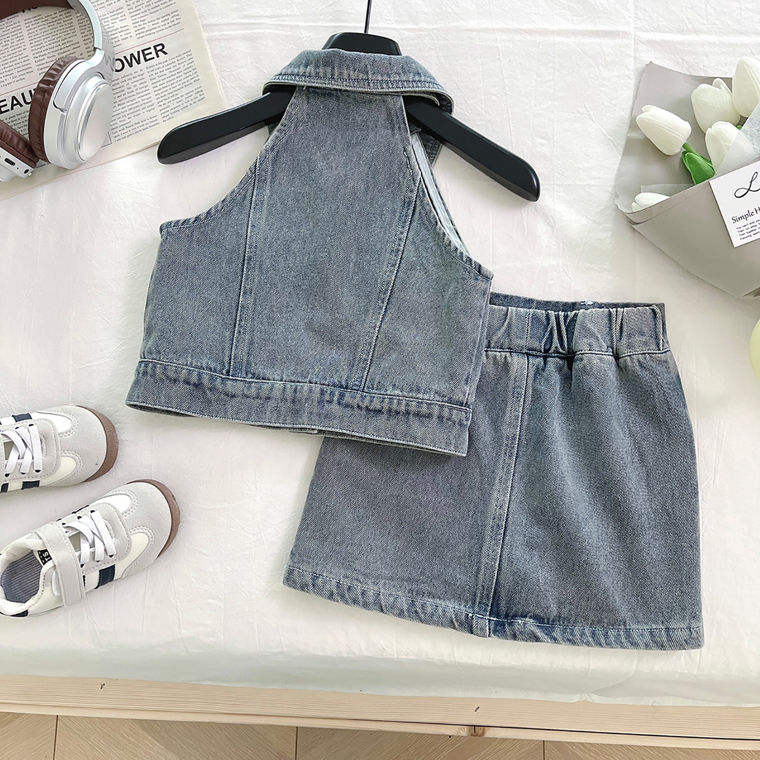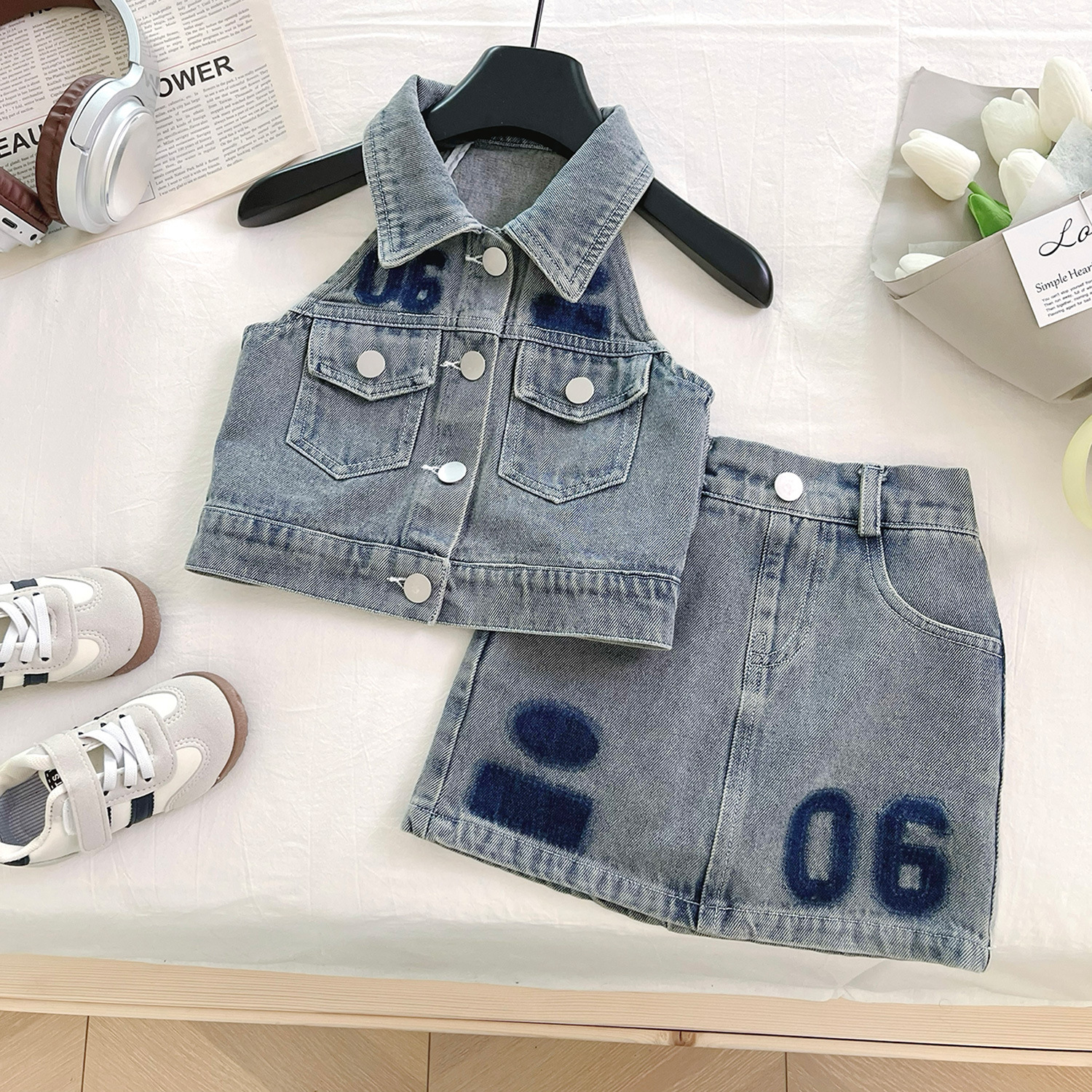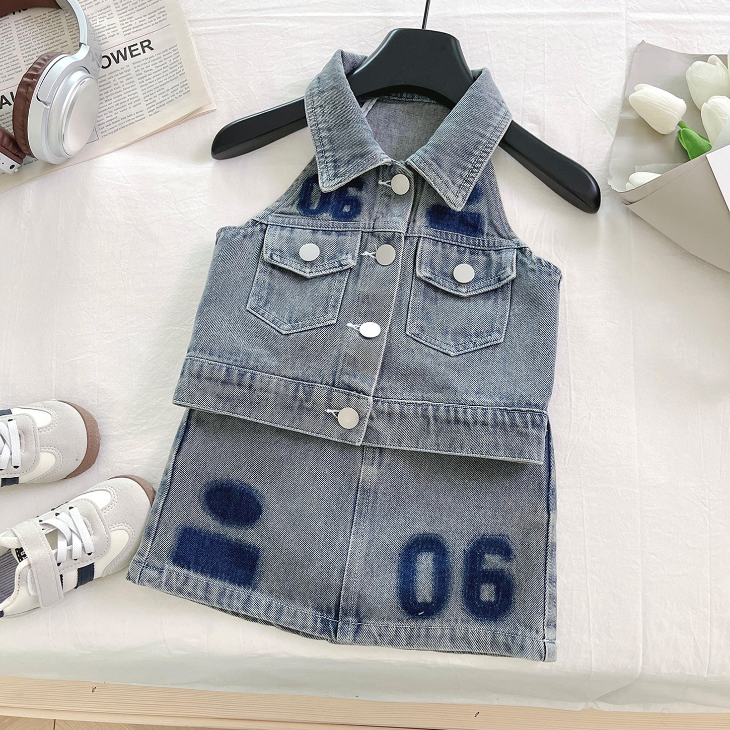 2025 년 여름 소녀 데님 새 아기 한국 어린이 민소매 데님 치마 세트 패션스토어 가기