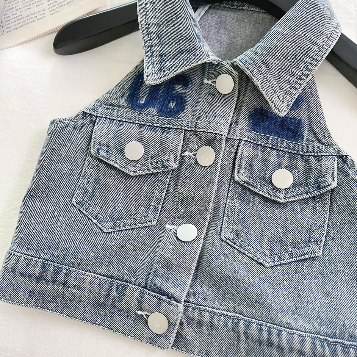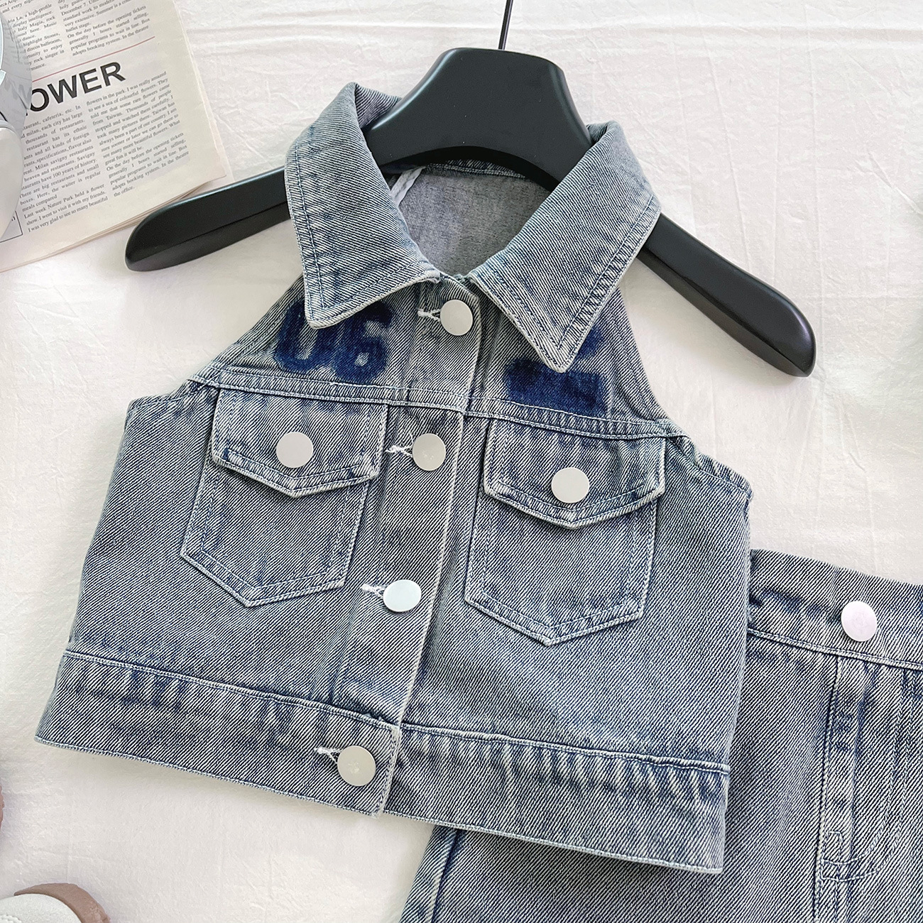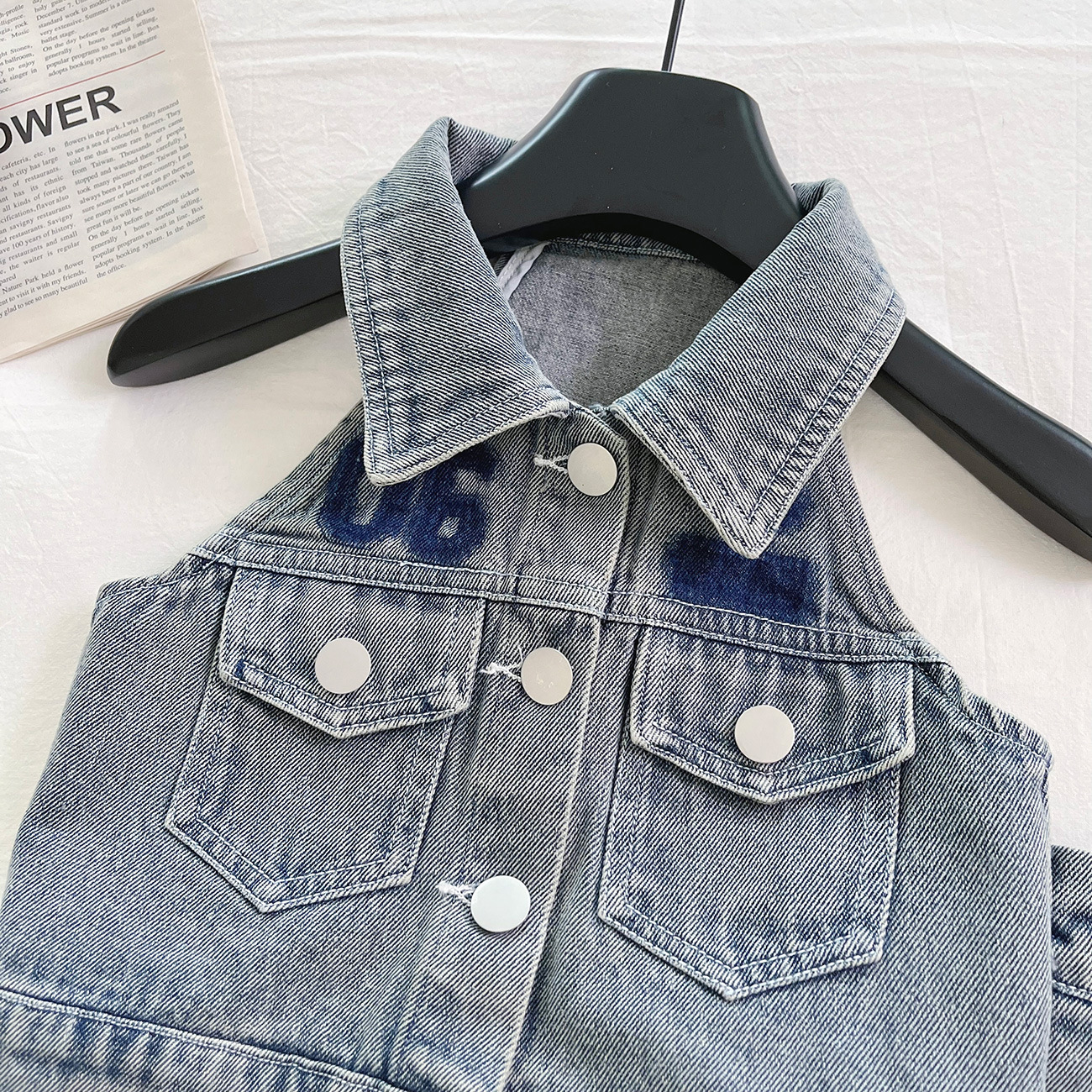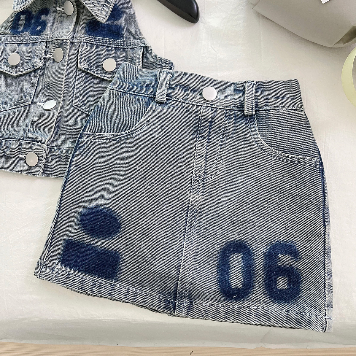 2025 년 여름 소녀 데님 새 아기 한국 어린이 민소매 데님 치마 세트 패션스토어 가기