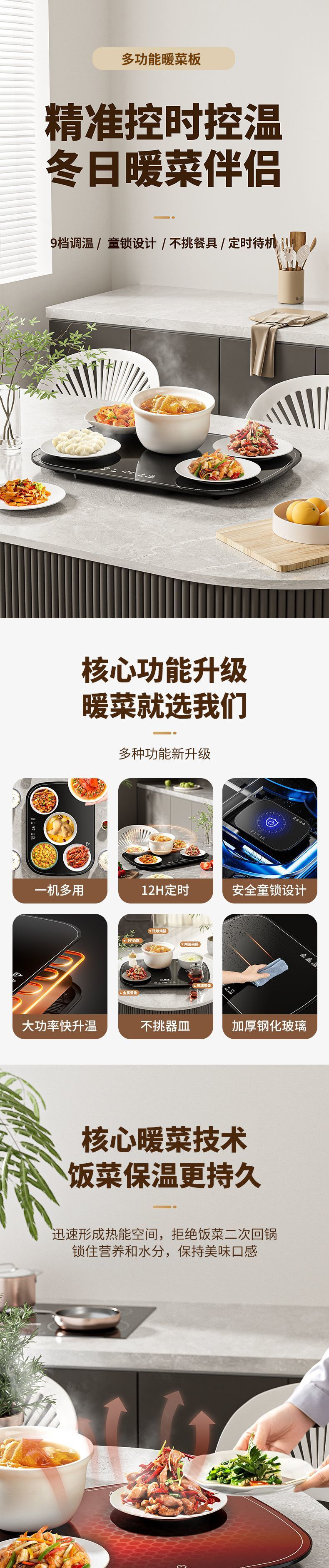 따뜻한 커팅 보드 식품 절연 보드 가정용 다기능 지능형 일정한 온도 가열 보드 뜨거운 커팅 보드 테이블 따뜻한 음식 유물