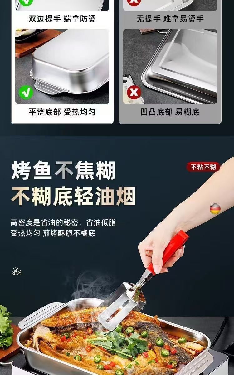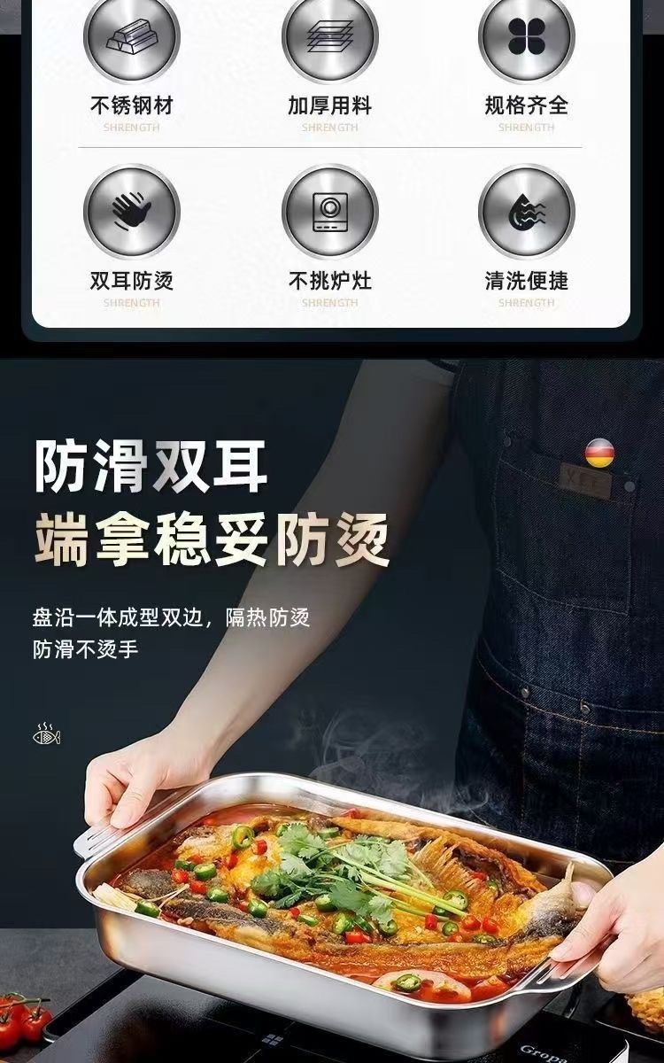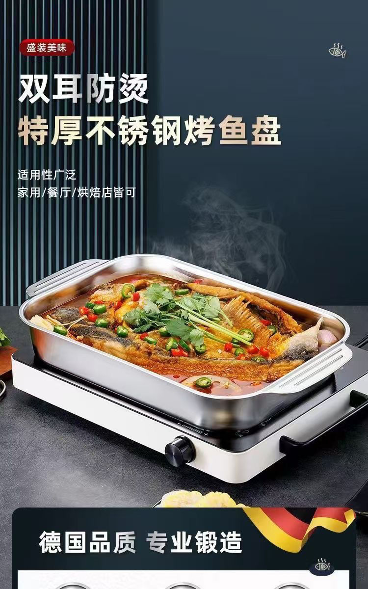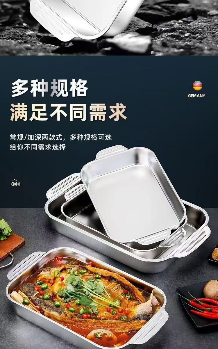 여분의 두꺼운 스테인레스 스틸 식품 학년 구운 생선 접시 안티 스탈 더블 귀 생선 접시 가정용 플랫 바닥 구이 트레이 직사각형스토어 가기