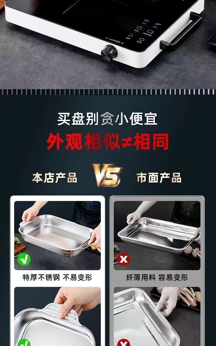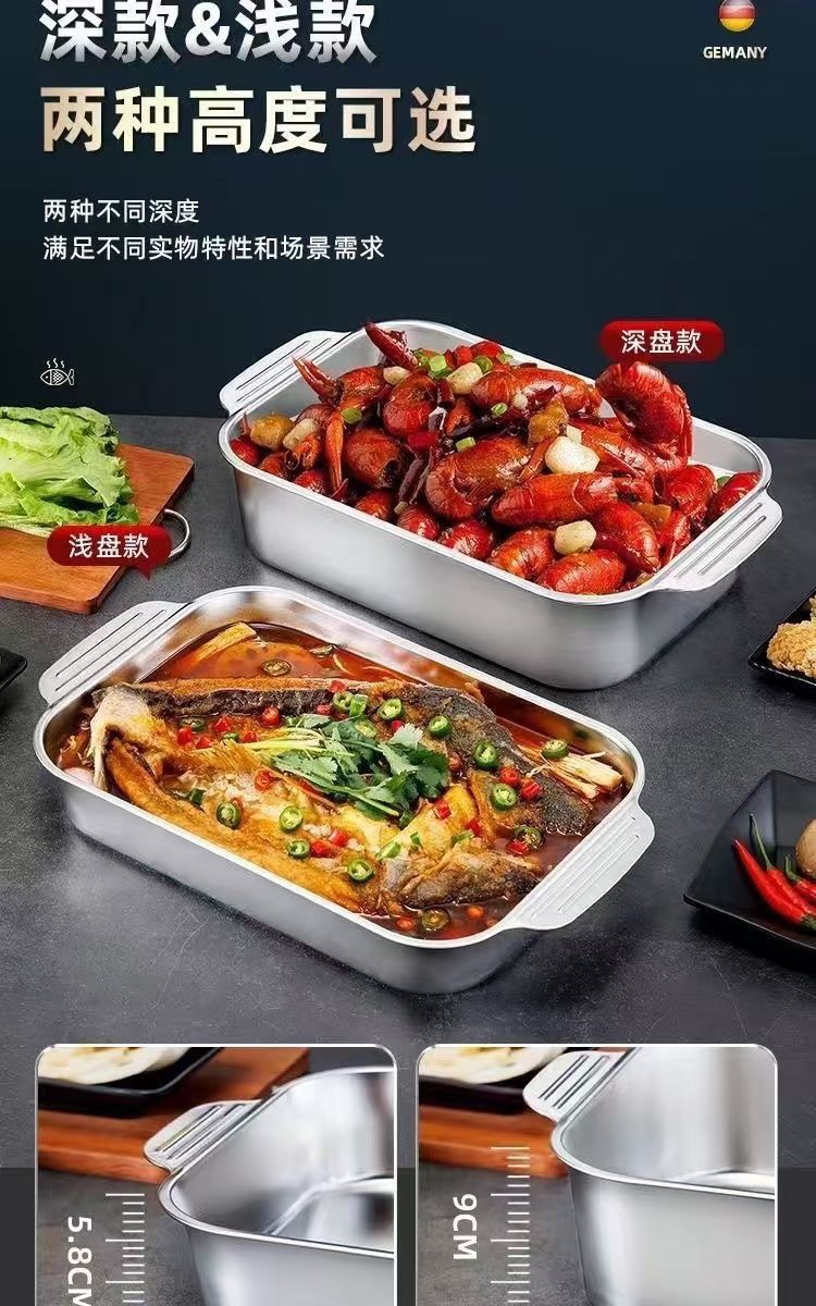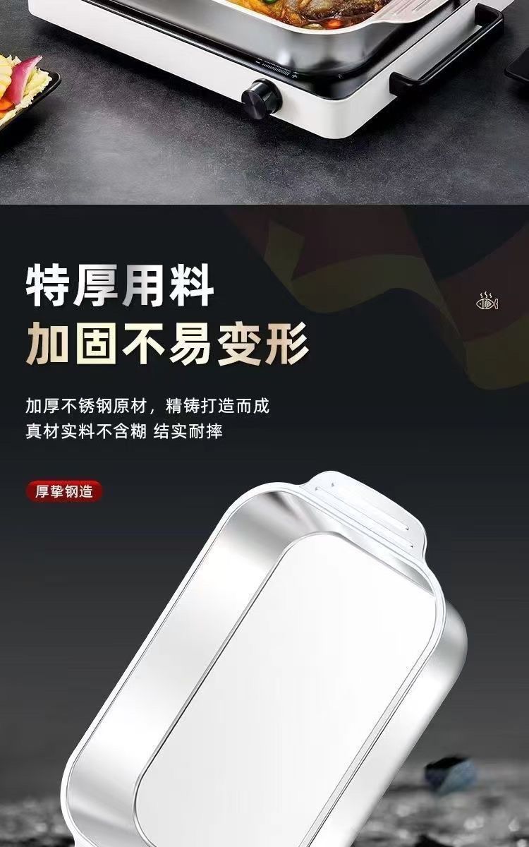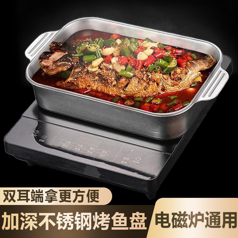 여분의 두꺼운 스테인레스 스틸 식품 학년 구운 생선 접시 안티 스탈 더블 귀 생선 접시 가정용 플랫 바닥 구이 트레이 직사각형스토어 가기