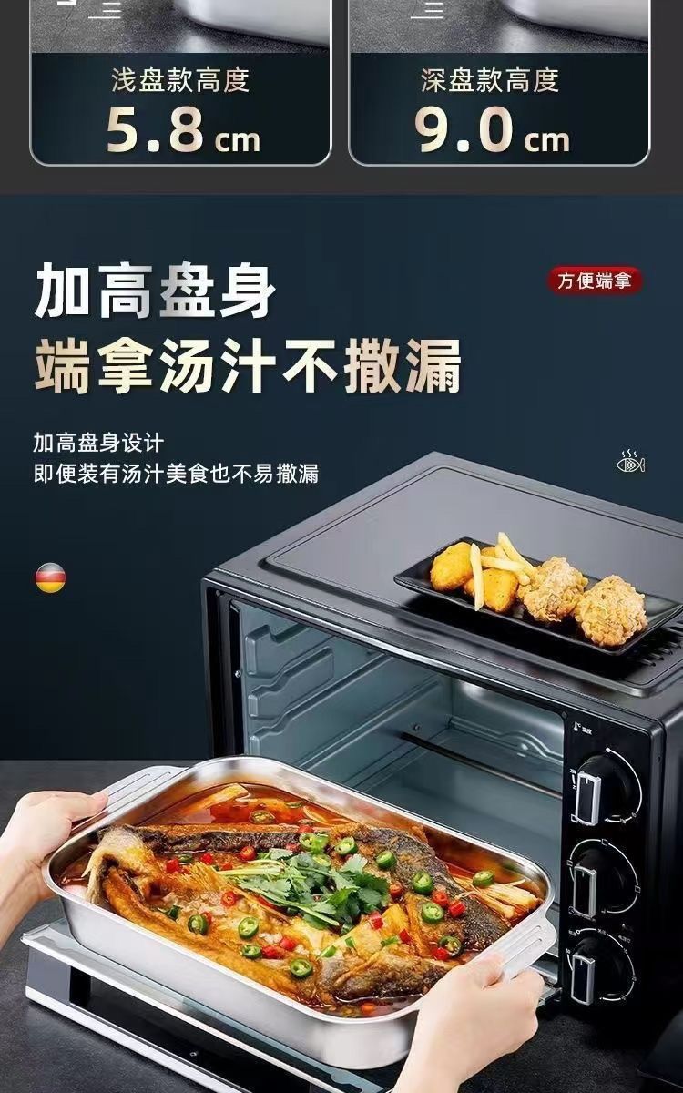 여분의 두꺼운 스테인레스 스틸 식품 학년 구운 생선 접시 안티 스탈 더블 귀 생선 접시 가정용 플랫 바닥 구이 트레이 직사각형