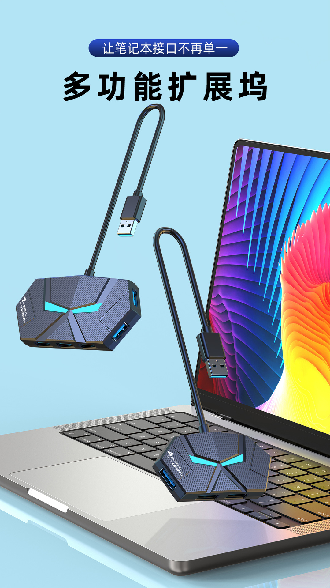 새로운 다채로운 분위기 램프 HUB4 7 3.0 고속 스플리터 확장 노트북 한 드래그 여러 차례스토어 가기