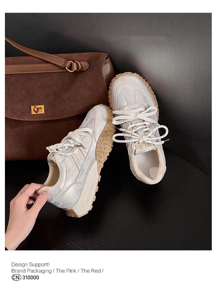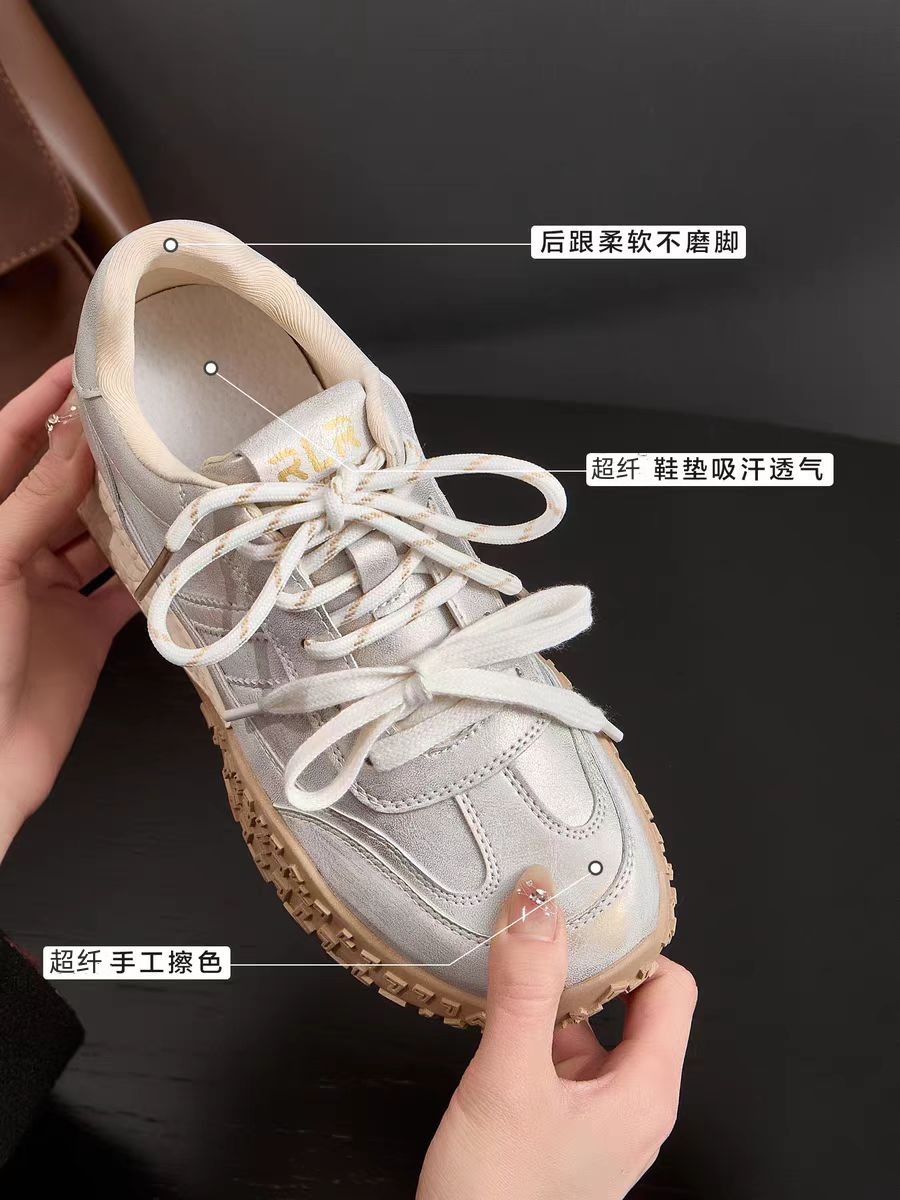 두꺼운 밑창 독일 트레이닝 슈즈 여자 2025 봄 올매치 레트로 올 매치 스포츠 캐주얼 슈즈 디자인 센스 화이트 슈즈스토어 가기