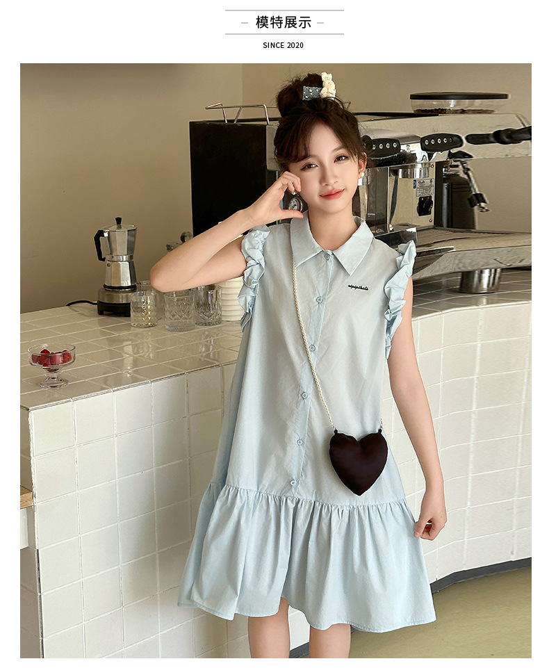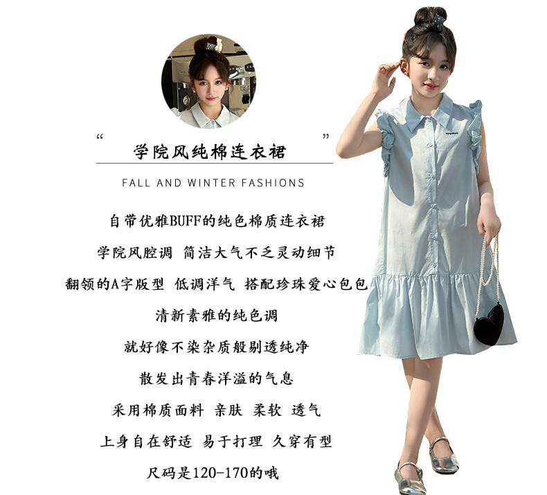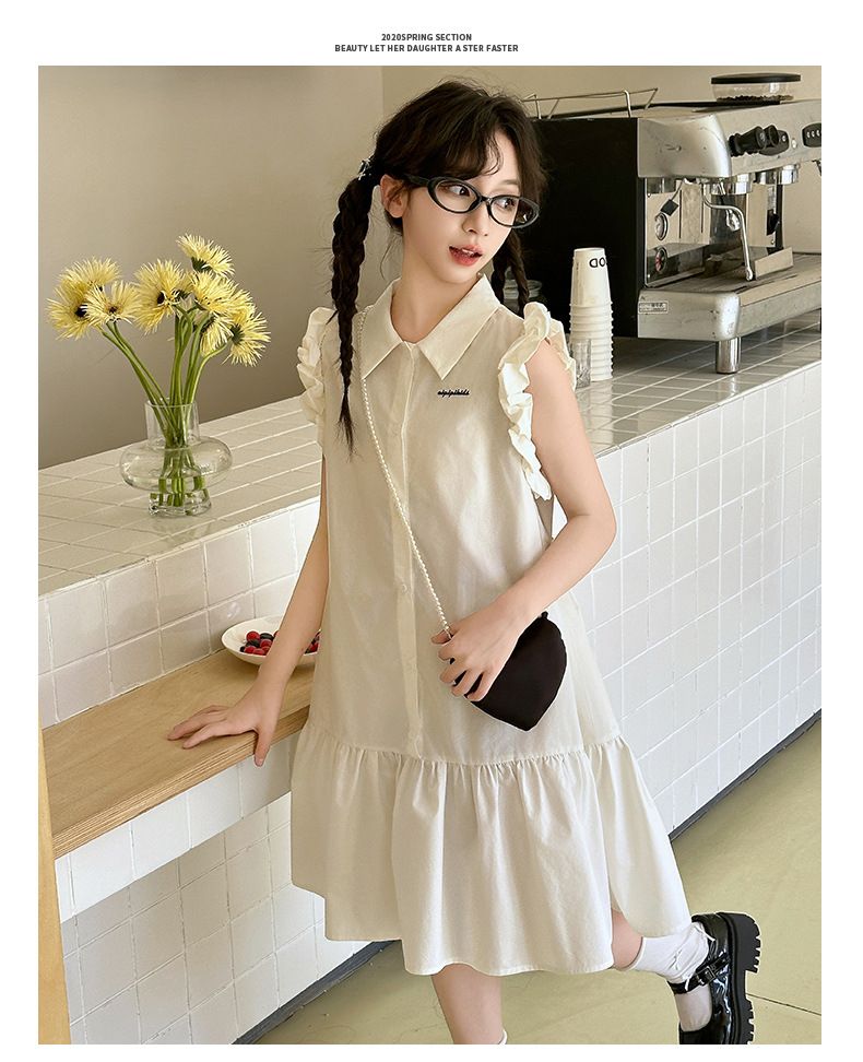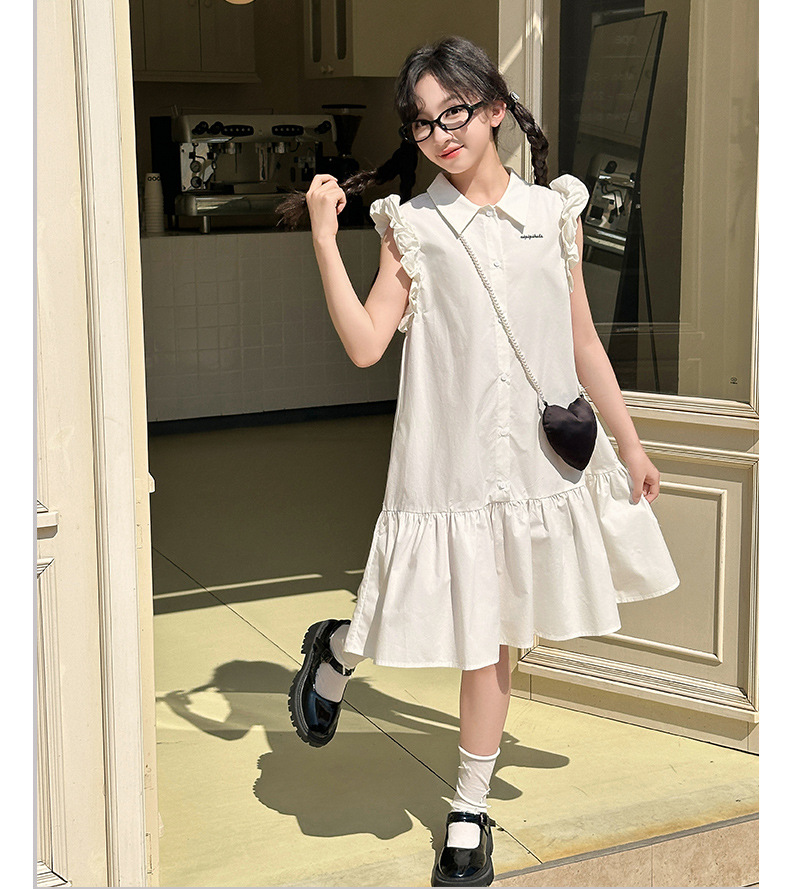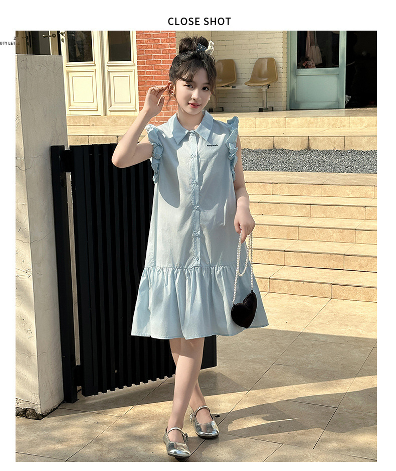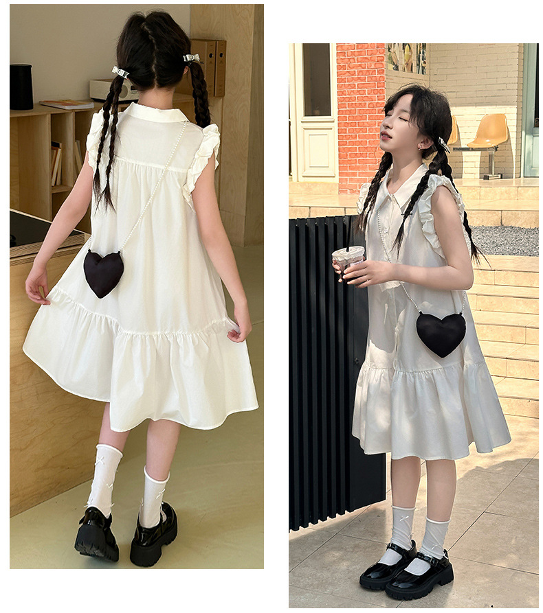 소녀의 큰 소년의 플라잉 슬리브 원피스 2025 여름 새 소녀의 세련된 유행 대학 스타일 셔츠 원피스 공주 원피스 트렌디스토어 가기