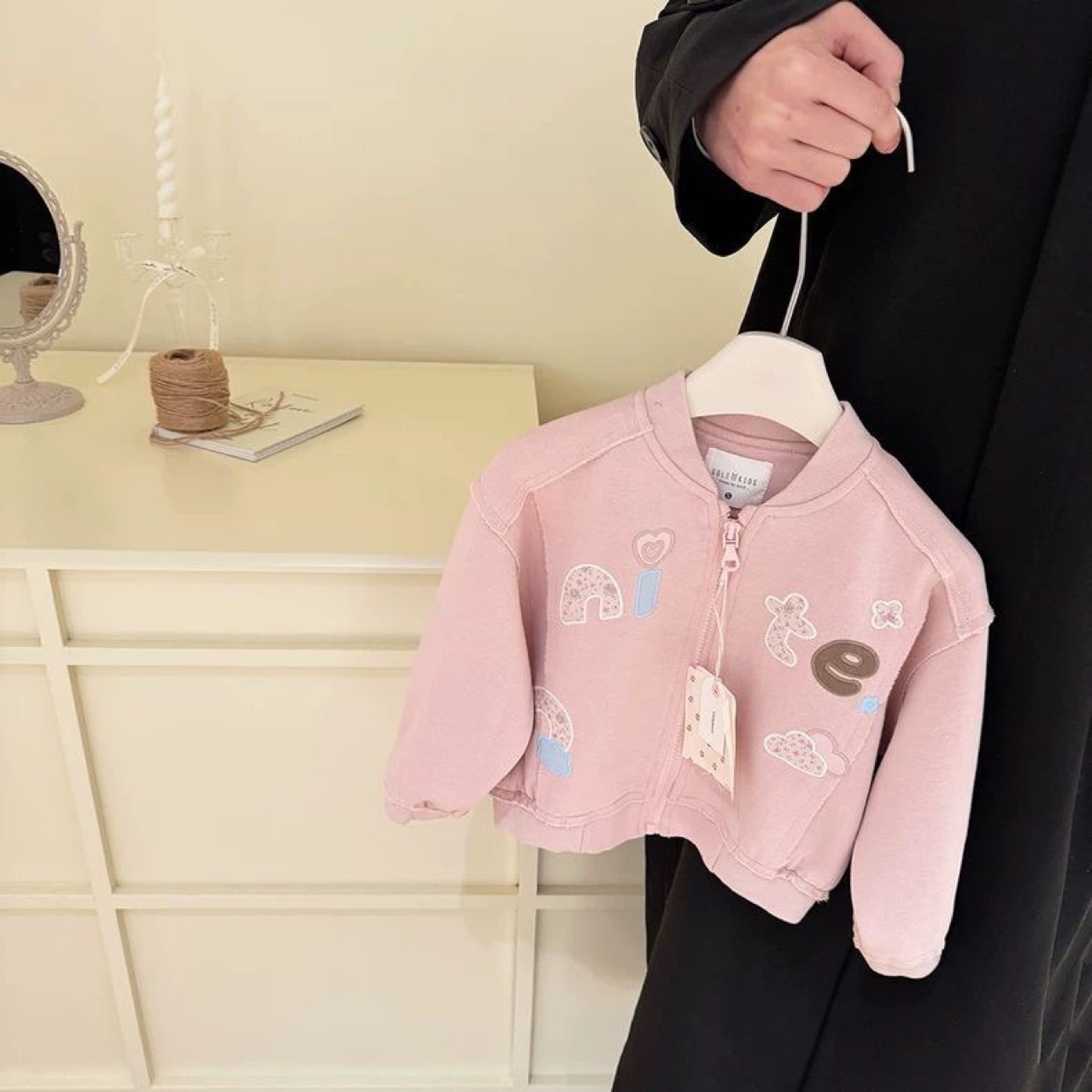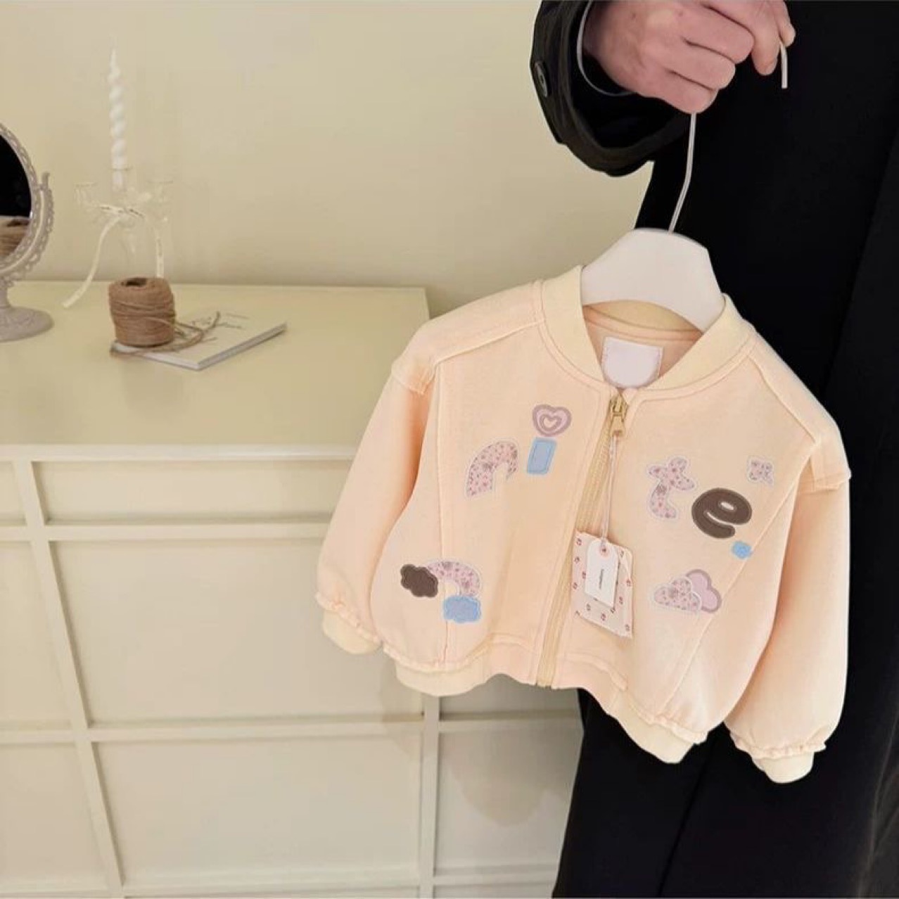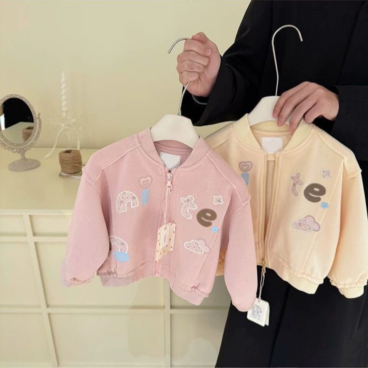 아기 소녀 야구 세트 자켓 최고 소녀 봄 2025 새로운 아기 소녀 어린이 만화 자수 편지 재킷스토어 가기