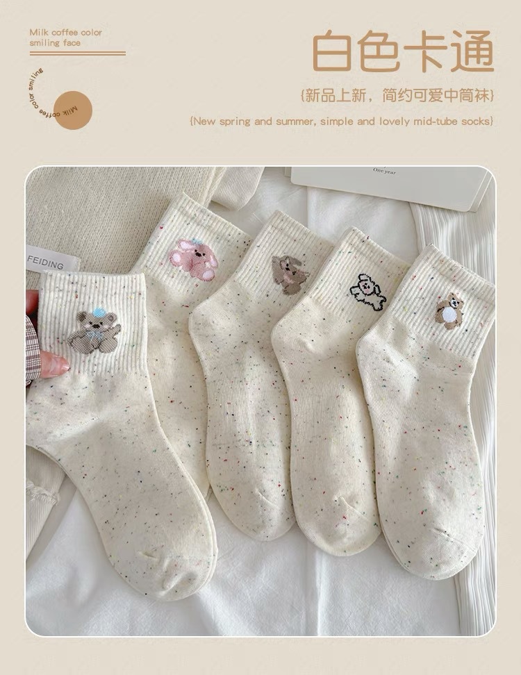 여성용 양말 봄과 가을 아이디어 원사 동물 만화 여성용 종아리 양말 일본 스포츠 양말 작은 흰색 양말 도매스토어 가기
