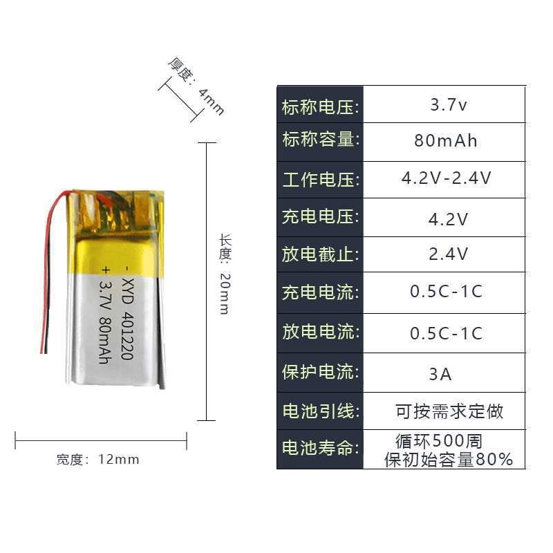 배터리 401220 폴리머 리튬 배터리 80mah 삼원 리튬 배터리 소형 리튬 이온 충전지 3.7V