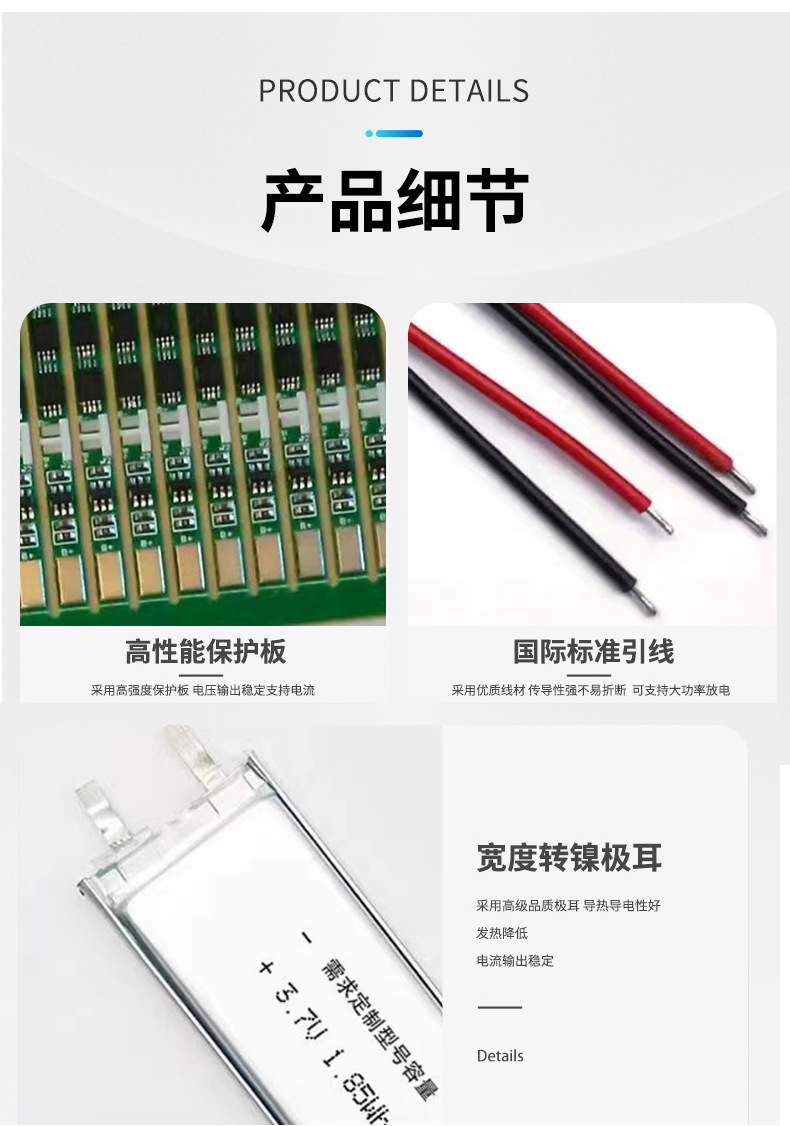 • 401220-80mAh 배터리 셀과 보호 보드 콘센트