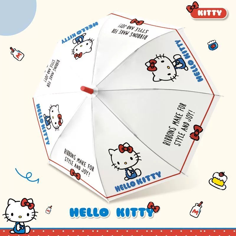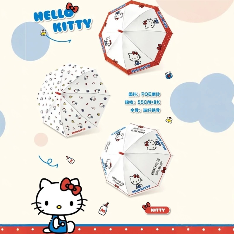정품 공인 산리오 kt 고양이 여성 높은 색상 가치 프로스트 투명 긴 손잡이 우산 귀여운 헬로 키티 우산