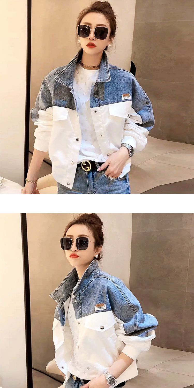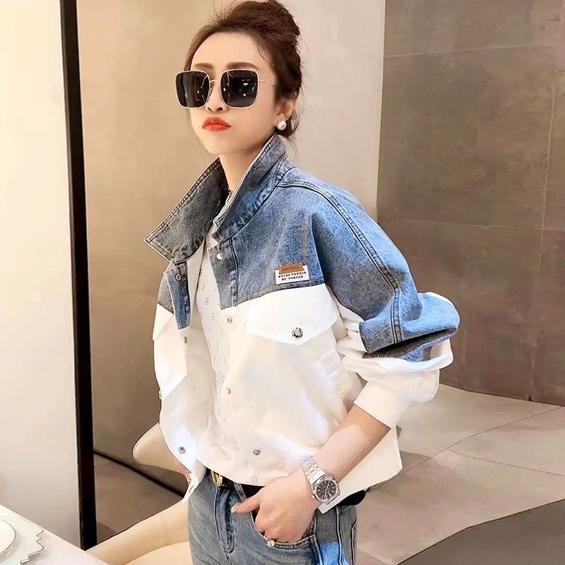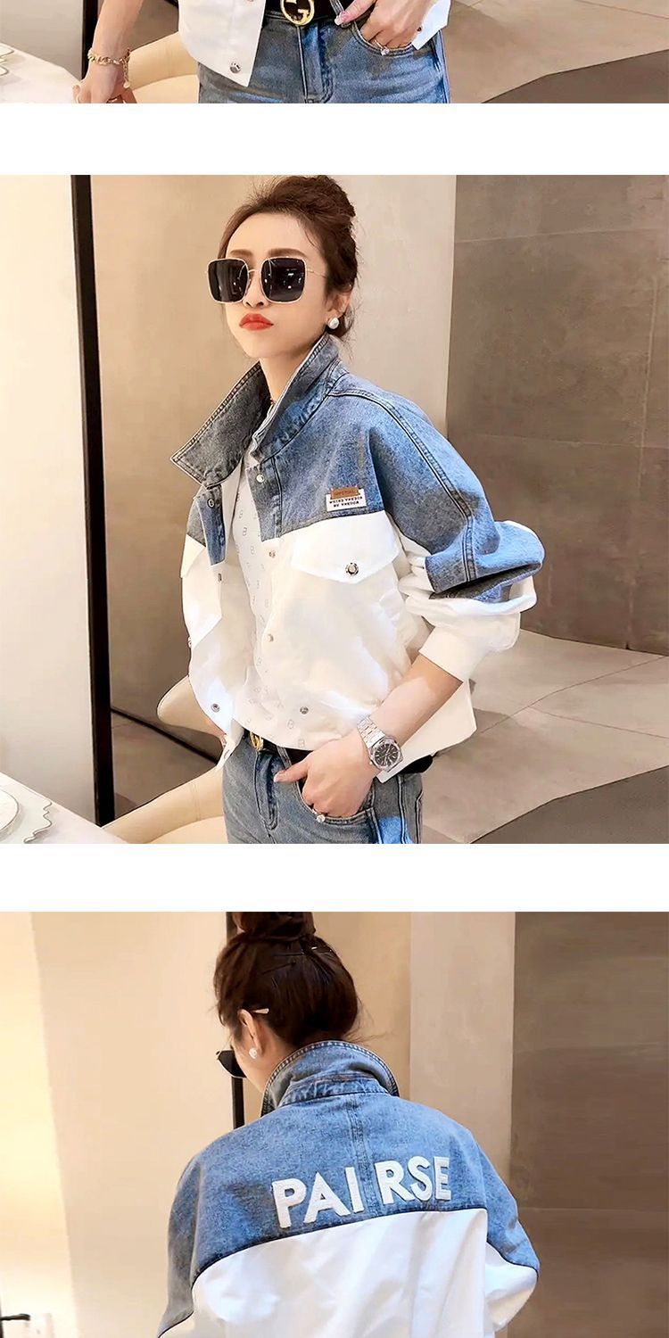 여성 코트 데님 소리 폭발 흔들어 2025 봄과 가을 새로운 스티칭 자수 콘트라스트 청바지스토어 가기