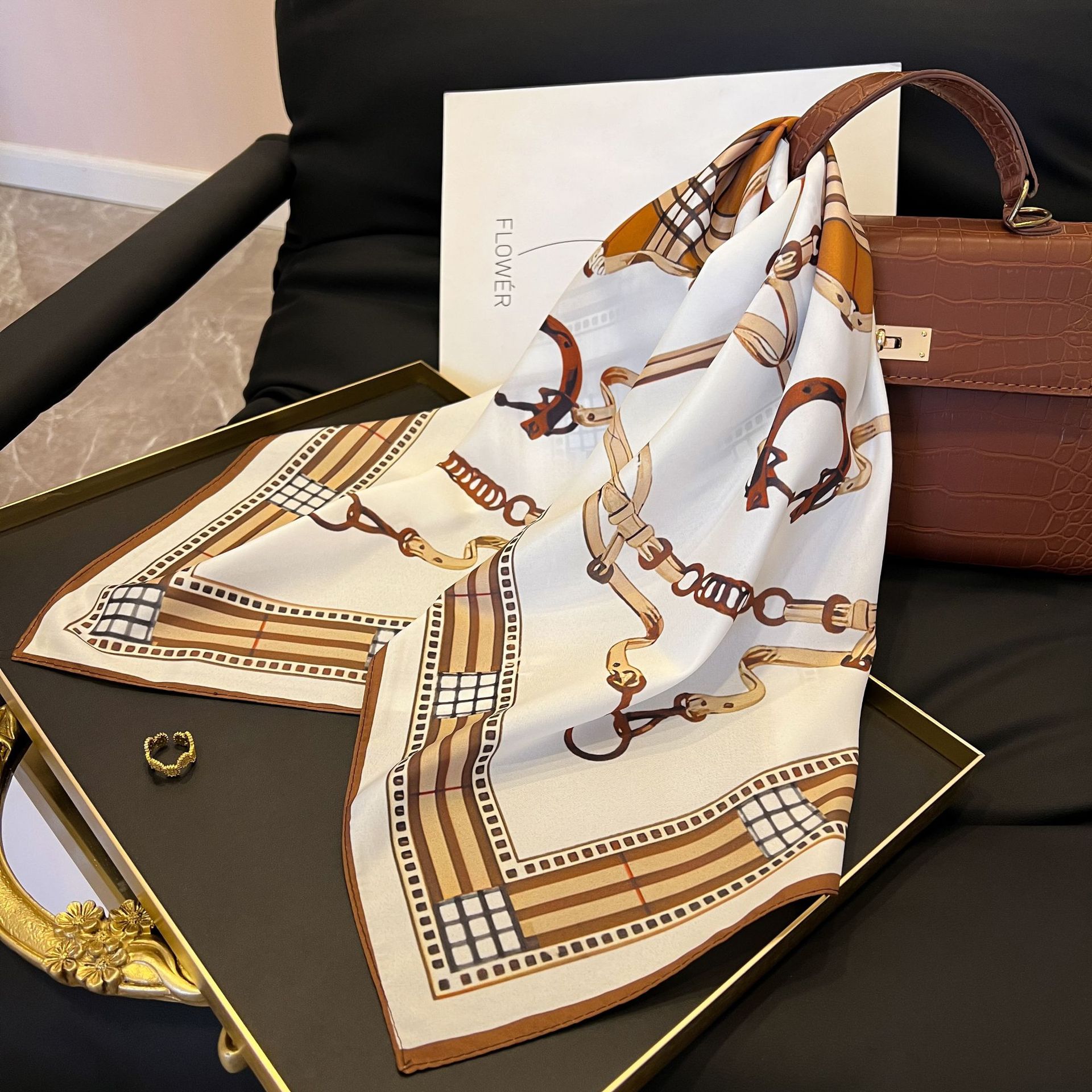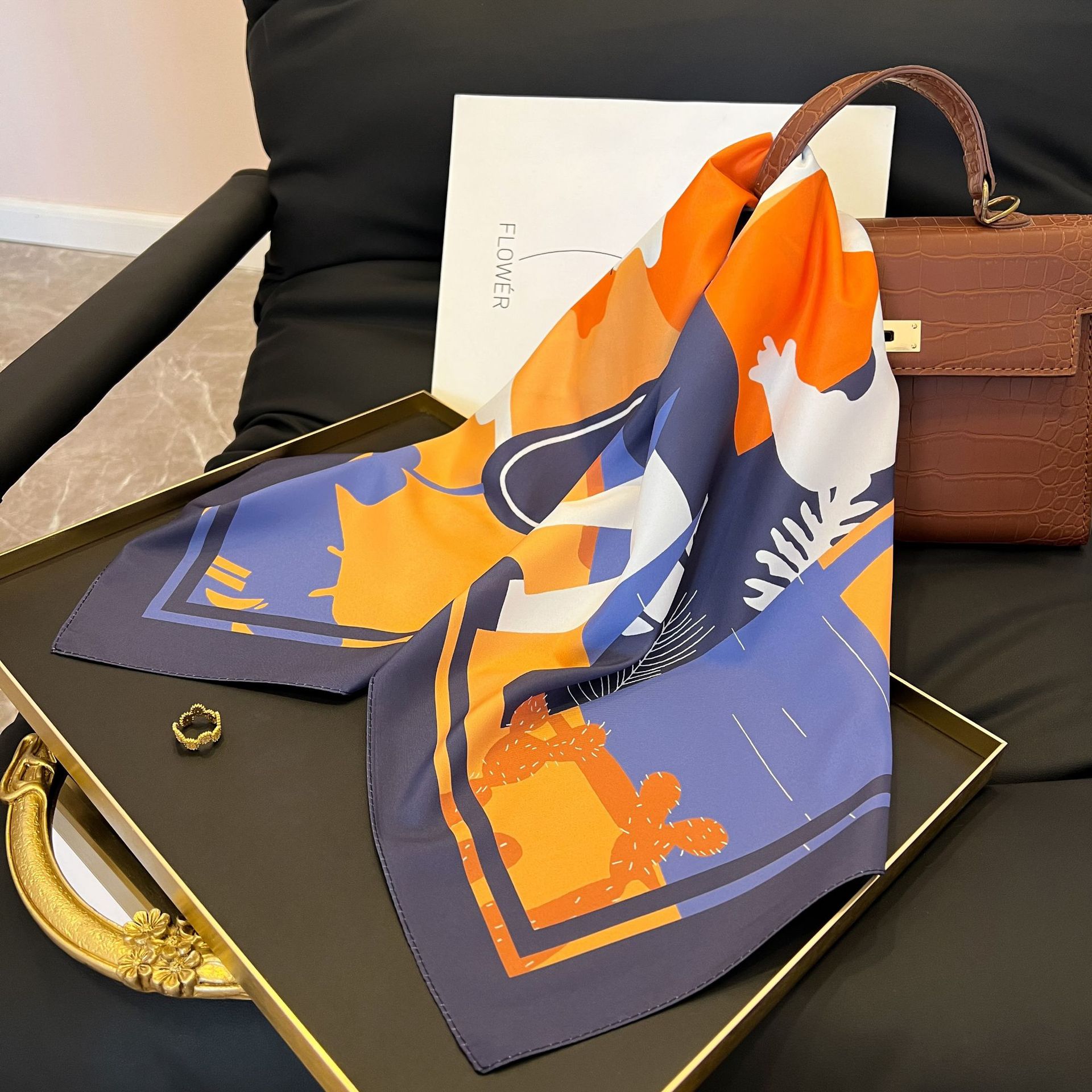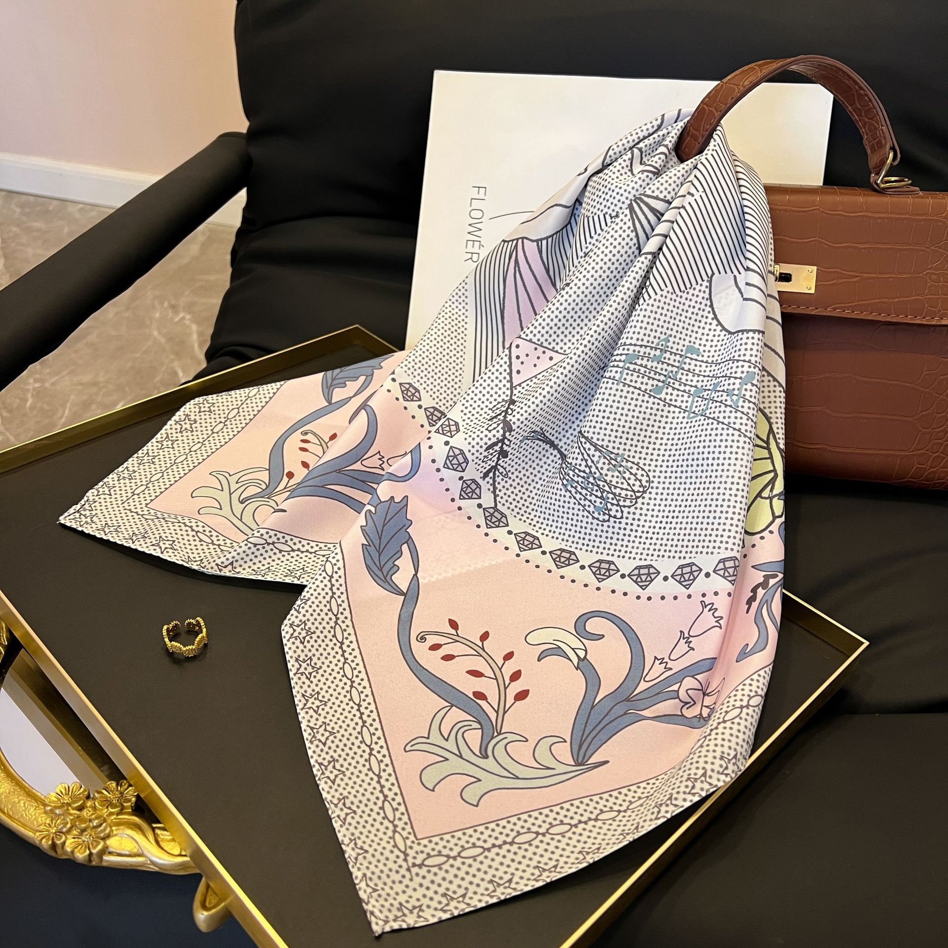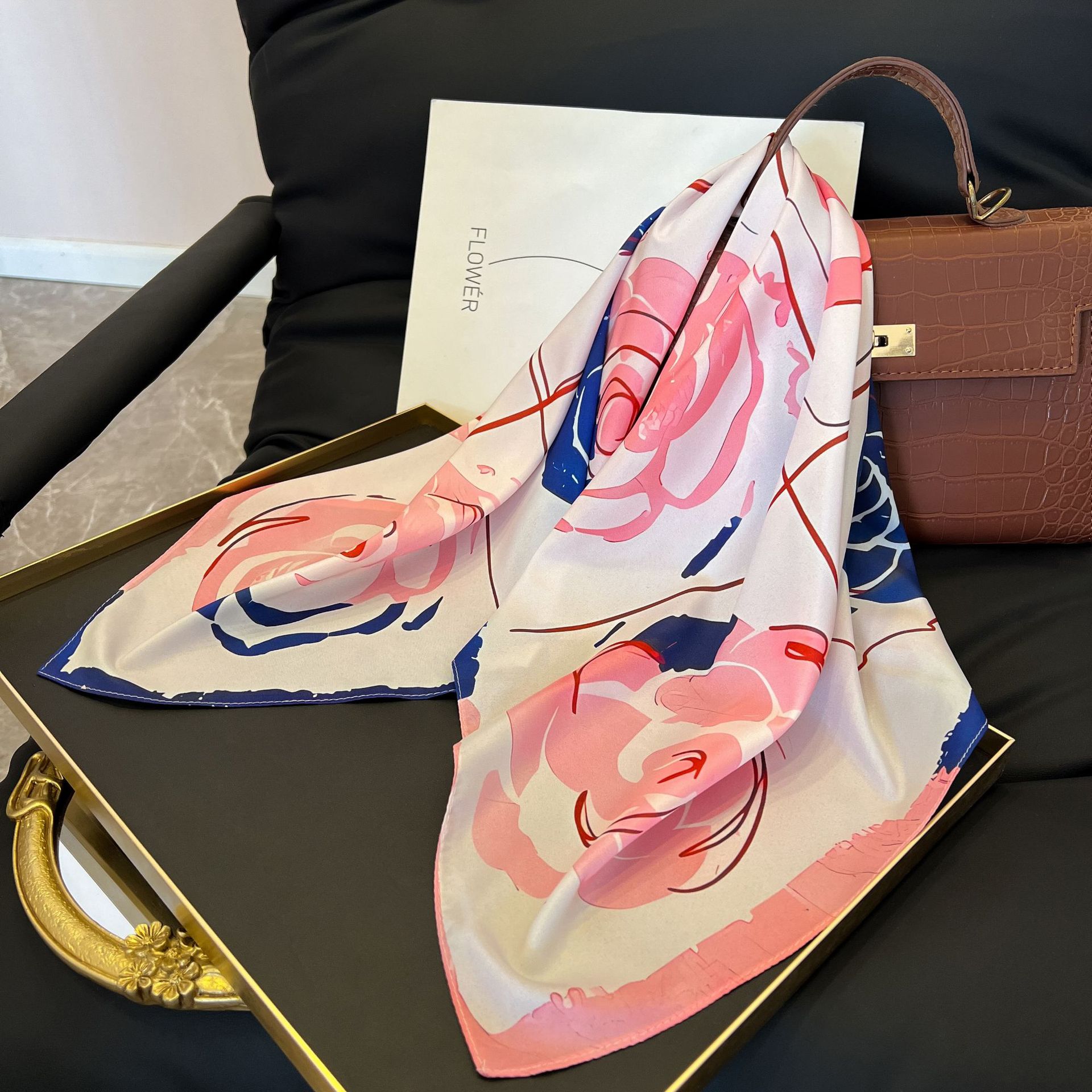 새로운 스타일 실크 스카프 패션 올 매치 가을 선물 장식 작은 광장 스카프 하이 엔드 라이트 럭셔리 스카프스토어 가기