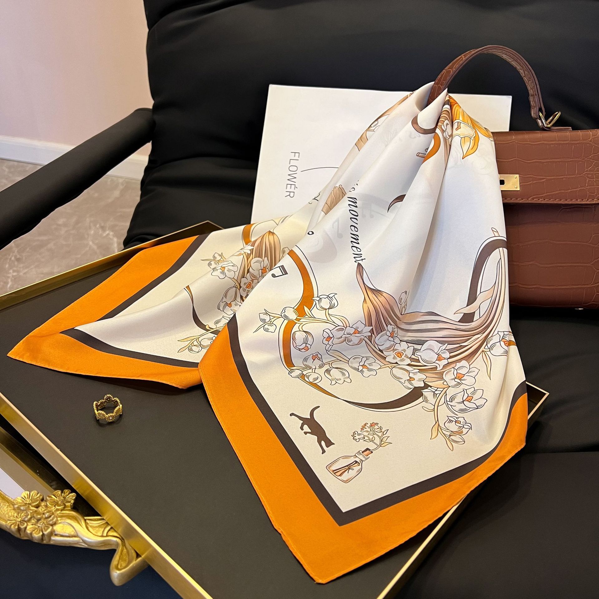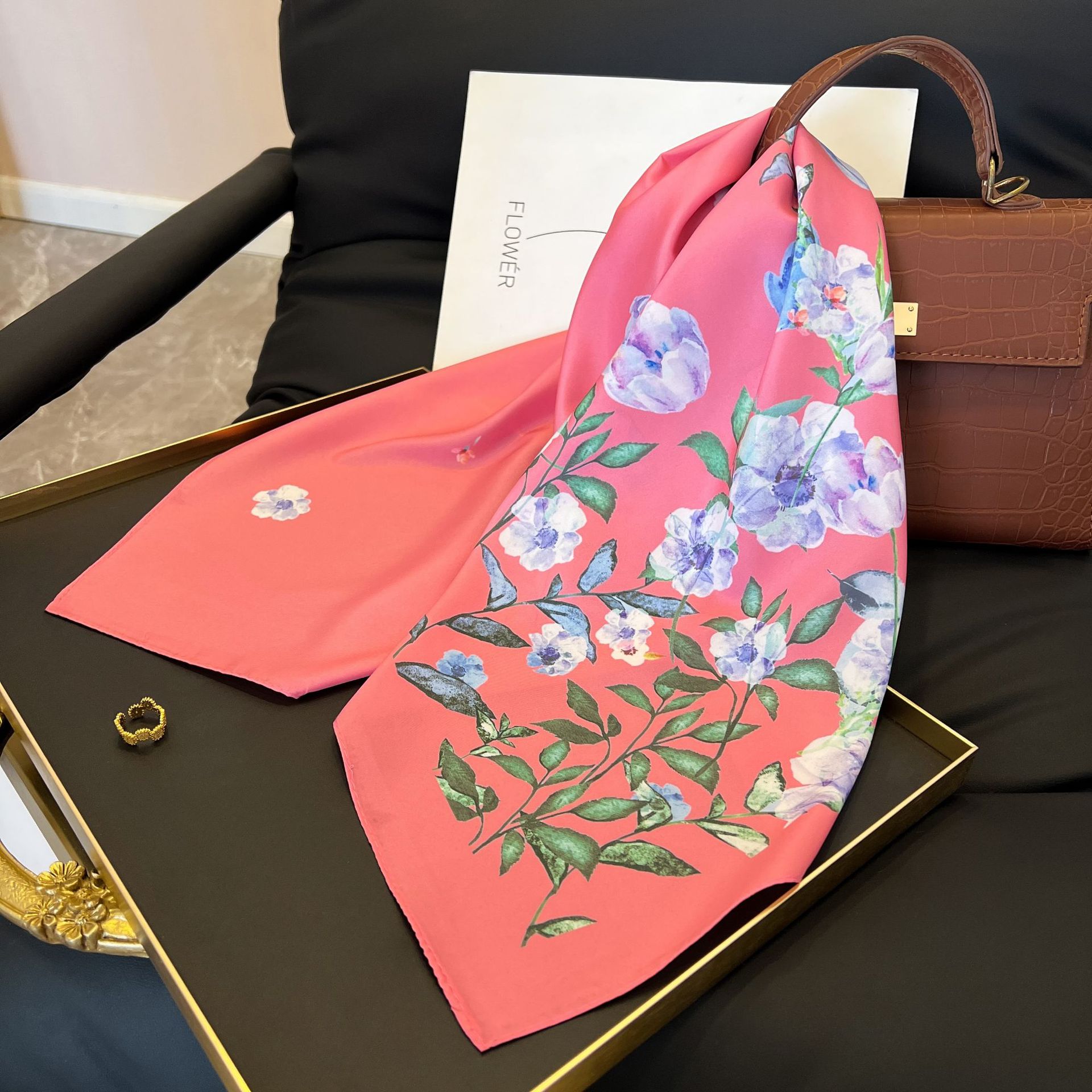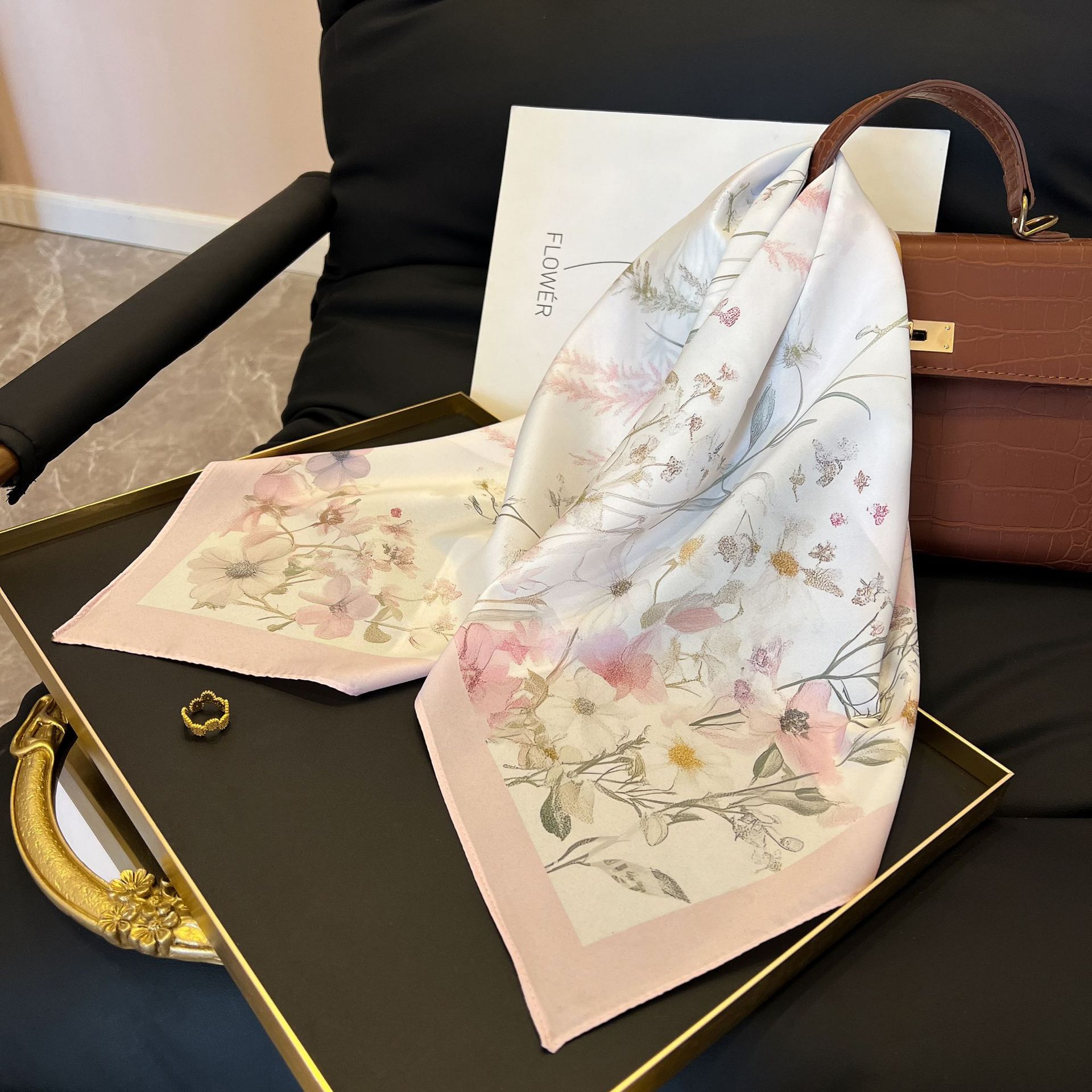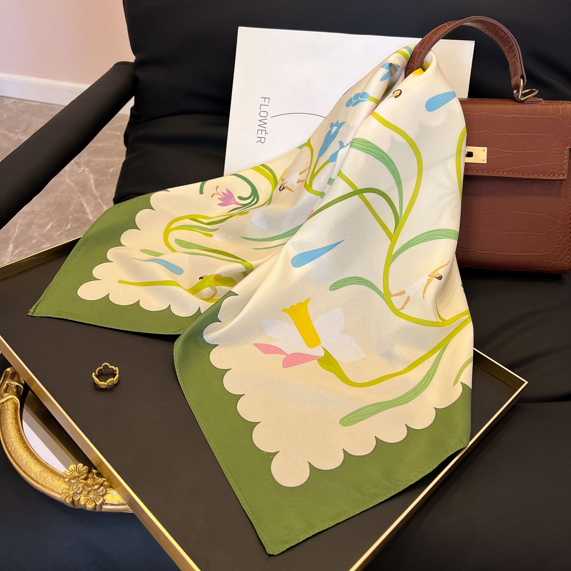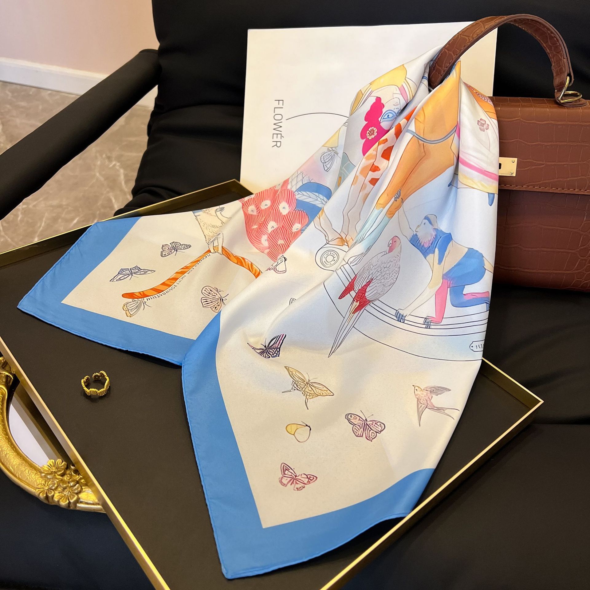 새로운 스타일 실크 스카프 패션 올 매치 가을 선물 장식 작은 광장 스카프 하이 엔드 라이트 럭셔리 스카프스토어 가기