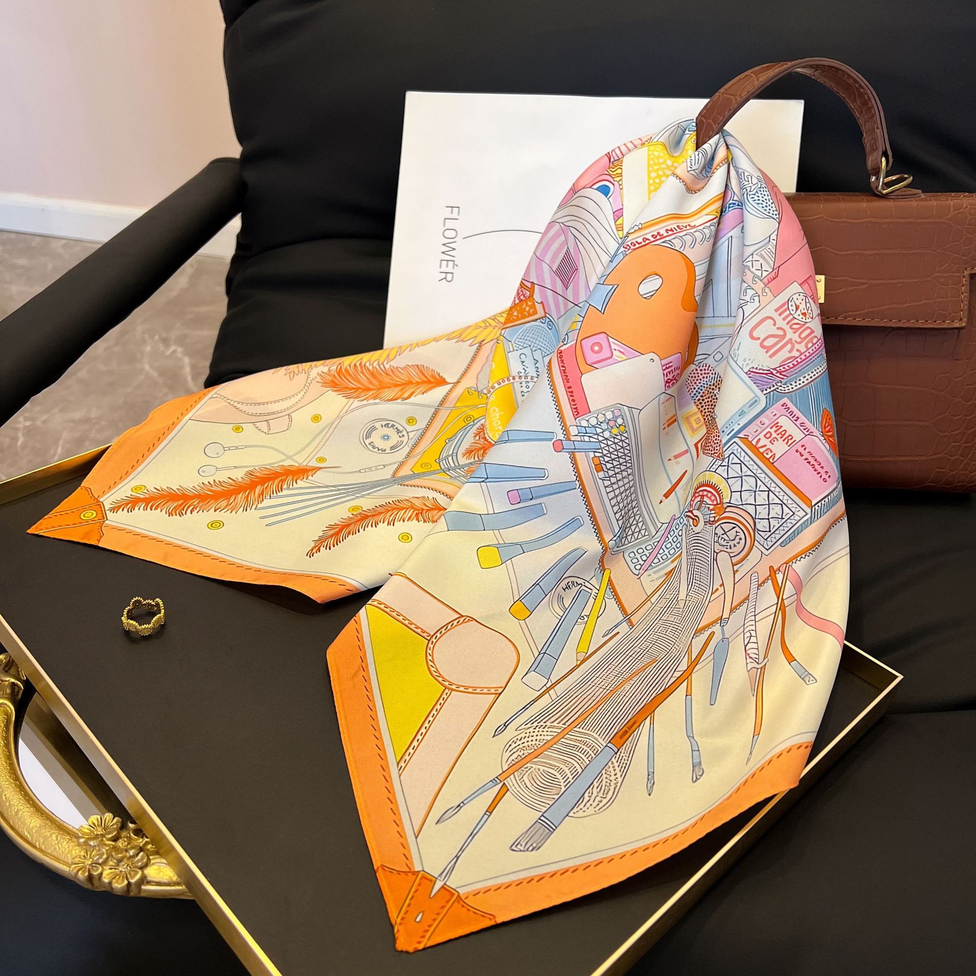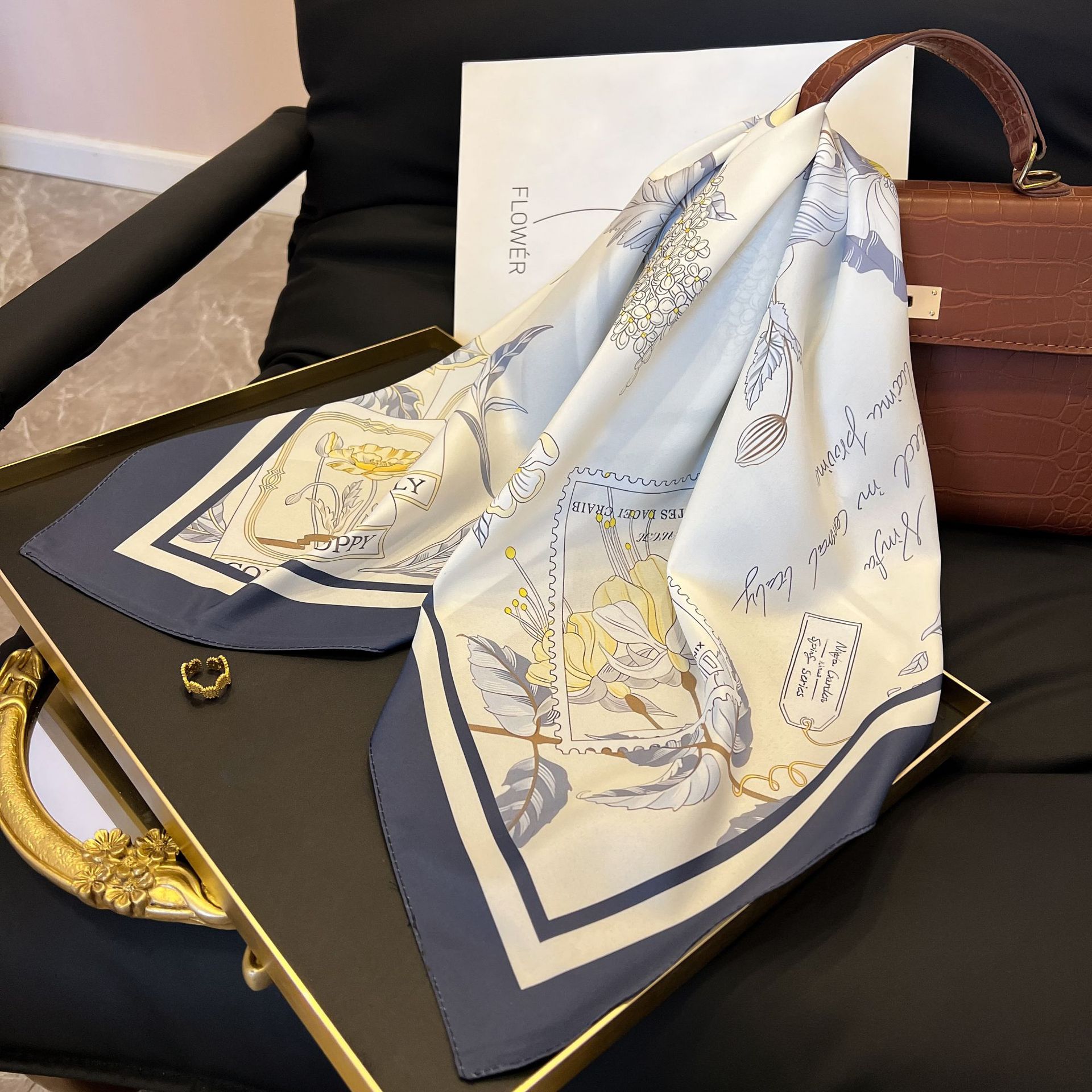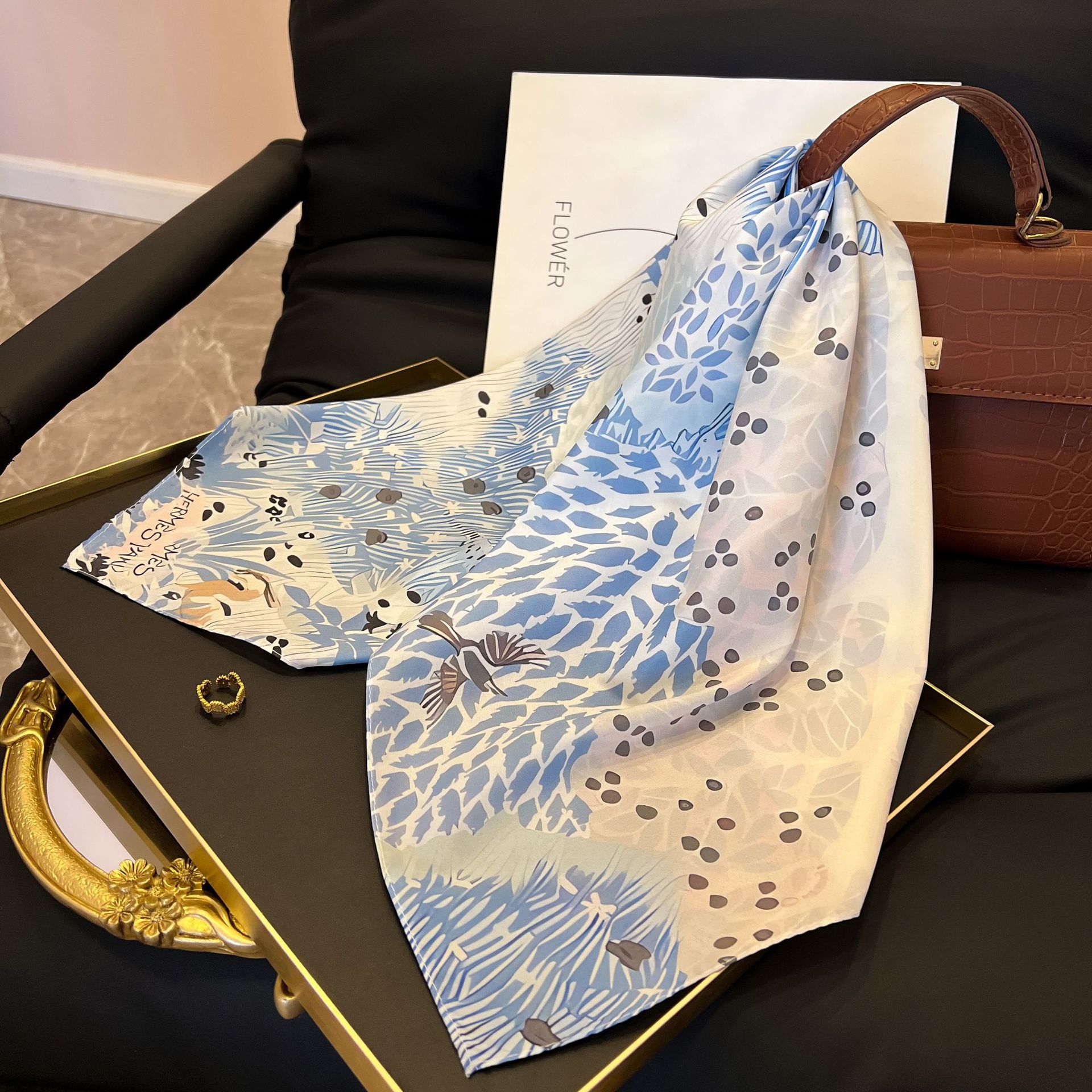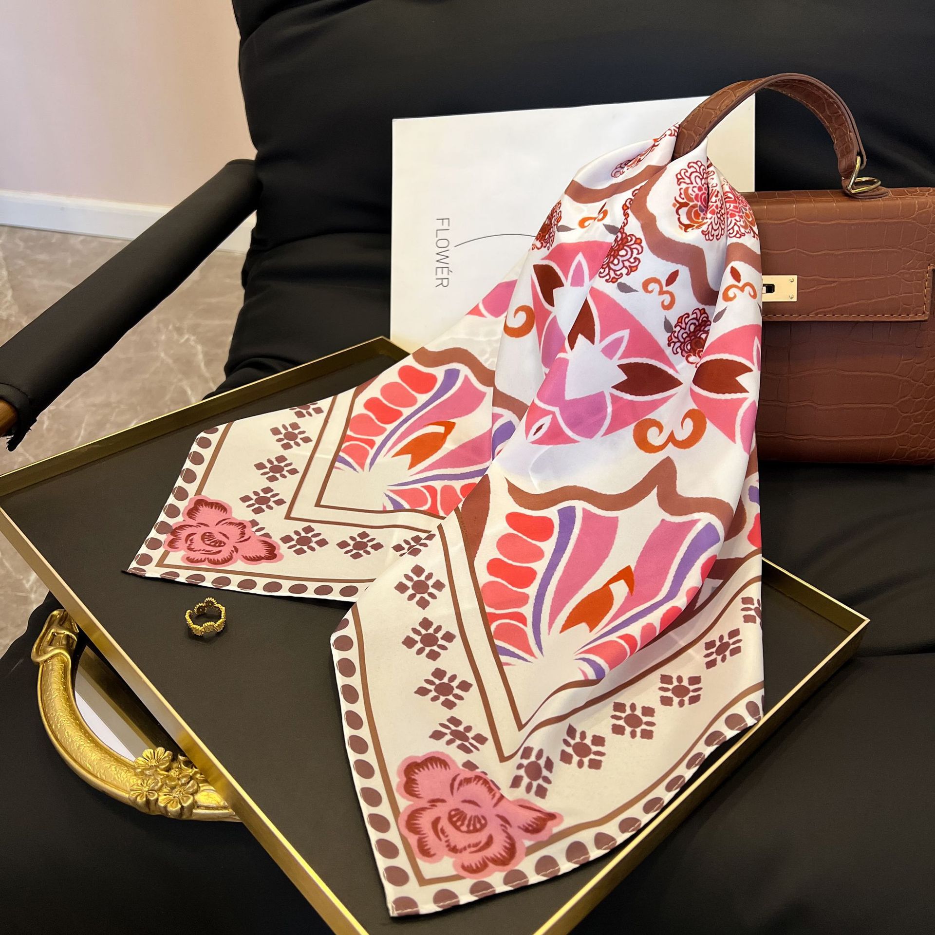 새로운 스타일 실크 스카프 패션 올 매치 가을 선물 장식 작은 광장 스카프 하이 엔드 라이트 럭셔리 스카프스토어 가기