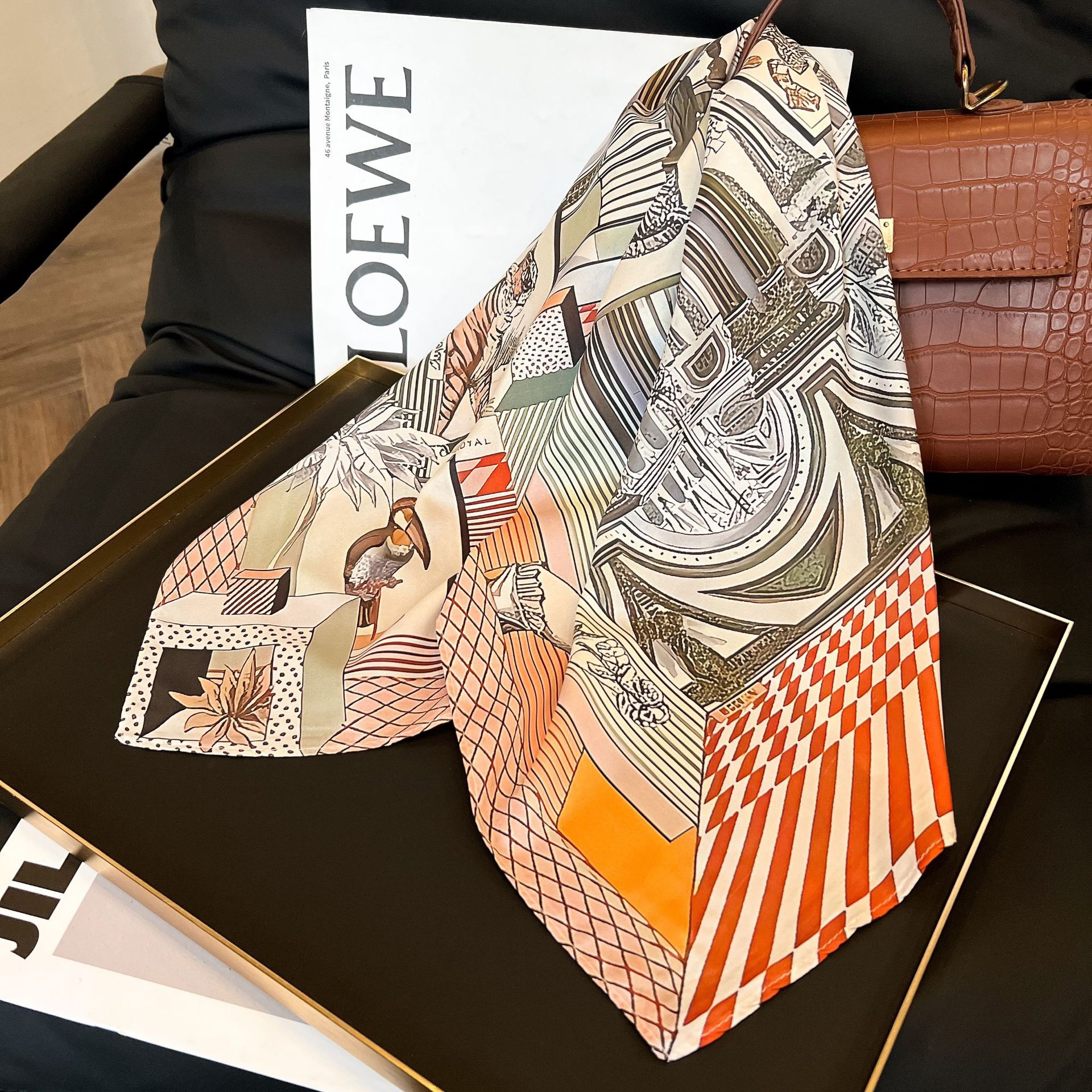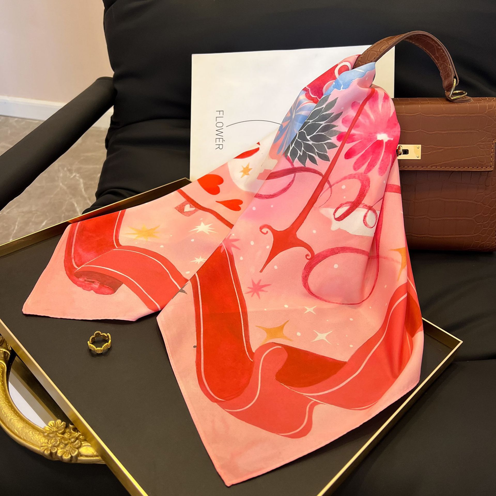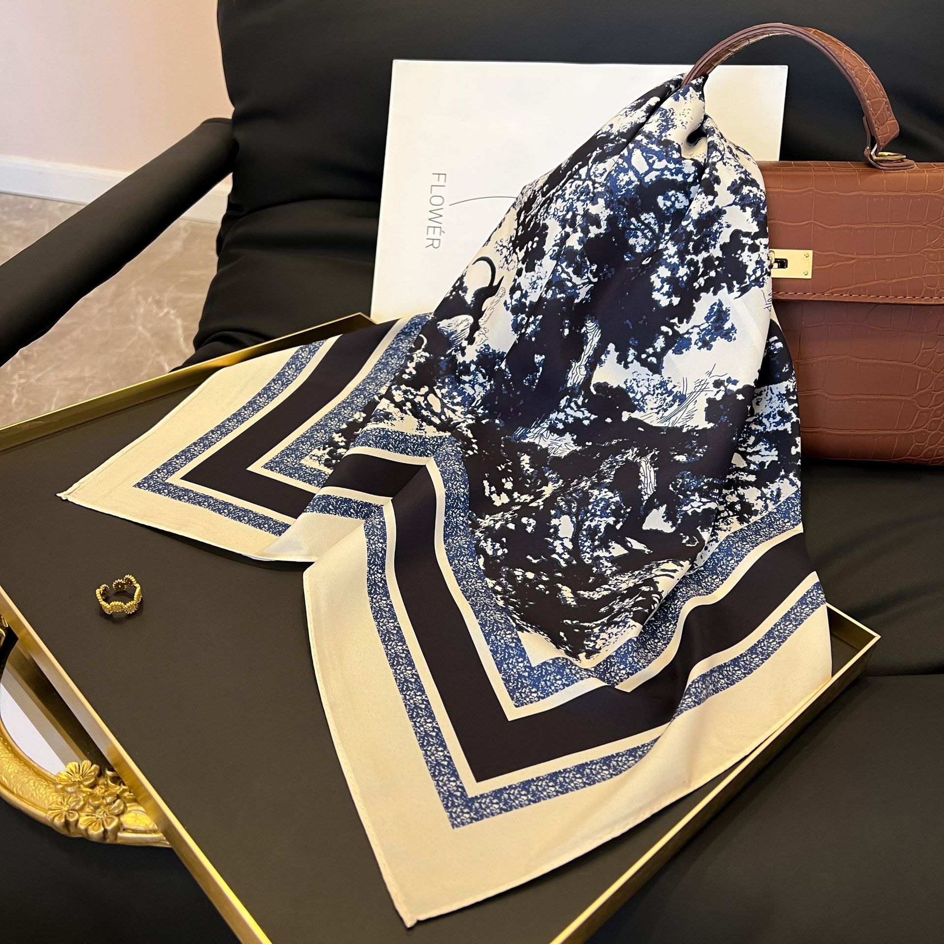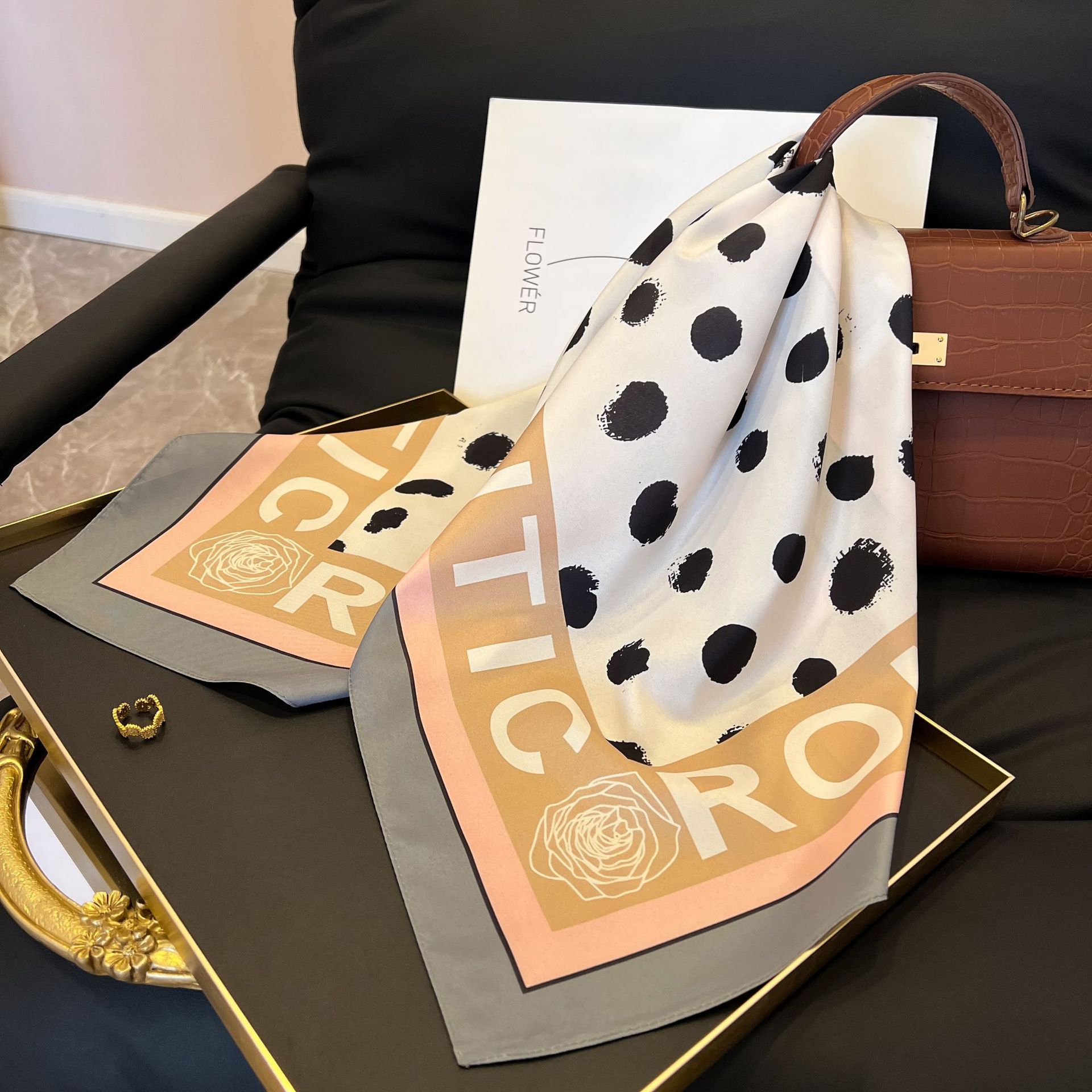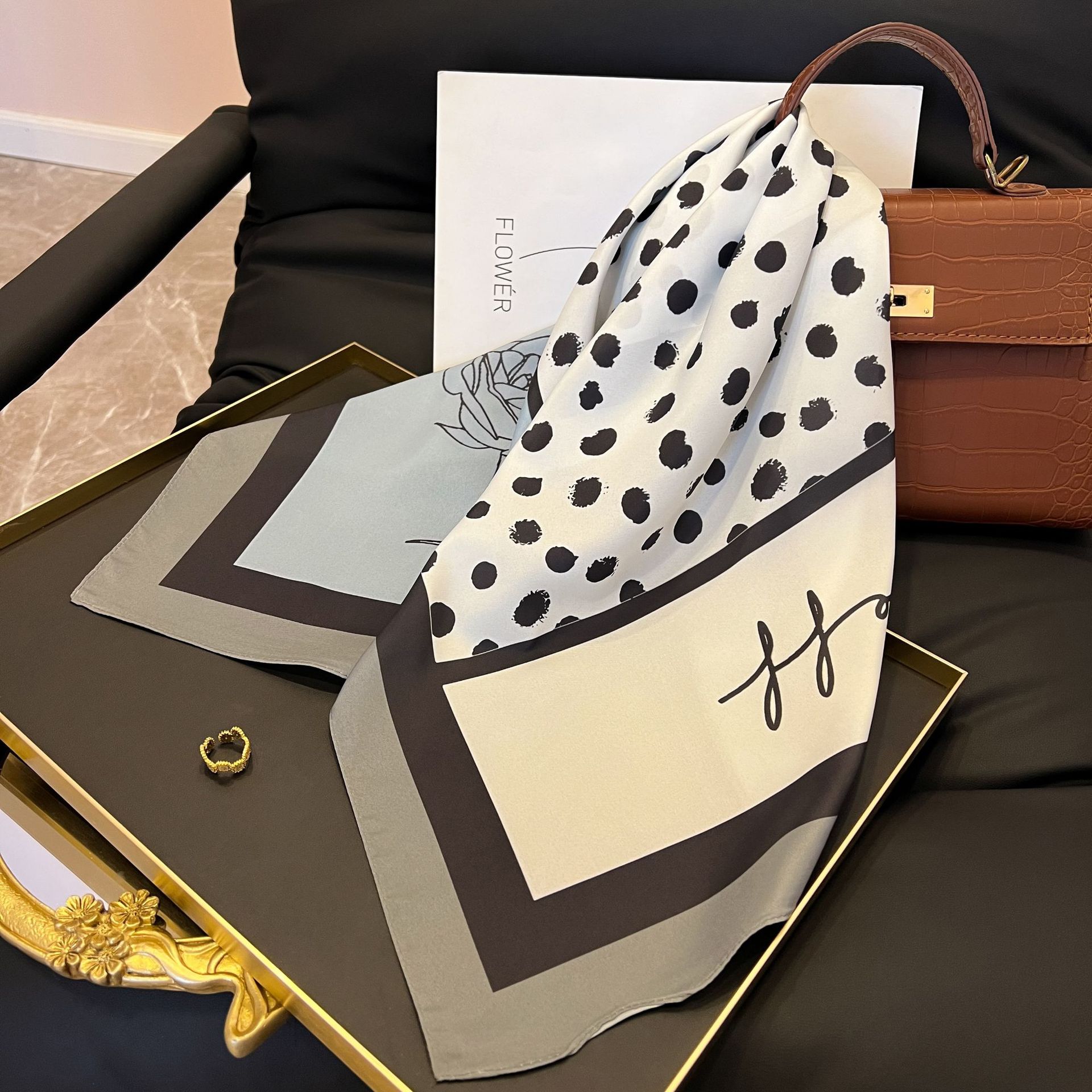 새로운 스타일 실크 스카프 패션 올 매치 가을 선물 장식 작은 광장 스카프 하이 엔드 라이트 럭셔리 스카프스토어 가기