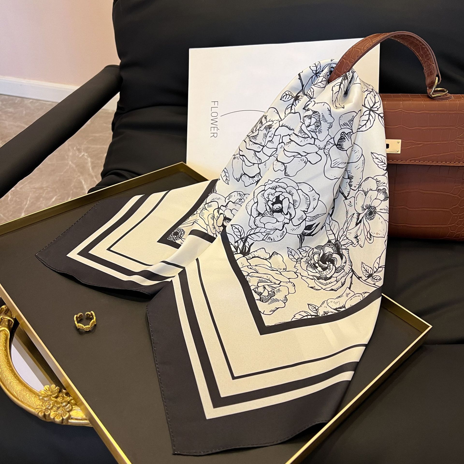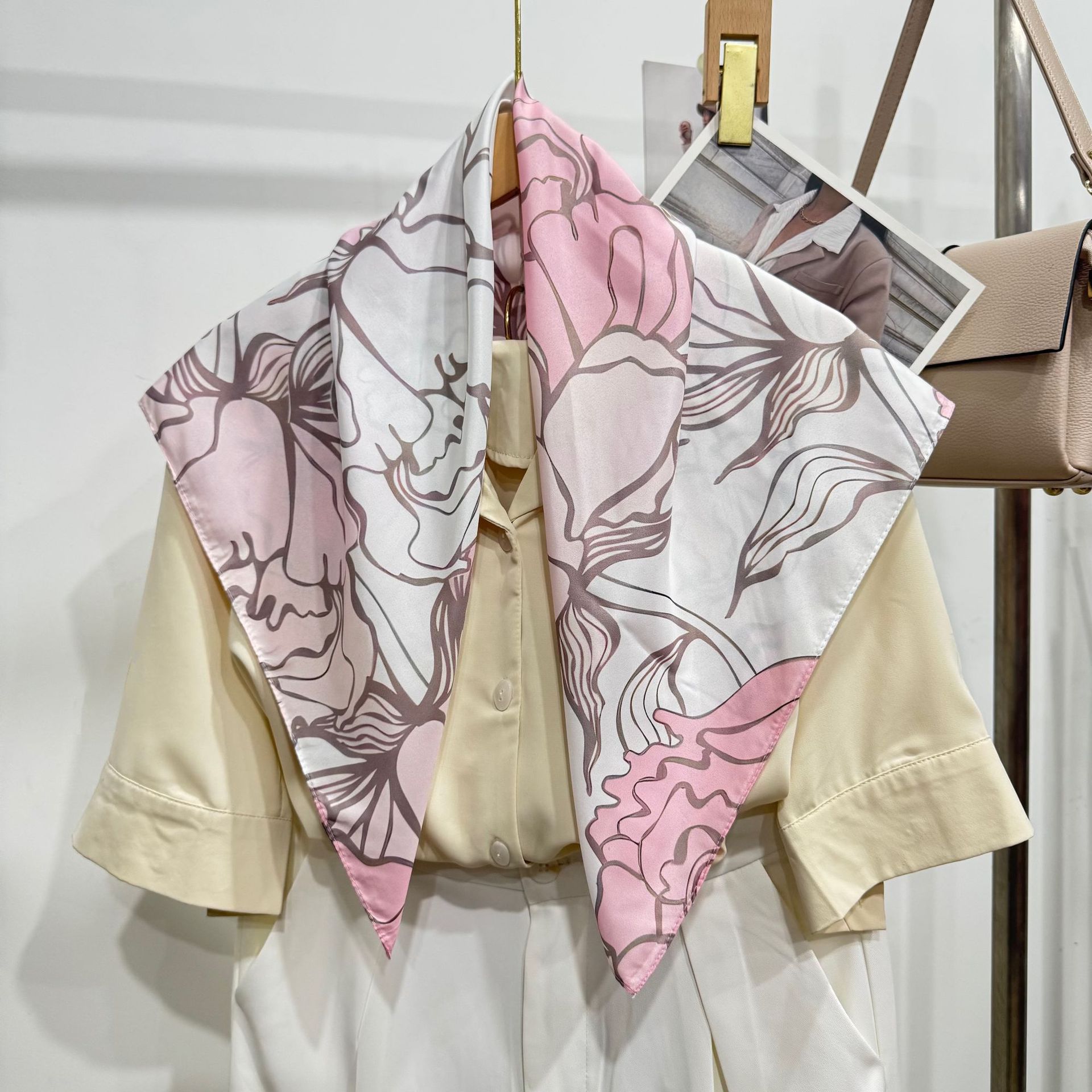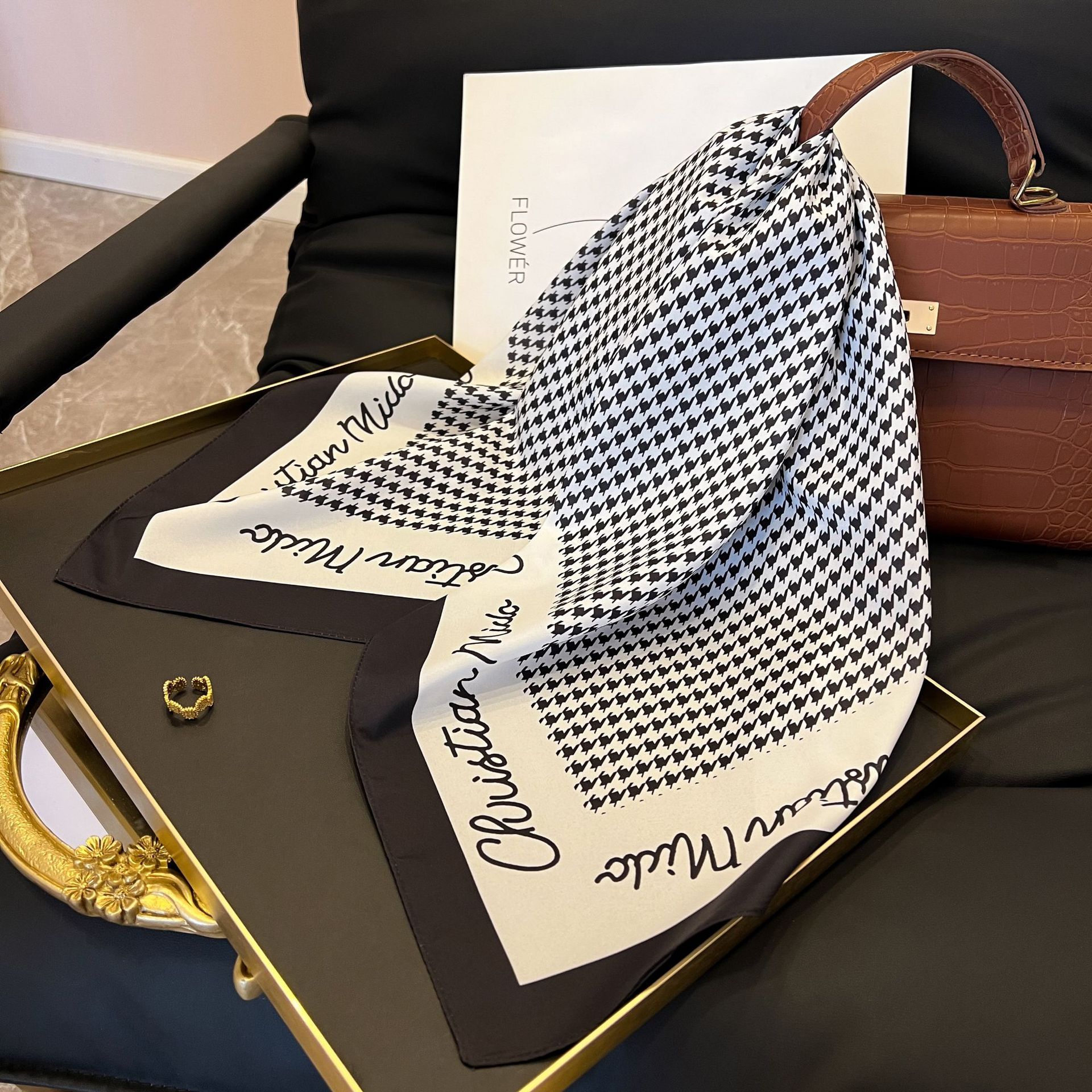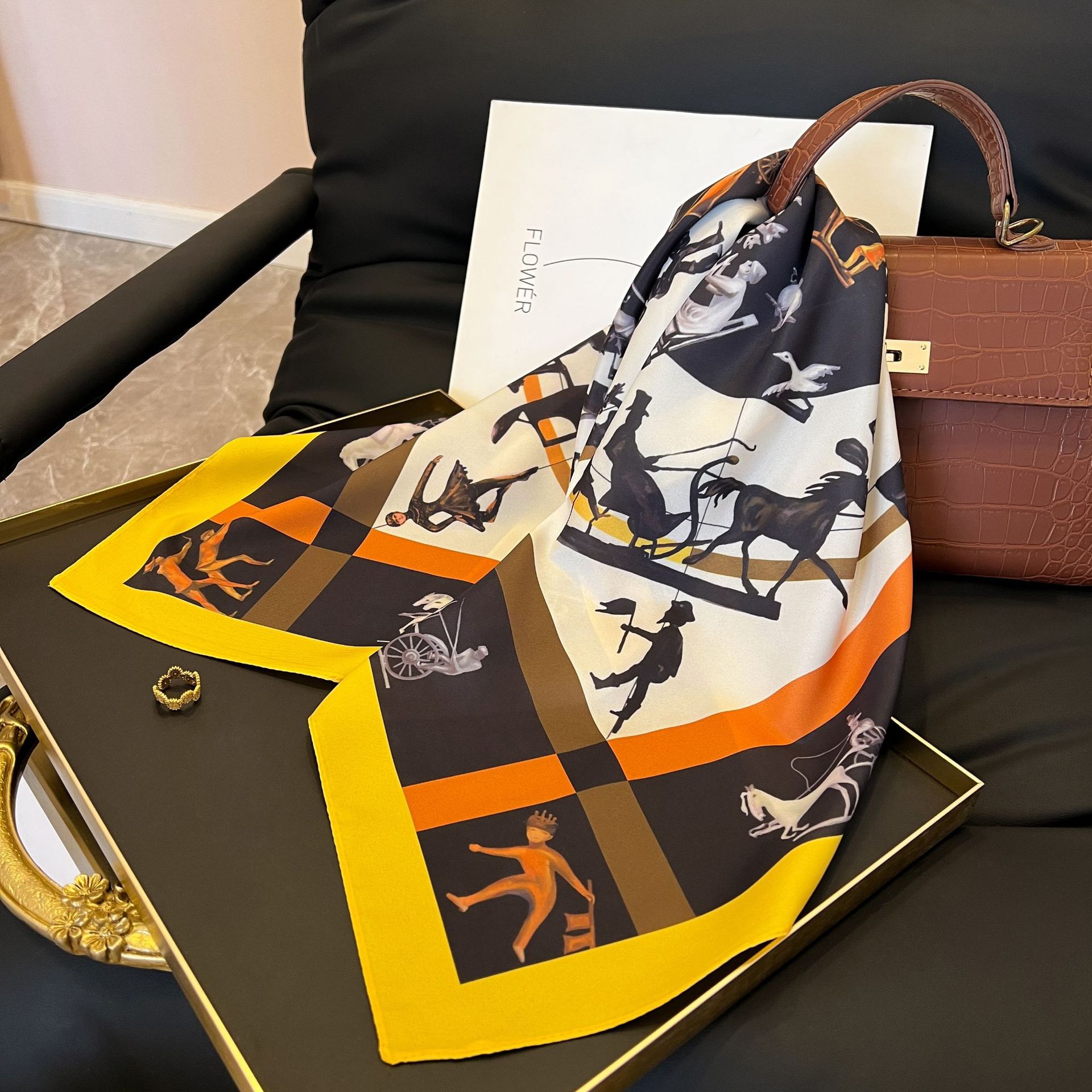 새로운 스타일 실크 스카프 패션 올 매치 가을 선물 장식 작은 광장 스카프 하이 엔드 라이트 럭셔리 스카프스토어 가기