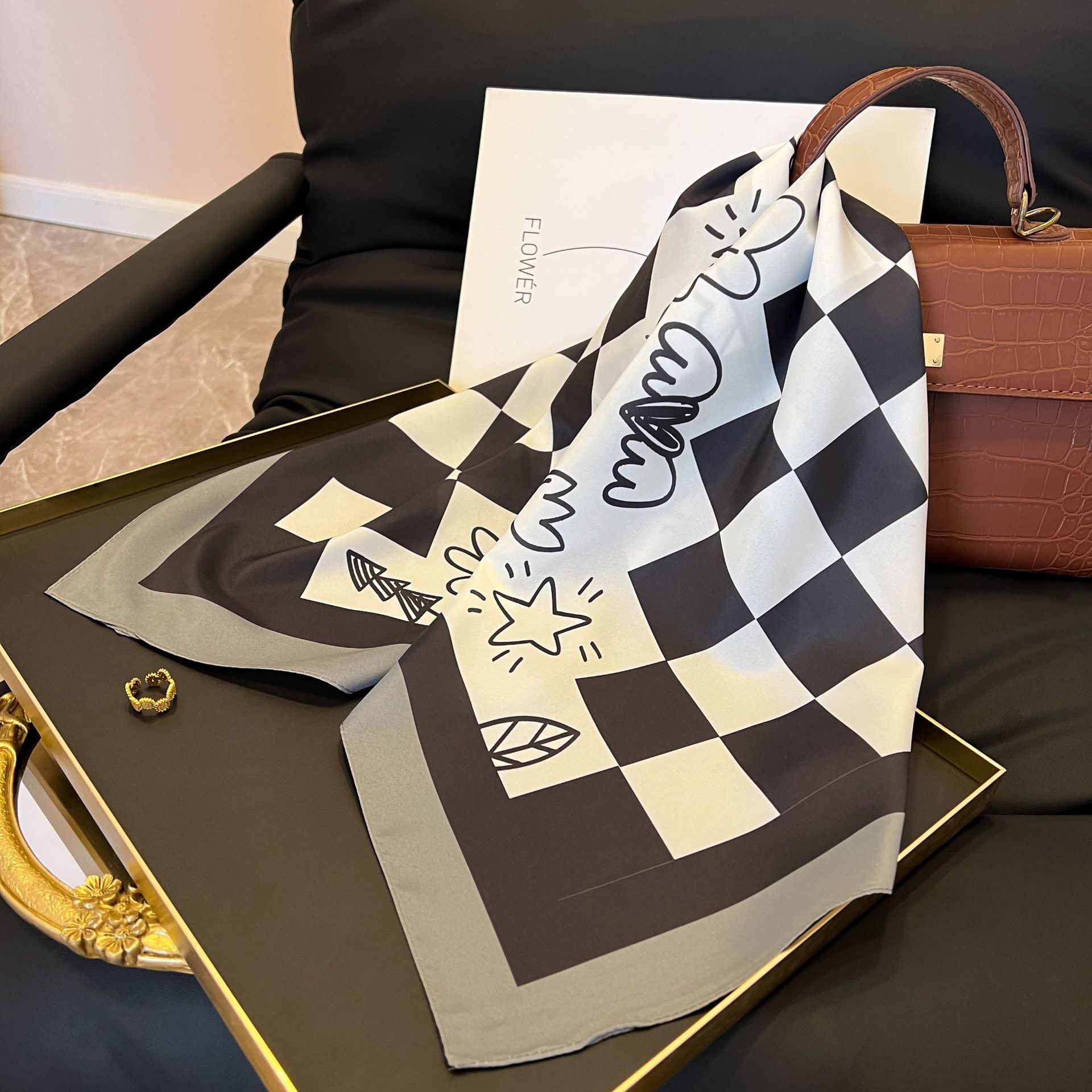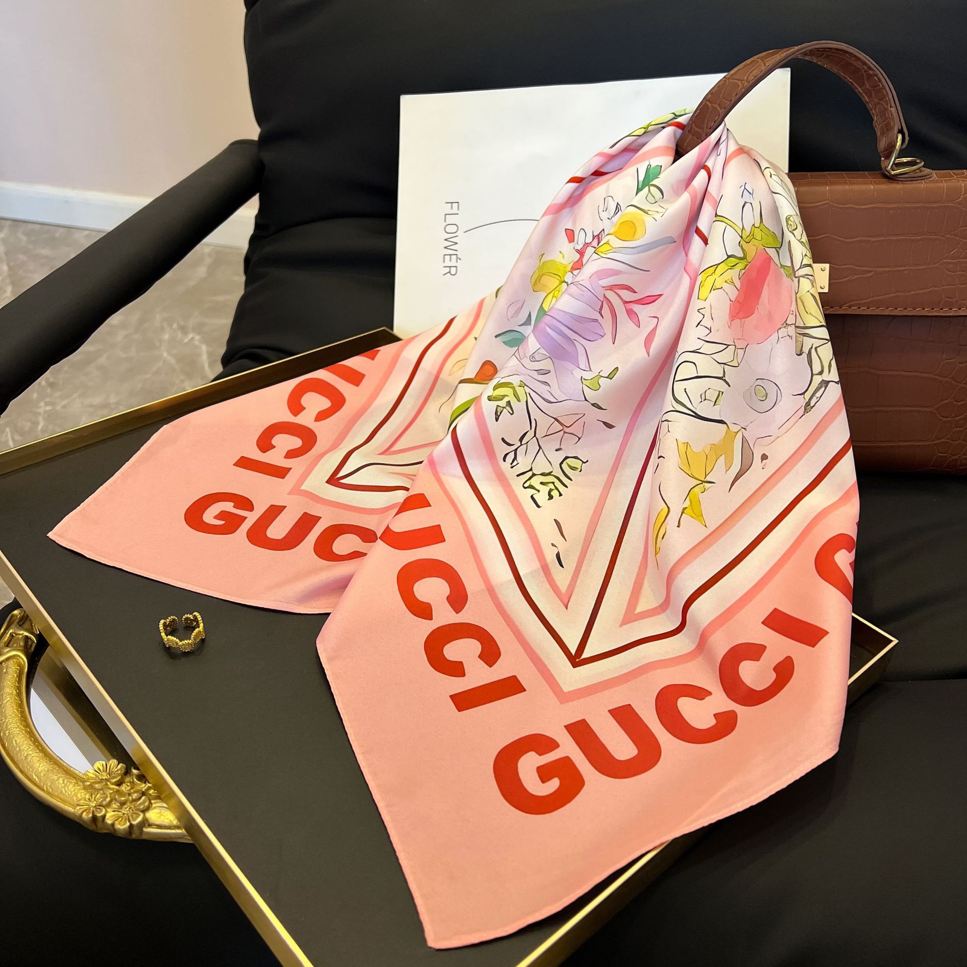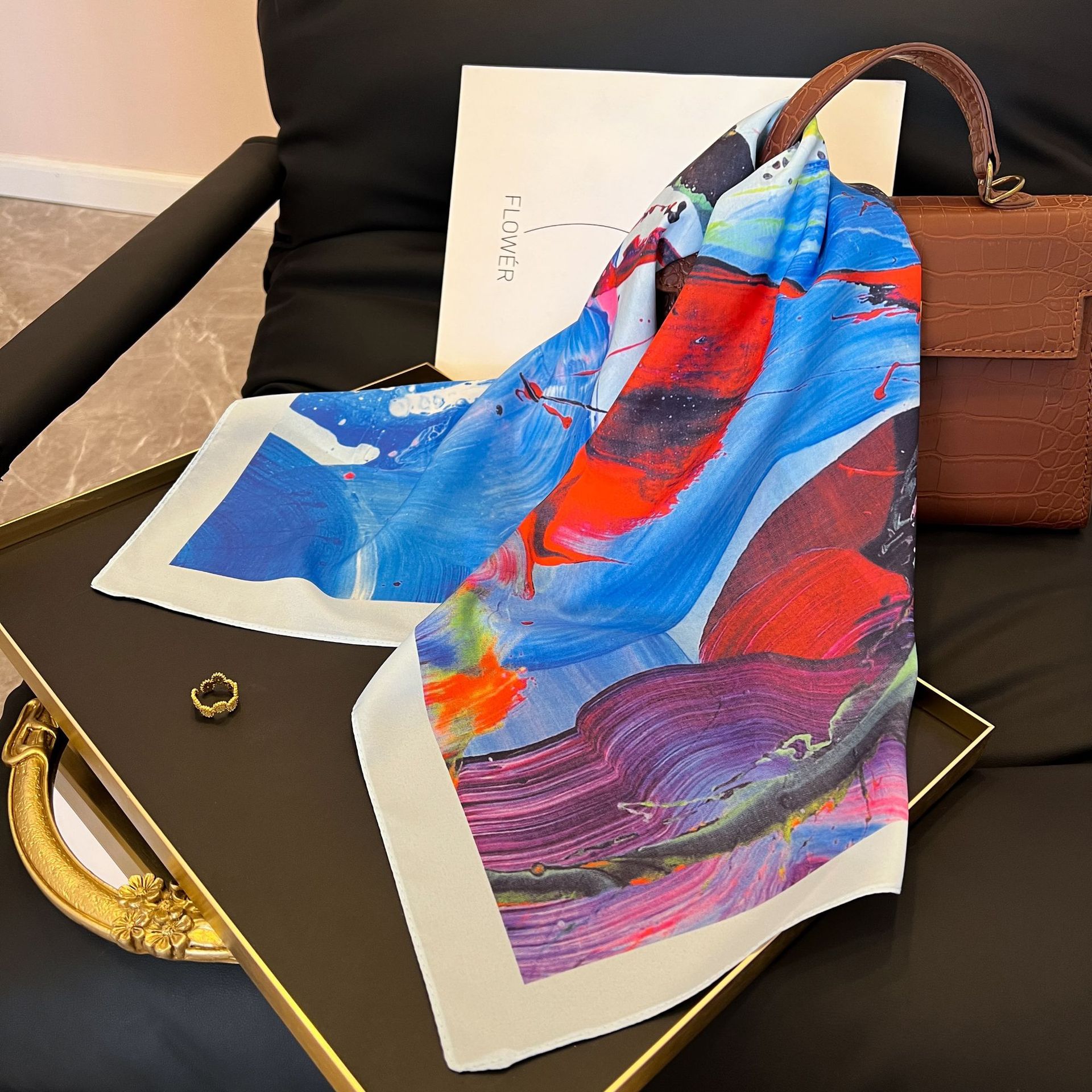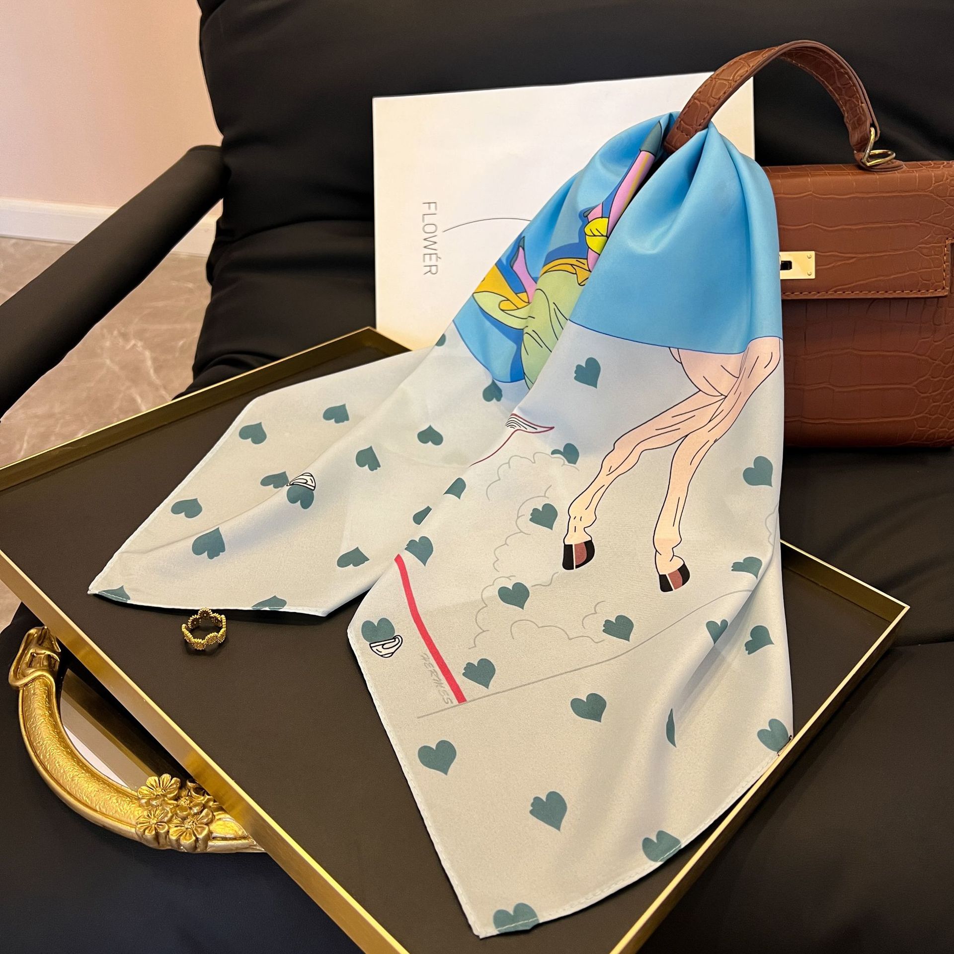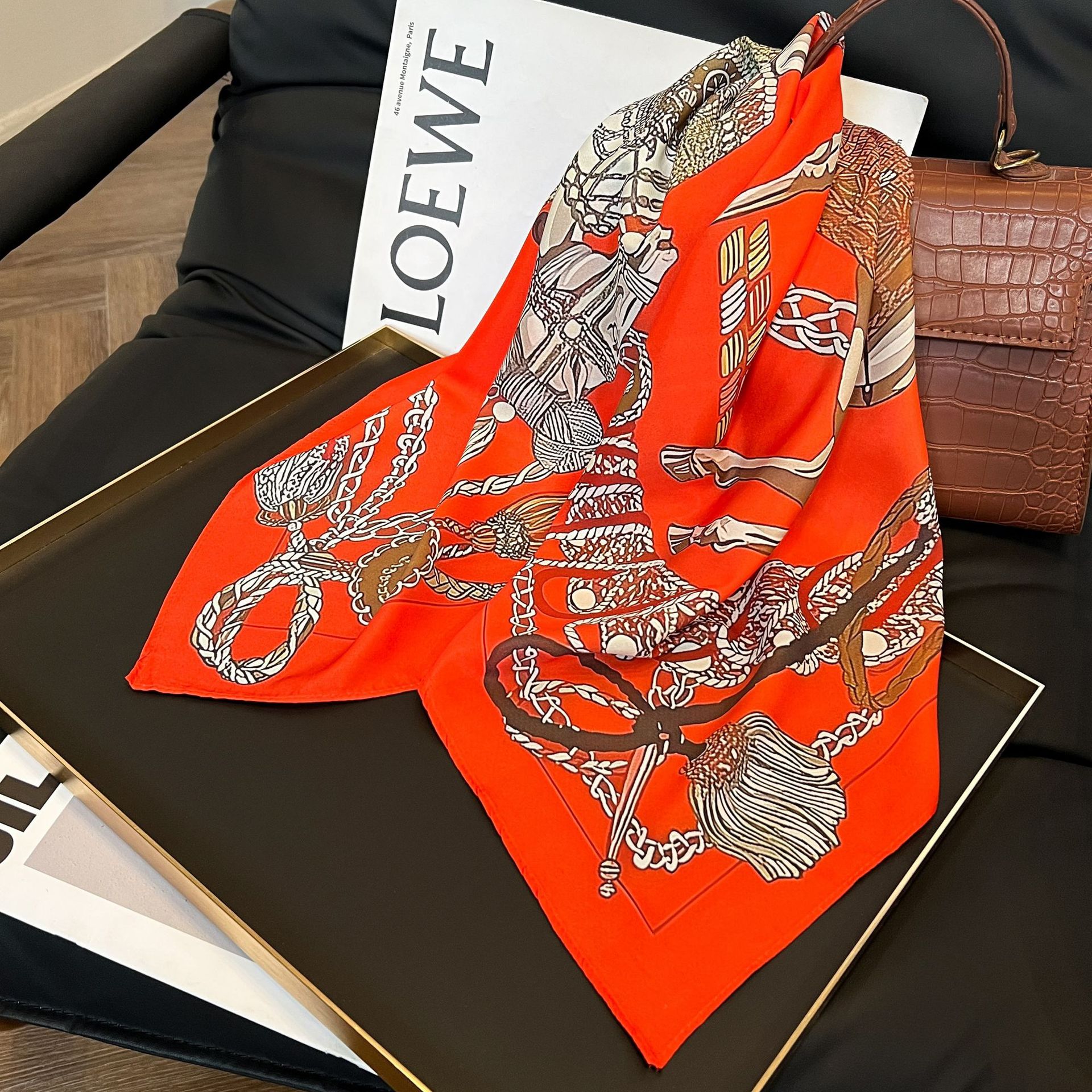 새로운 스타일 실크 스카프 패션 올 매치 가을 선물 장식 작은 광장 스카프 하이 엔드 라이트 럭셔리 스카프스토어 가기