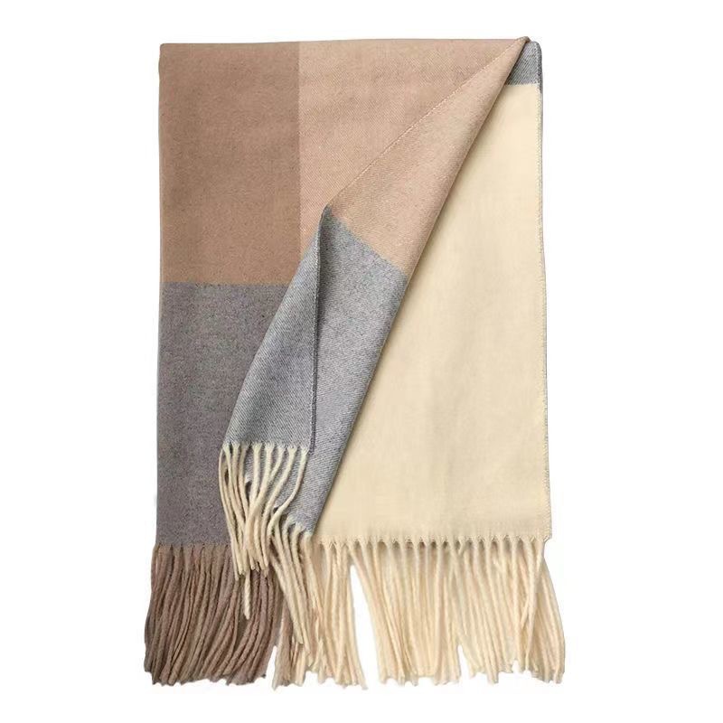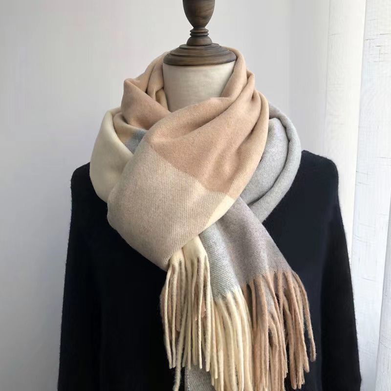 2025년 신상품 독특한 디자인의 컬러블록 인스 체크무늬 니트 스카프 여성용 겨울 한국 스타일 다용도 학생용 목도리스토어 가기