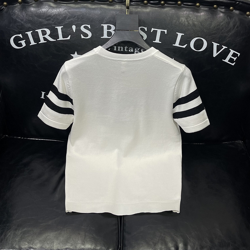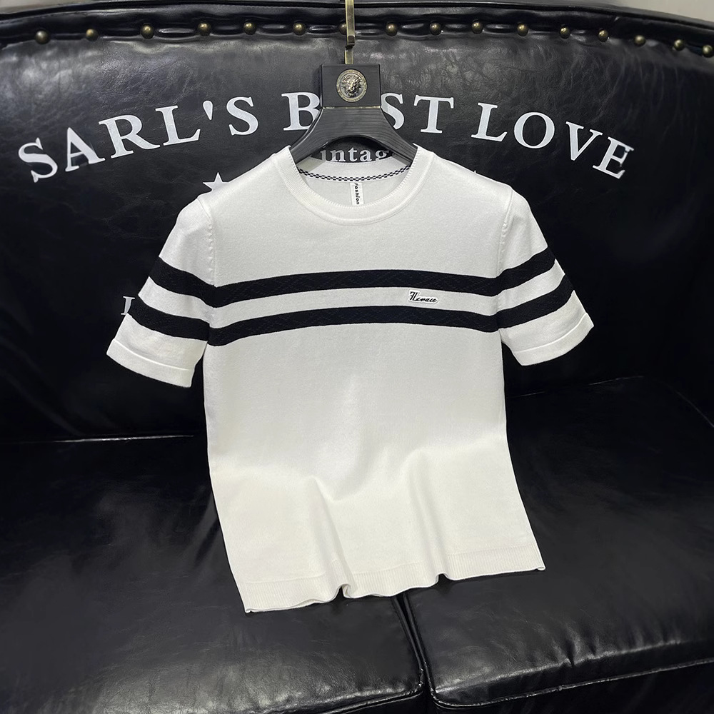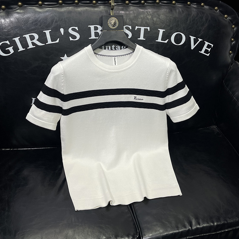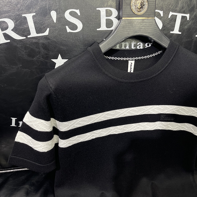 2025 봄 새로운 남성 반팔 티셔츠 스웨터 니트 풀오버 유럽 역 패션 하이 엔드 남성 패션스토어 가기