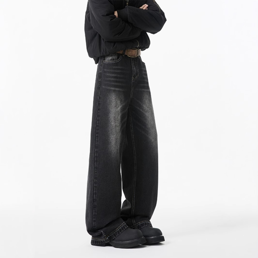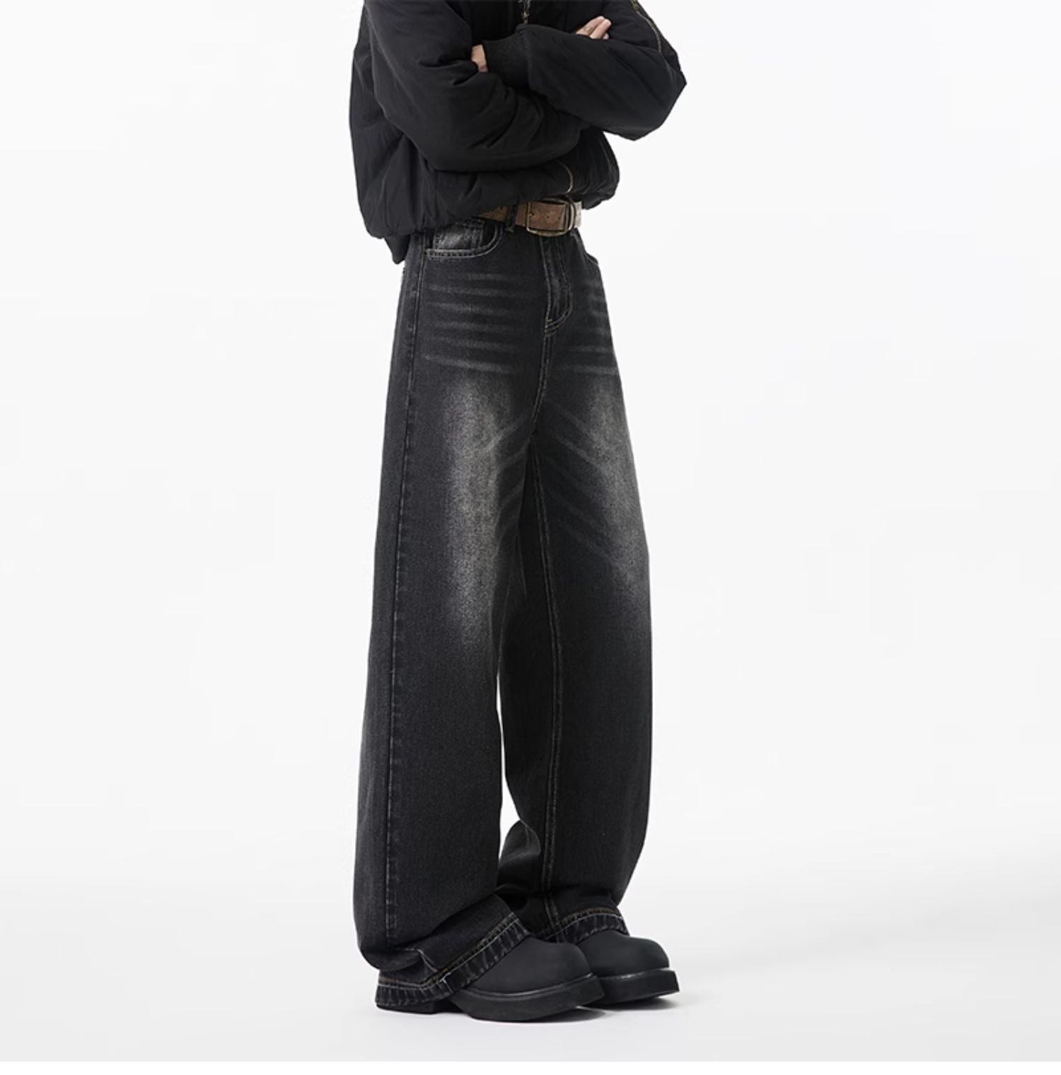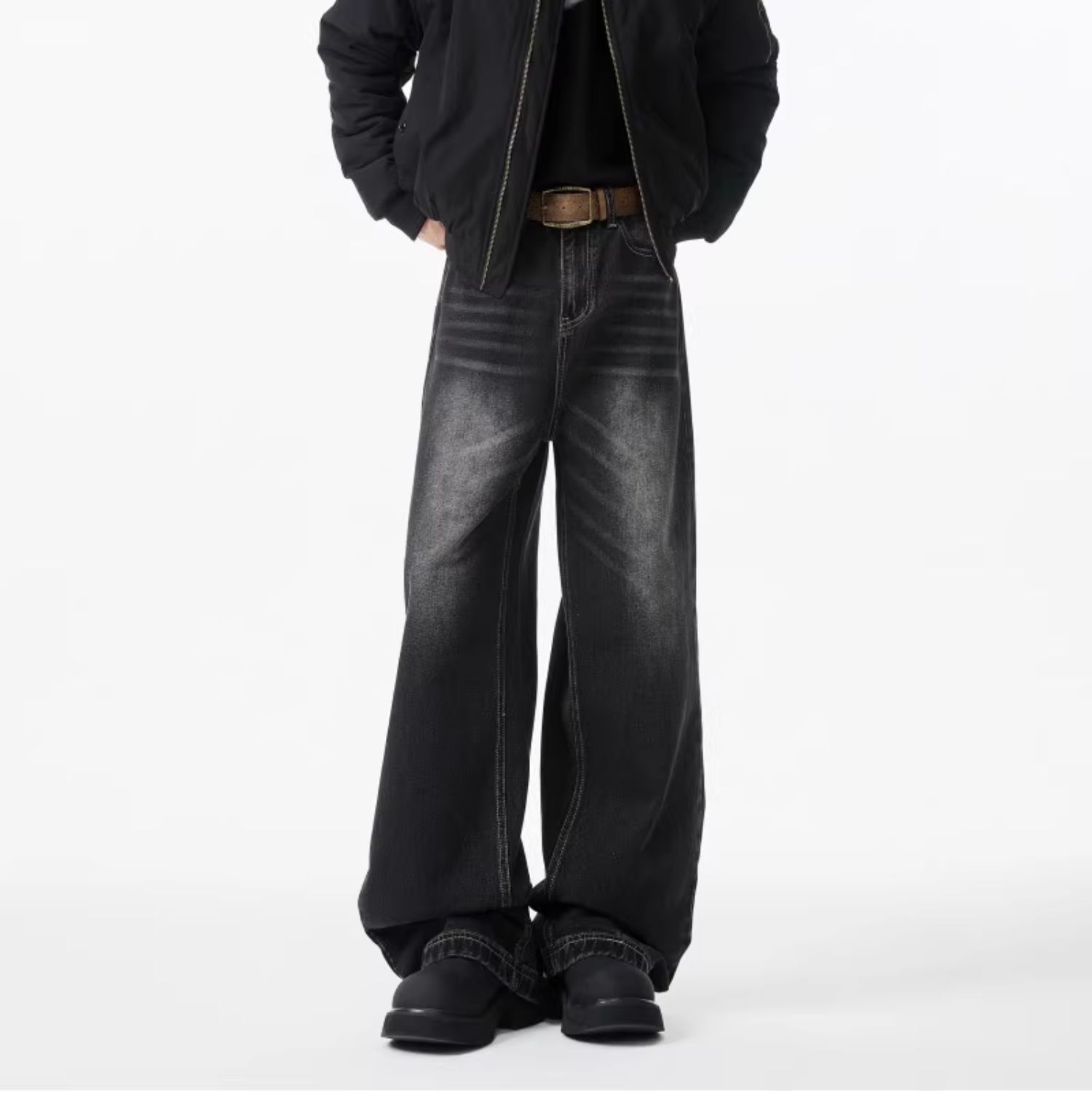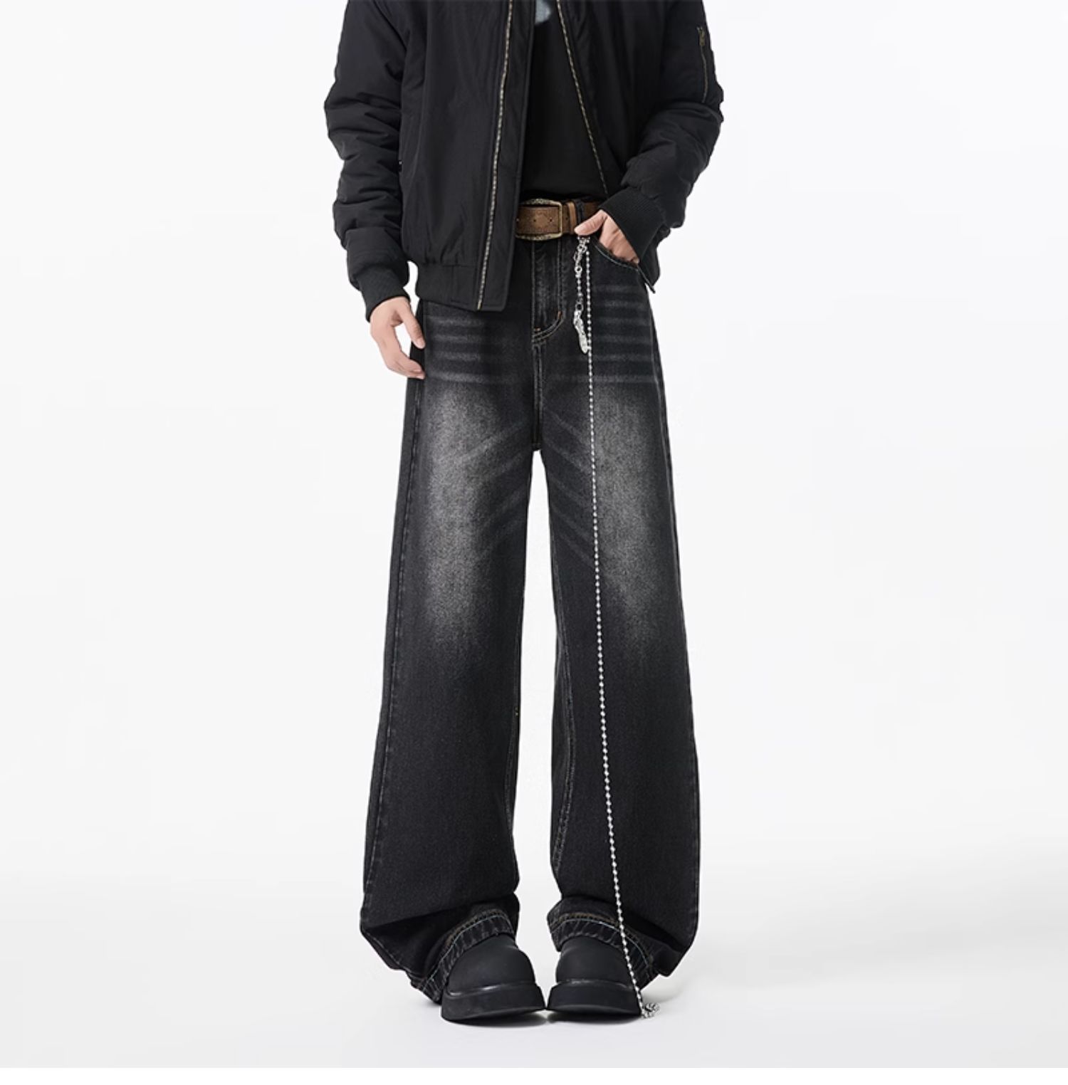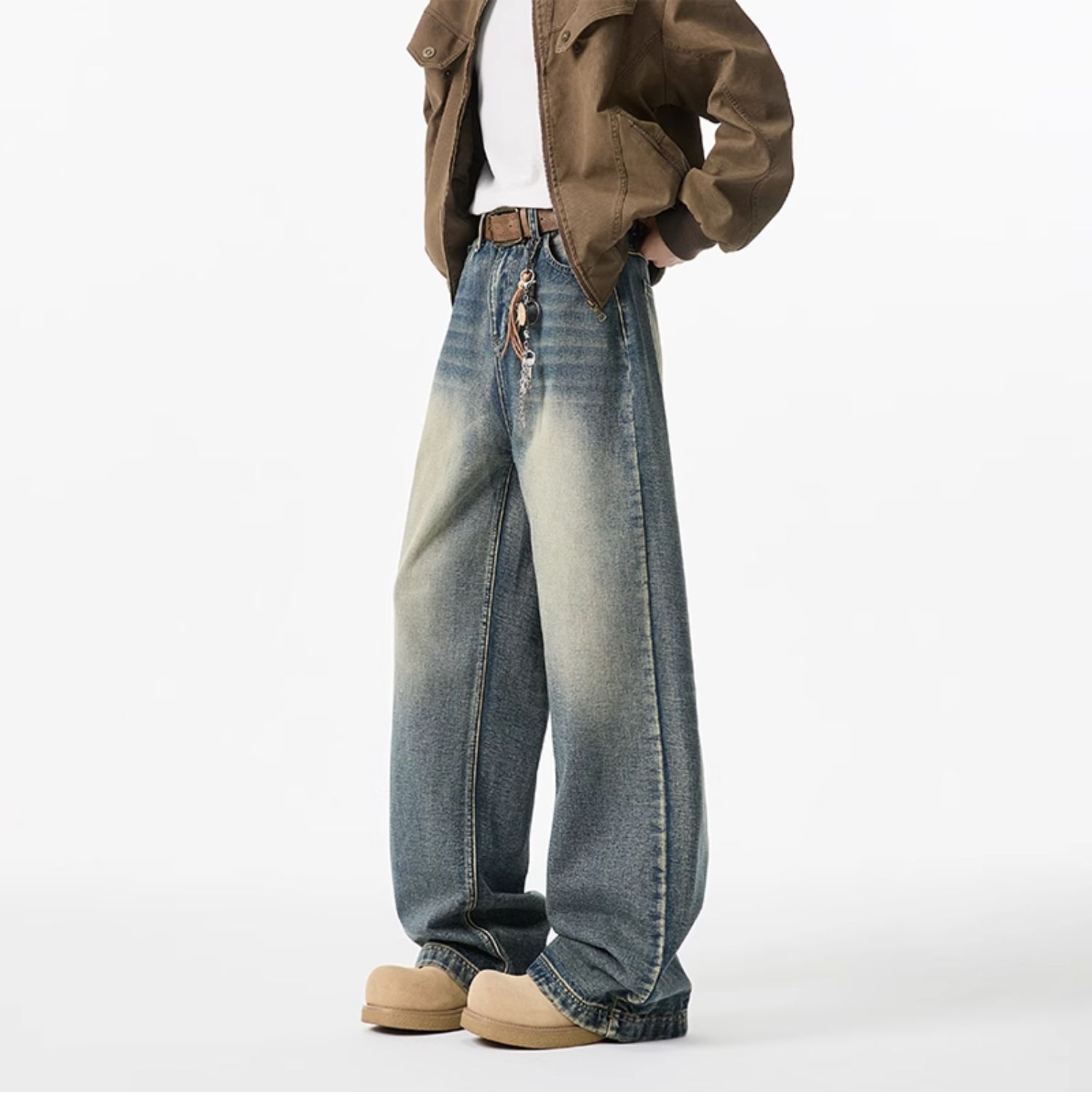 아메리칸 스타일 클린 핏 와이드 레그 청바지 남성 봄과 가을 스트레이트 루즈 바지 소년을위한 트렌디 바지스토어 가기