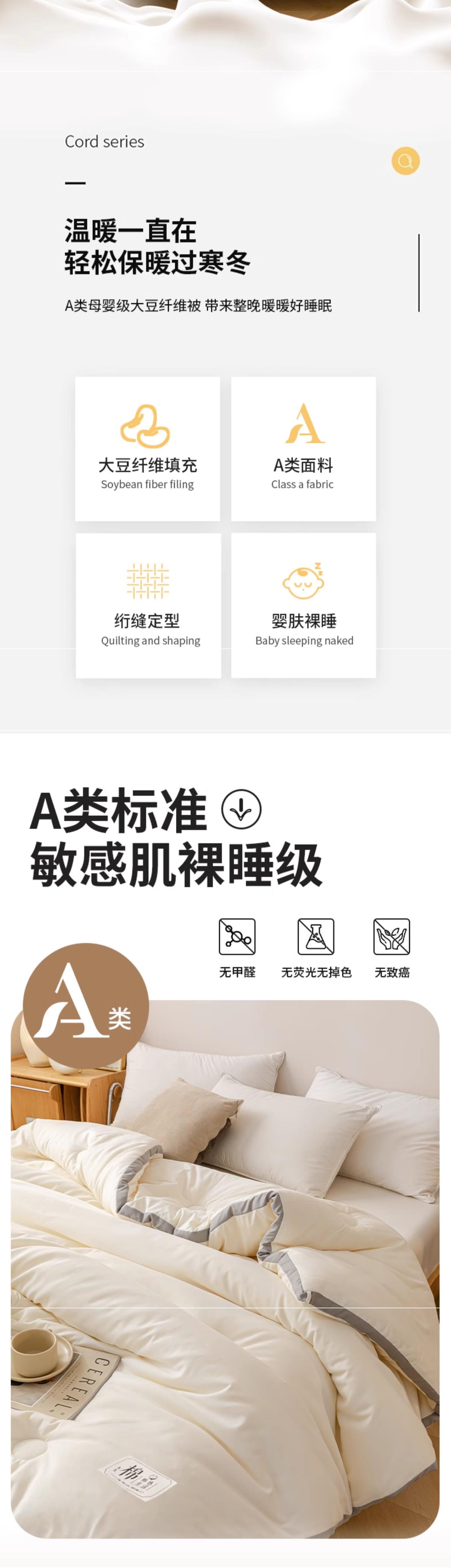 • 업그레이드된 슈퍼소프트 - 무염색 콩이불 - 황백색 [A급 산모 및 유아등급 항균·진드기 방지]