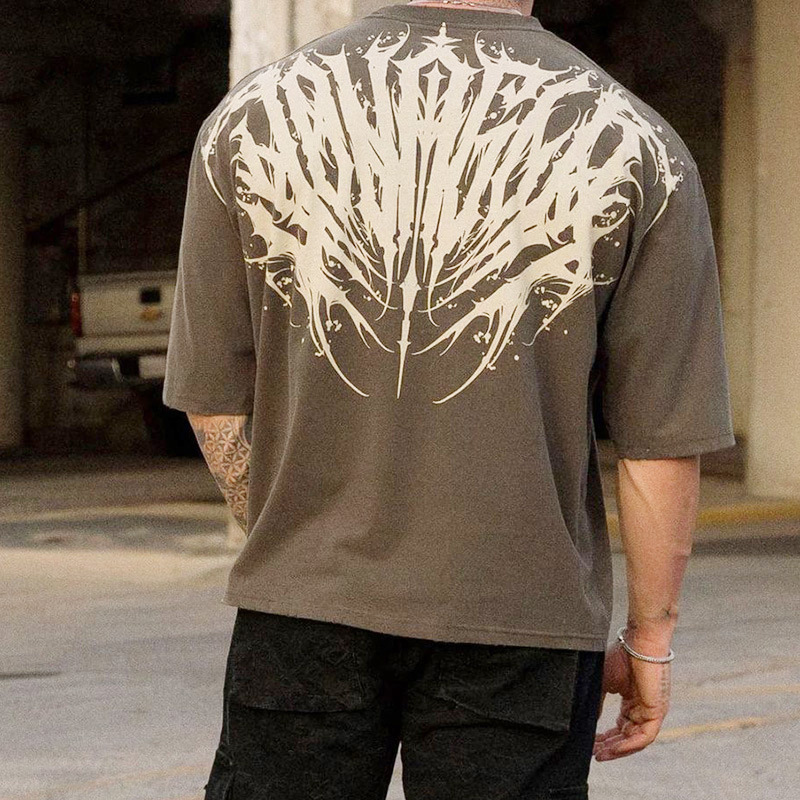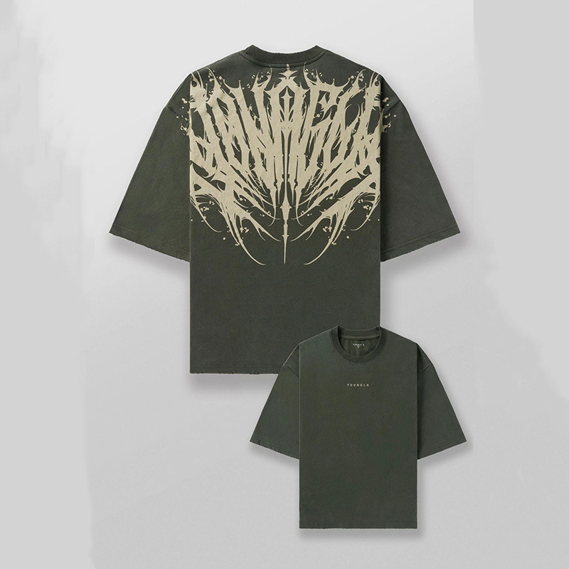 아메리칸 스타일 패션 브랜드 YOUNGT 셔츠 남성용 캐주얼 루즈 플러스 사이즈 코튼 반팔 스포츠 피트니스 스포츠 티셔츠