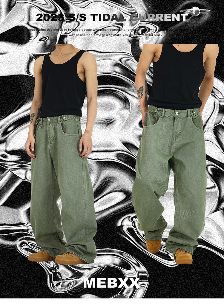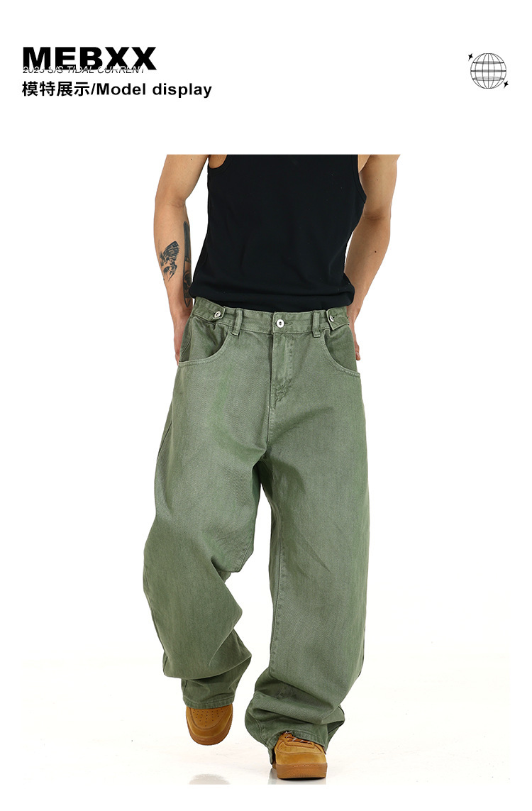 아메리칸 스타일 빈티지 세탁 청바지 남성용 하이 스트리트 트렌디 스트레이트 팬츠 딥 디자인 올매치 느슨한 와이드 다리 바지스토어 가기