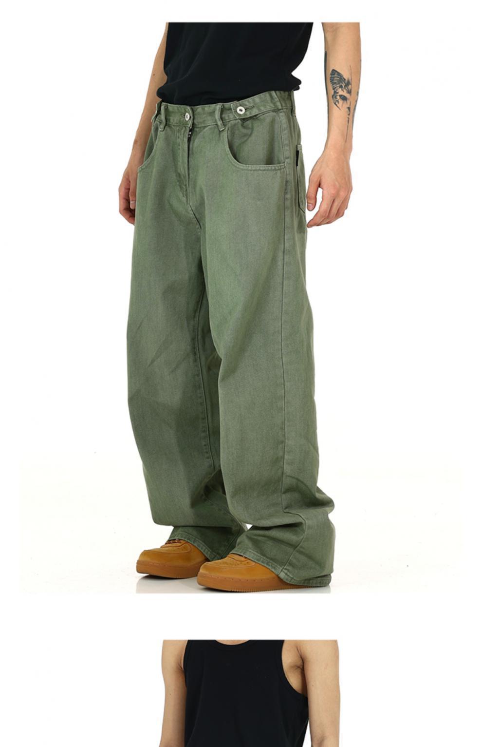 아메리칸 스타일 빈티지 세탁 청바지 남성용 하이 스트리트 트렌디 스트레이트 팬츠 딥 디자인 올매치 느슨한 와이드 다리 바지